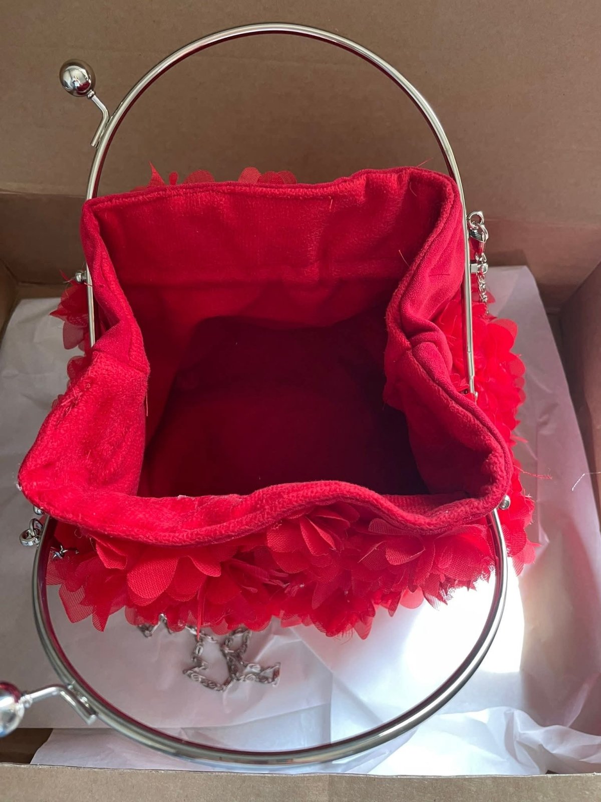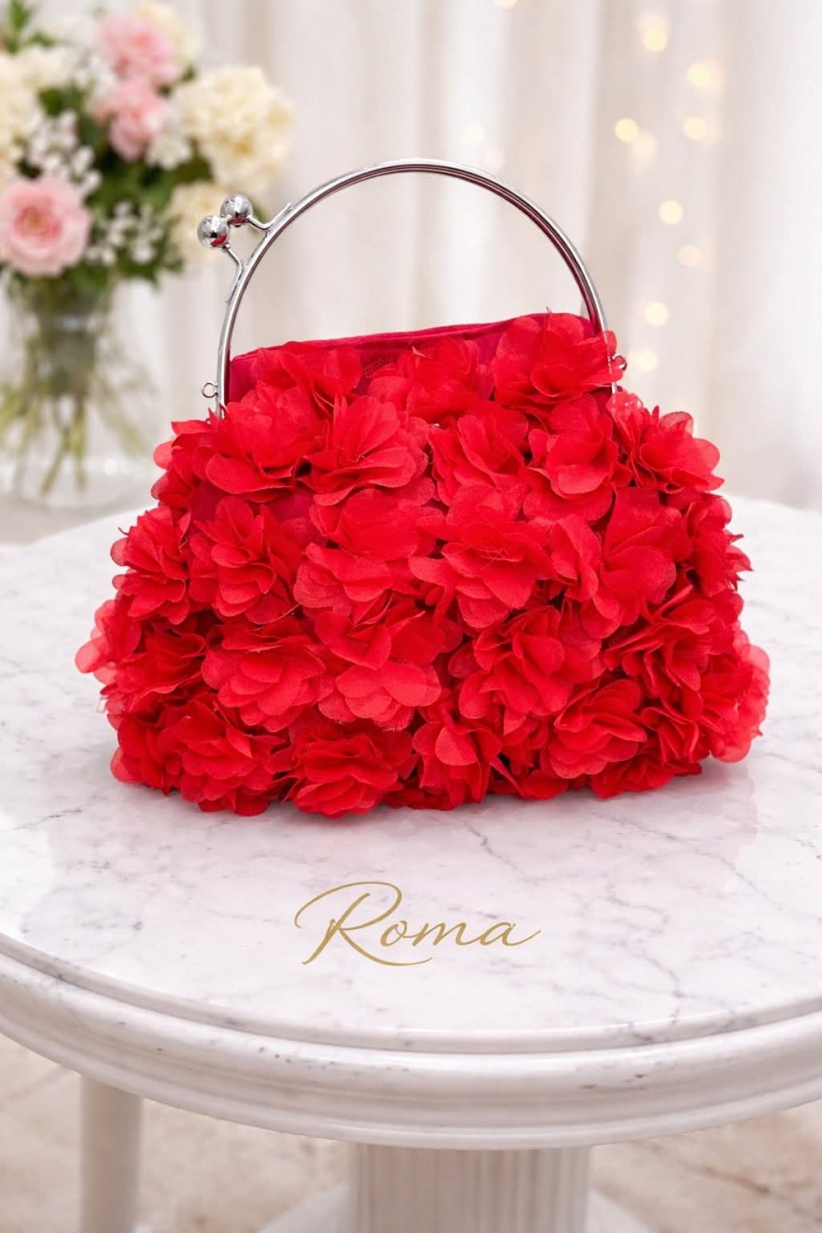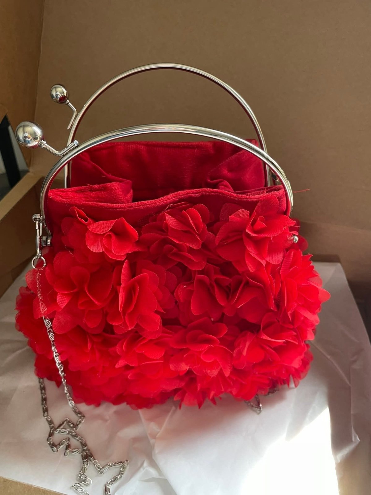 حقيبه سواريه صنعت يدويا من القماش الشمواه المدعم مزينه بالورود لها متاح الوان كتييير متاح نصغر ومكبر الشنطه صنعت علي فريم معدن جولد مستورد لها بطانه من الداخل ستان تركي مذوده بدراع كروس مقاس ٣٥/٢٥ الفريم جديد متاح جولد وسيلفير
