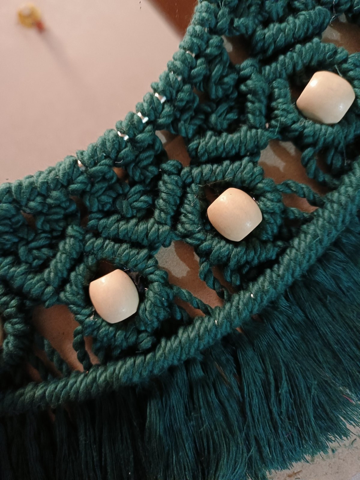 مرآة من خيوط المكرمية التركية القطنية مصممة على حلقتين لتعطيها رونقً فريدًا و مزودة ب خرز من الخشب الطبيعي.