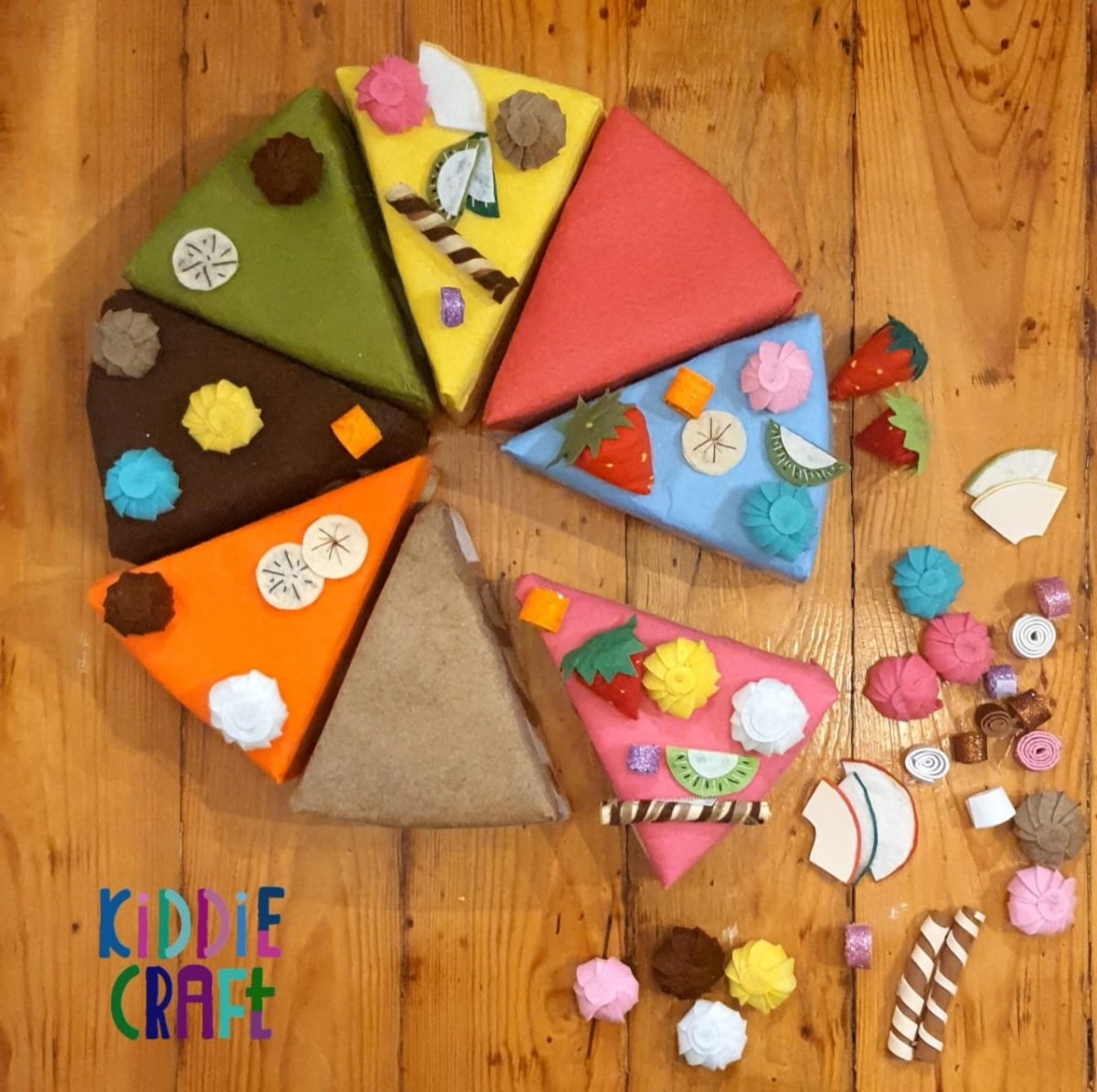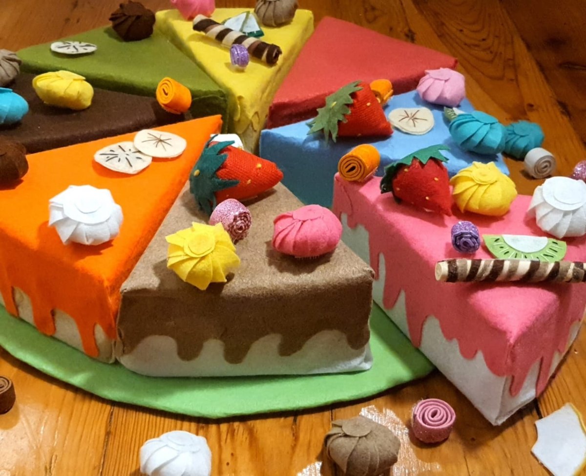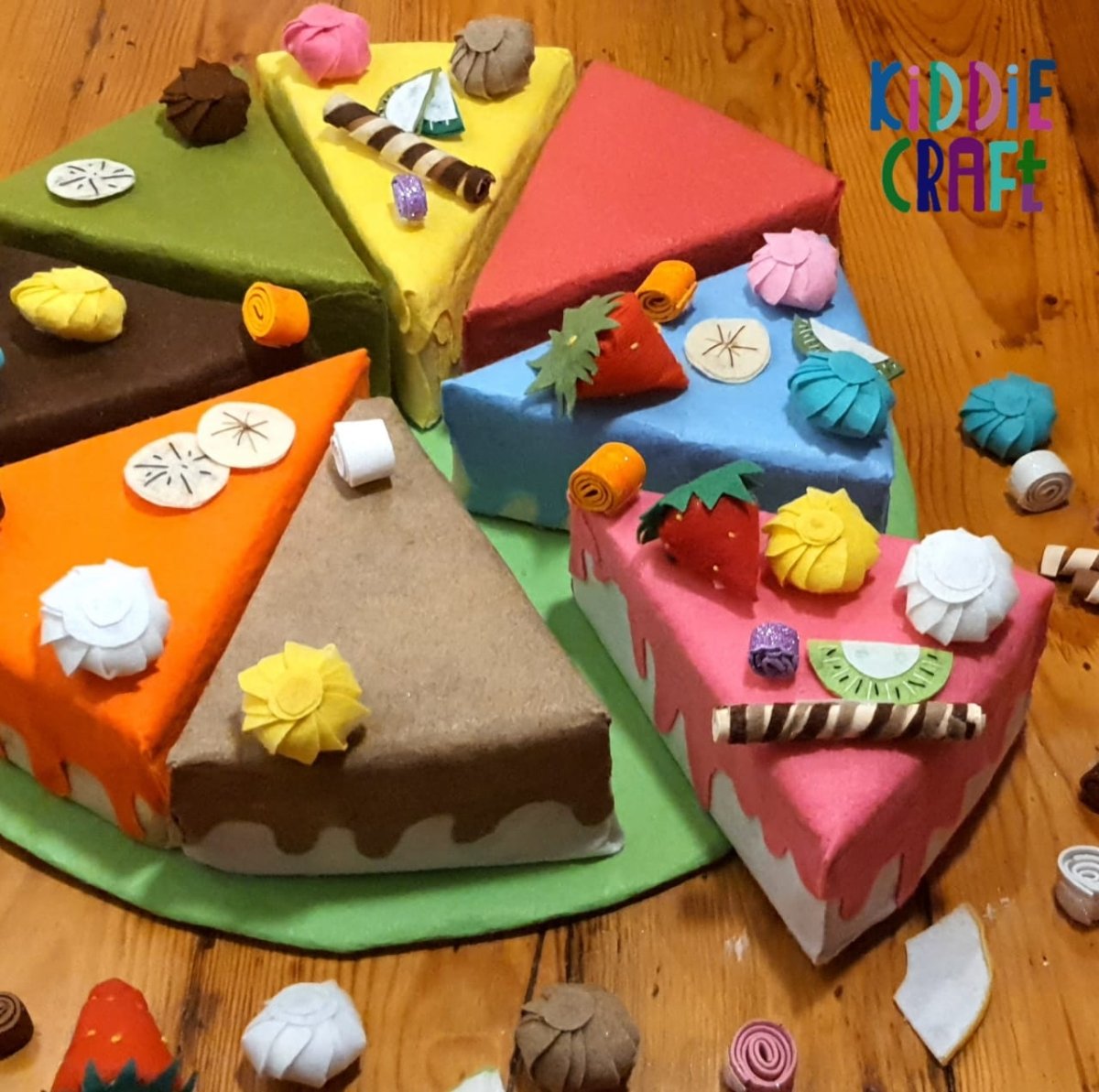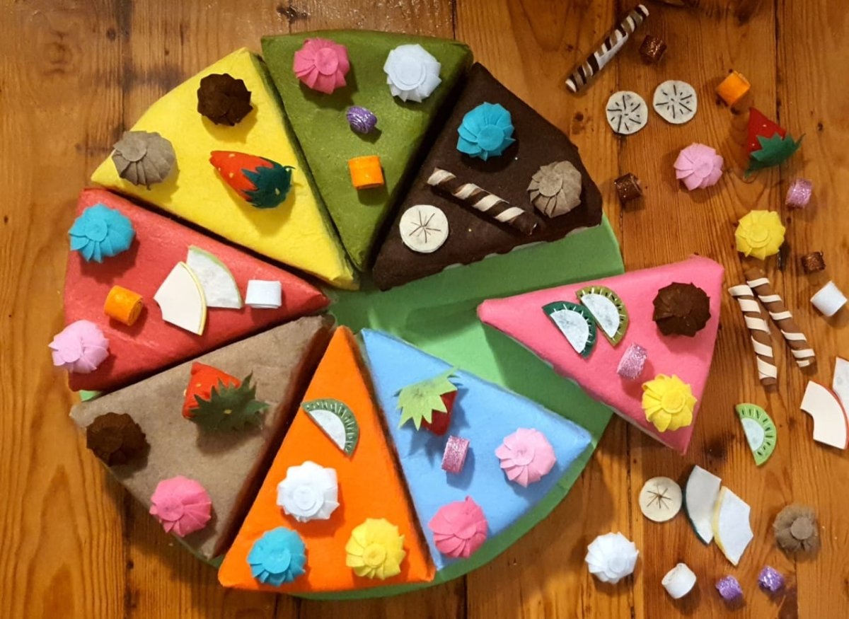 مكونة من قطع منفصلة من شكل تورتة مصنوعة من الجوخ والاسفنج والفوم والكرتون المقوى