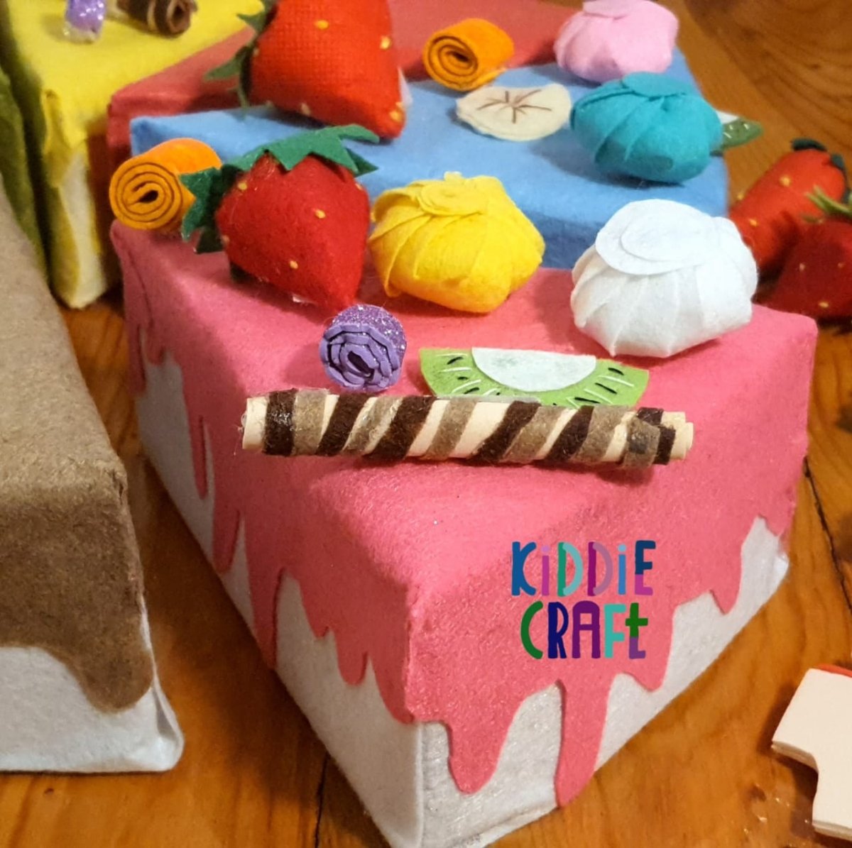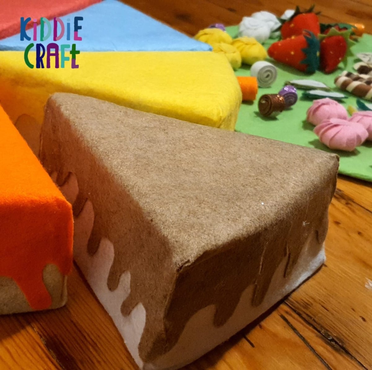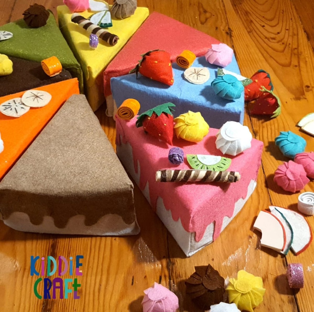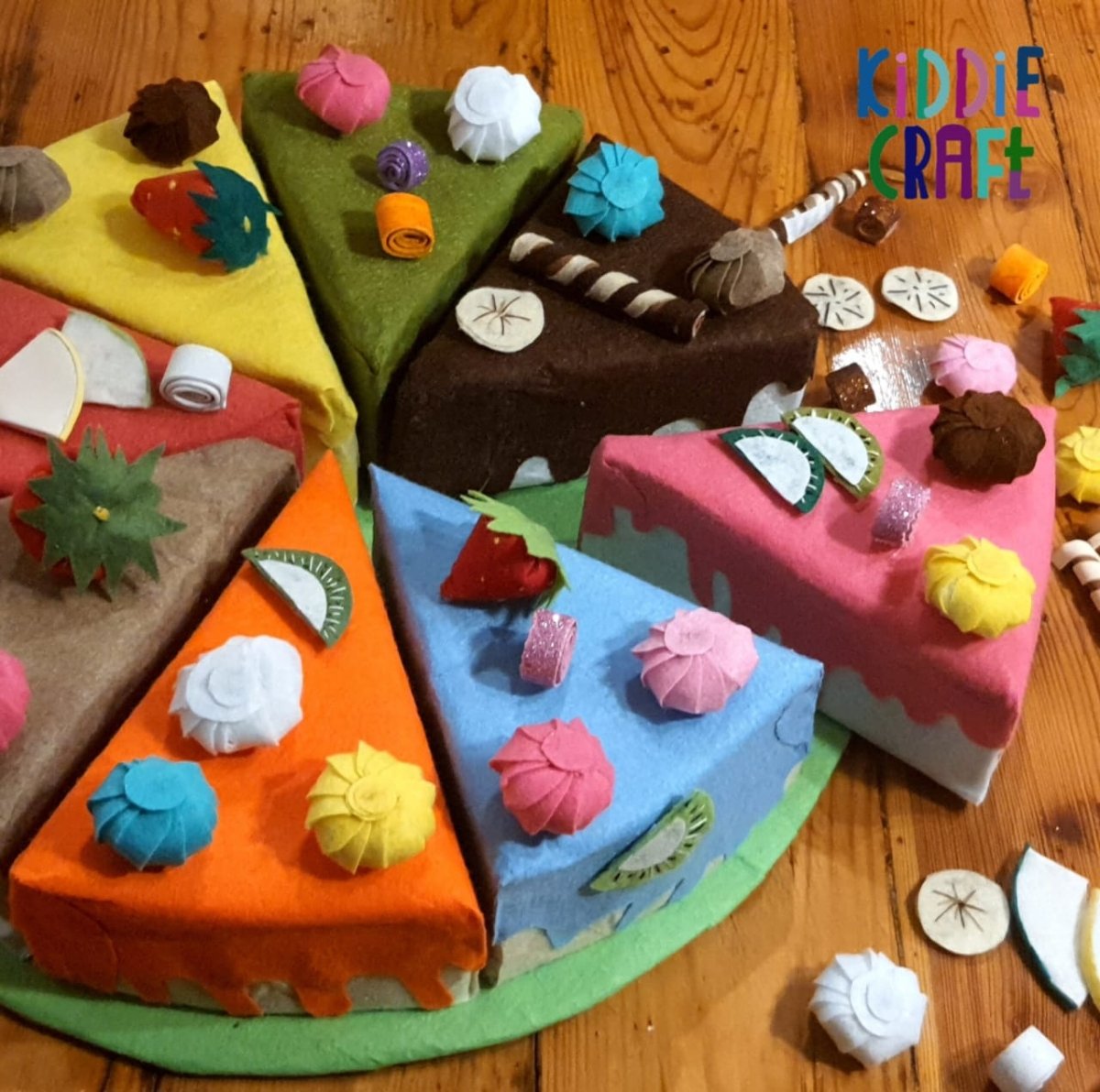 مكونة من قطع منفصلة من شكل تورتة مصنوعة من الجوخ والاسفنج والفوم والكرتون المقوى
