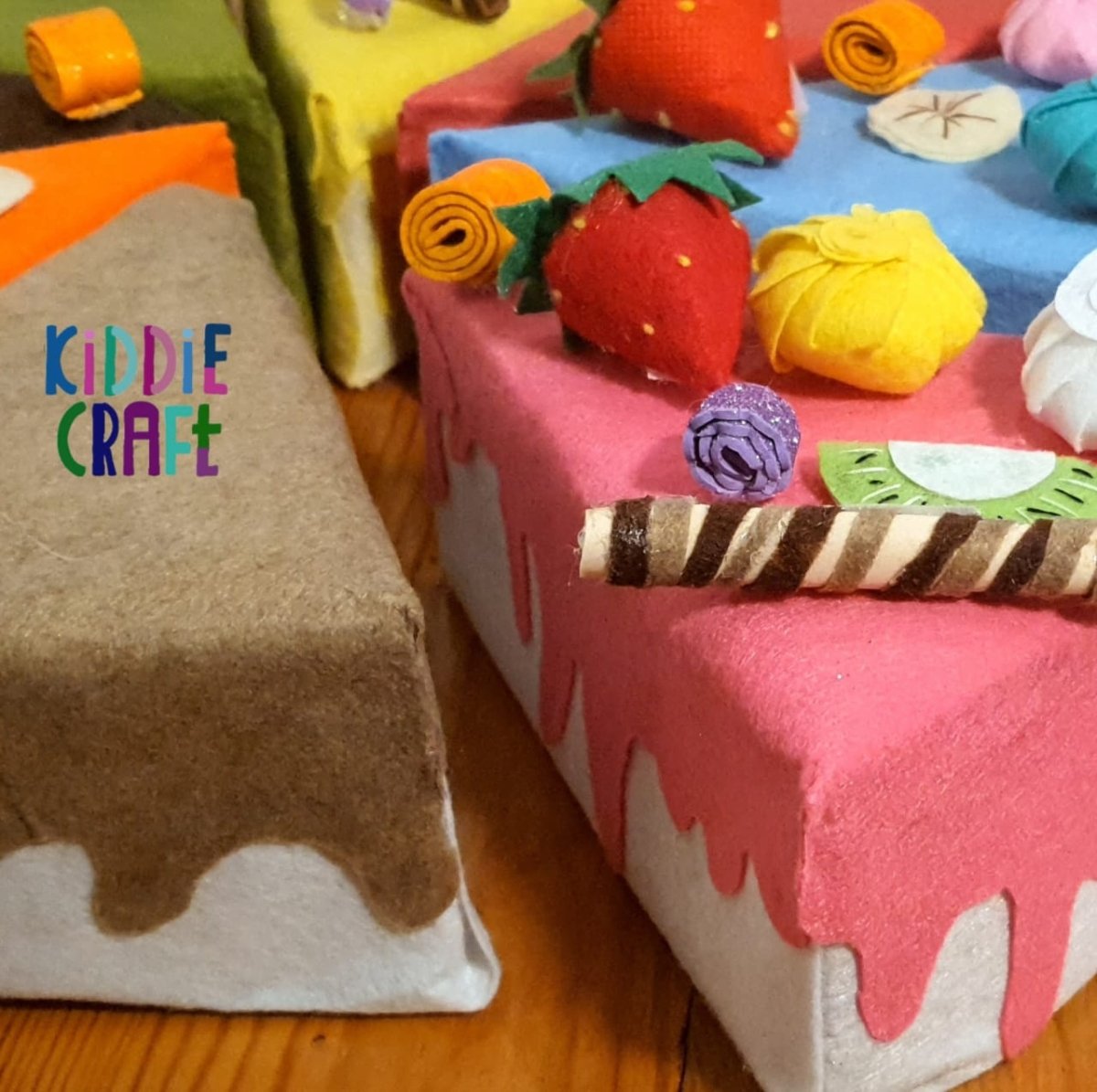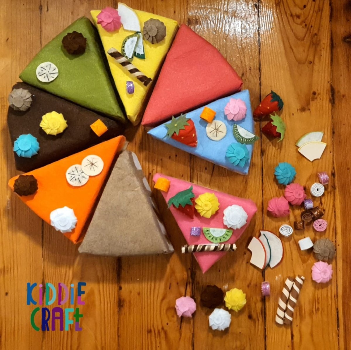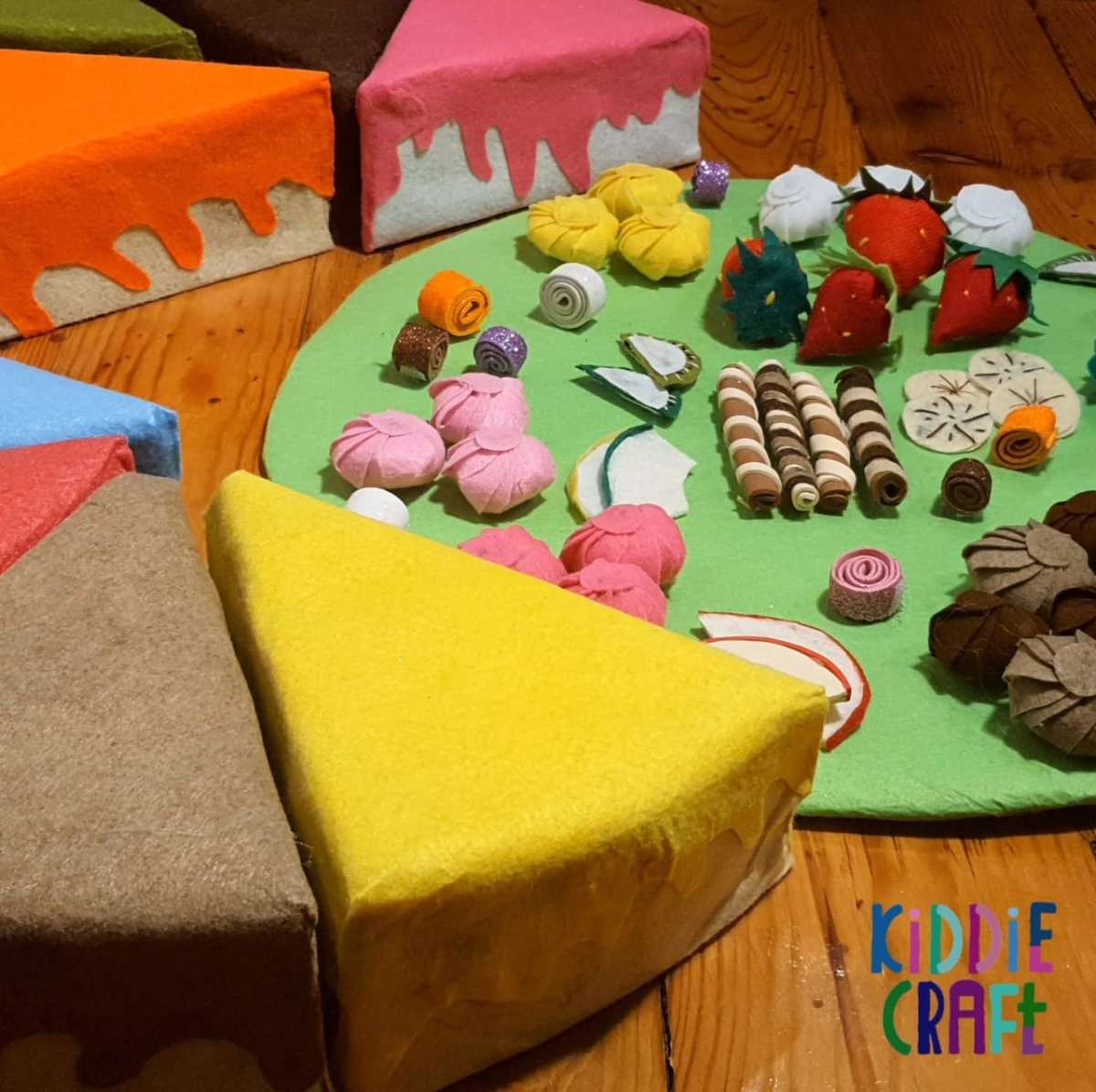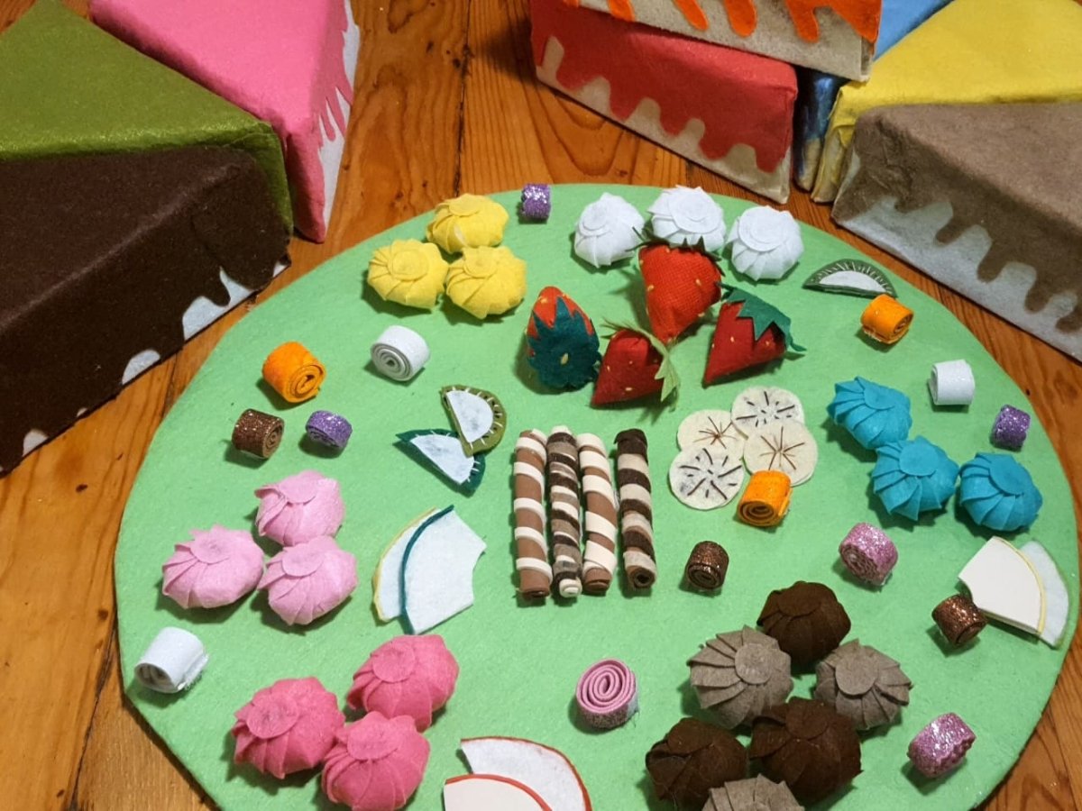 مكونة من قطع منفصلة من شكل تورتة مصنوعة من الجوخ والاسفنج والفوم والكرتون المقوى