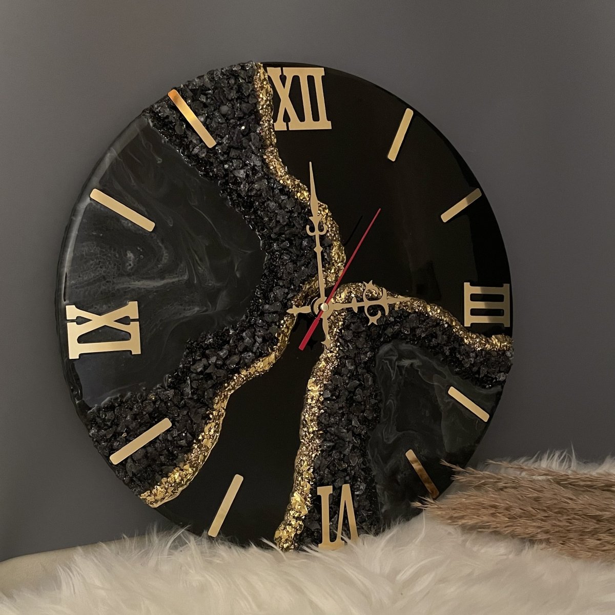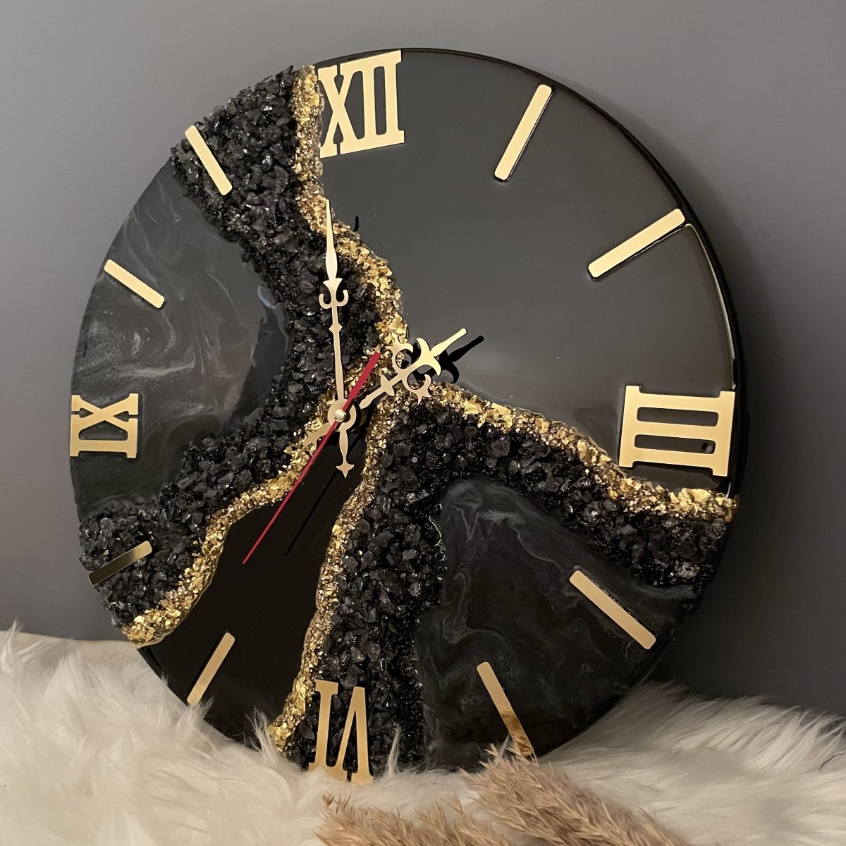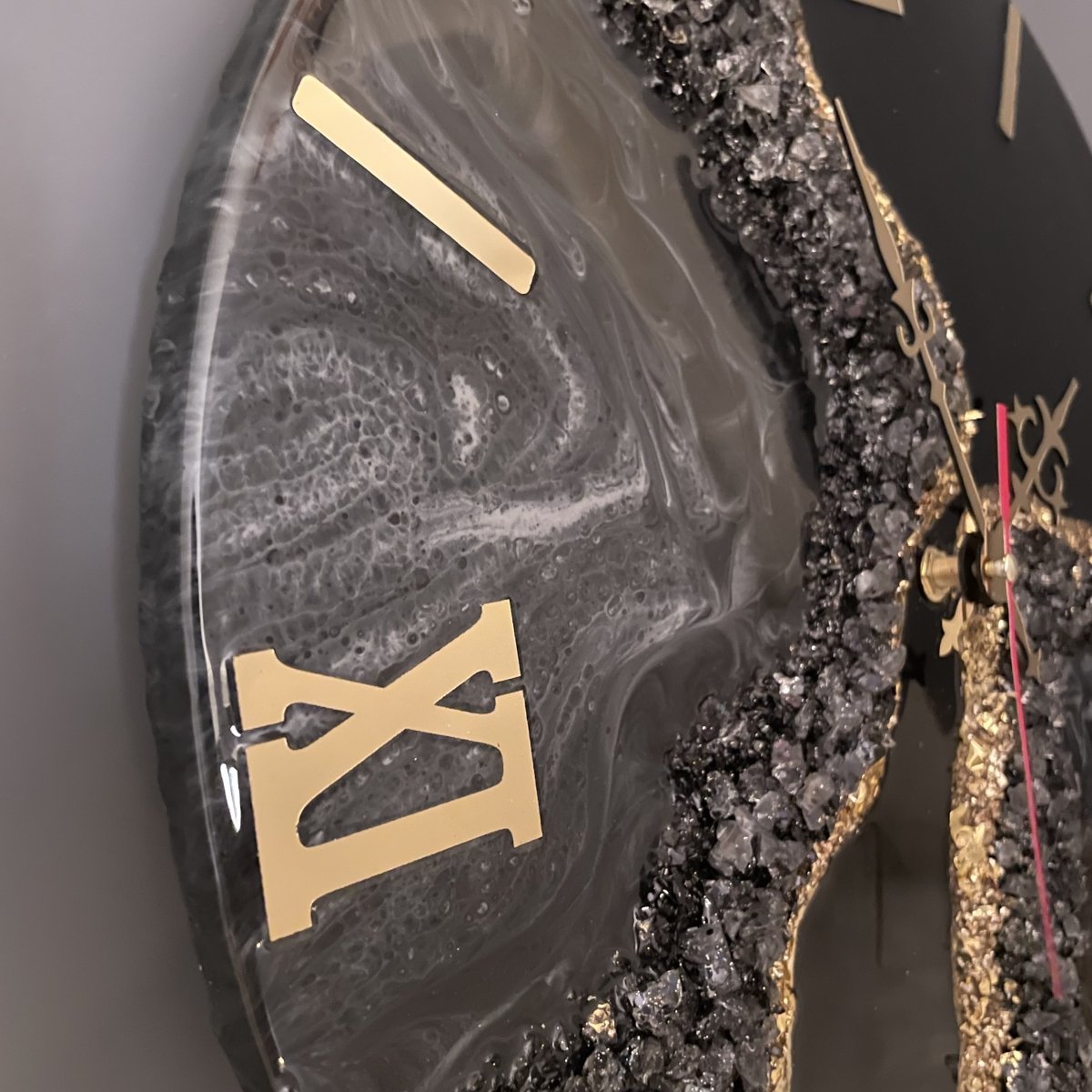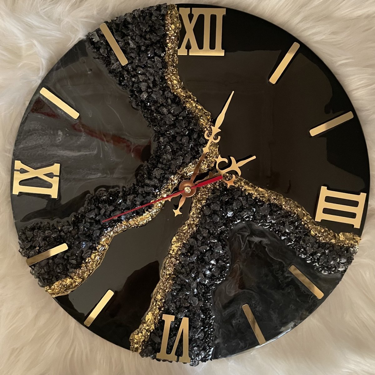 ساعه حائط ريزن ، مصنوعه من خشب ال mdf ، ومغطاه باجود أنواع الريزن ، ومزينه بكسر الزجاج . ماكينه تايواني 👌🏻