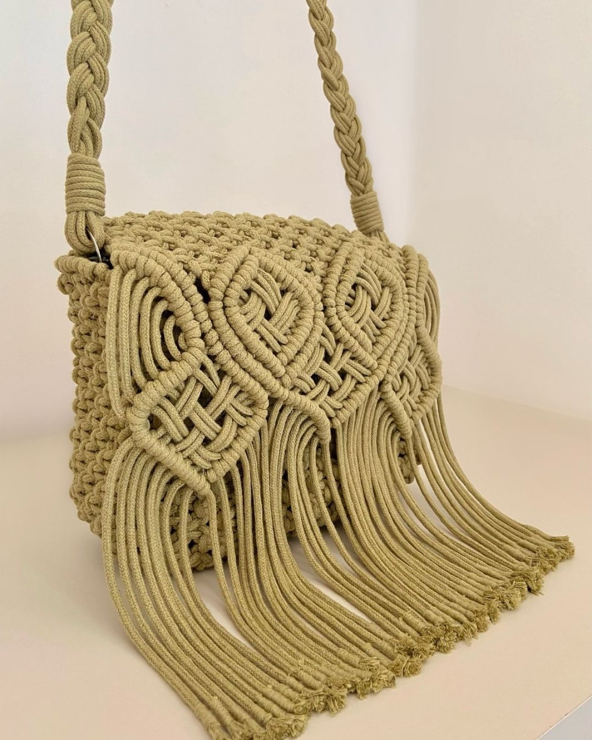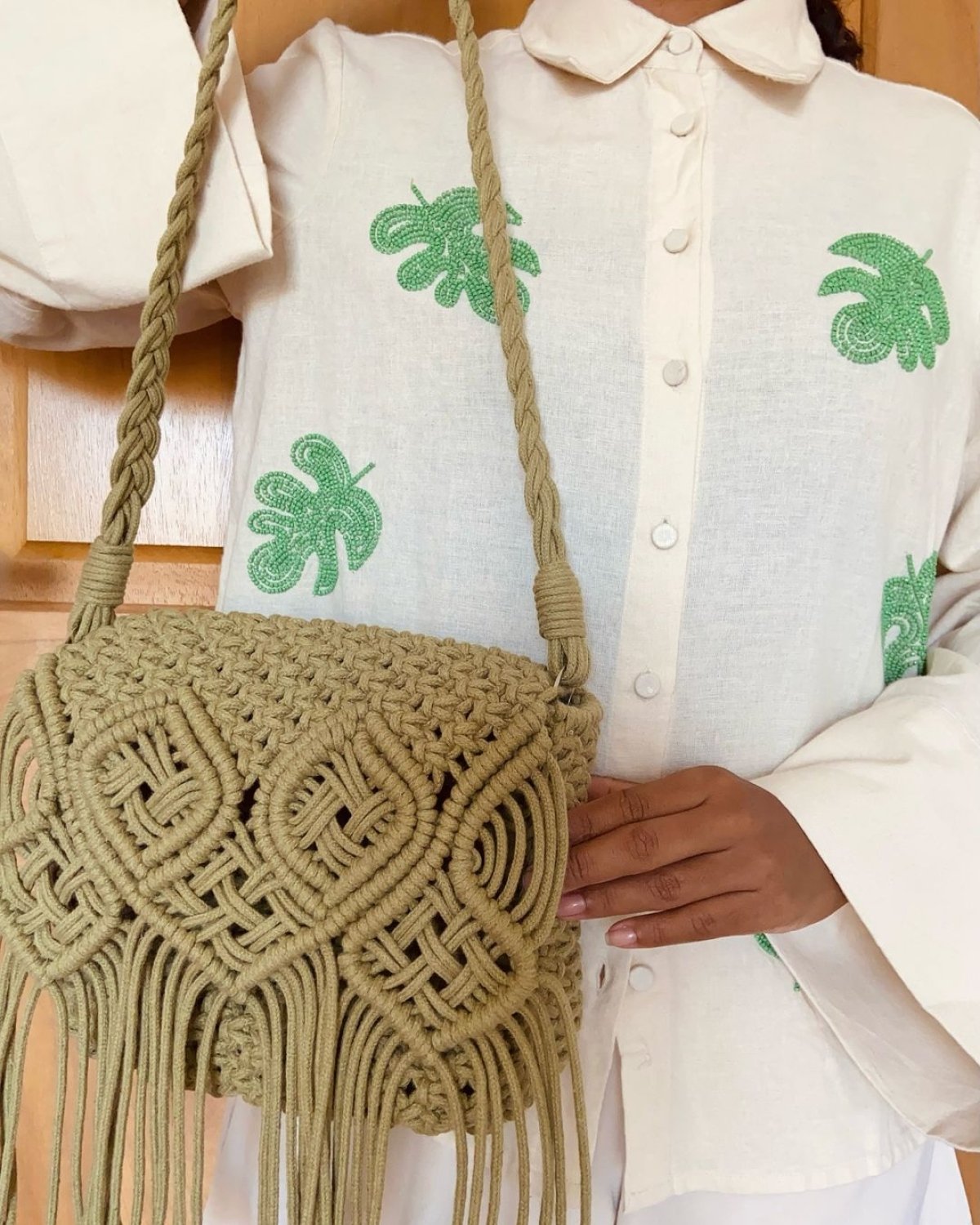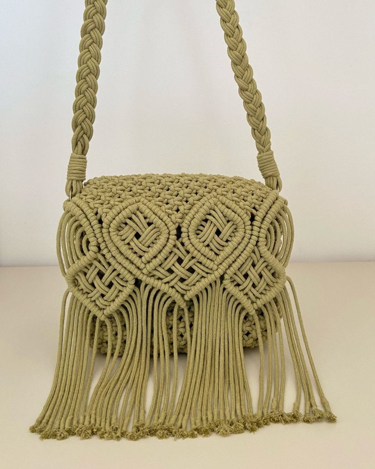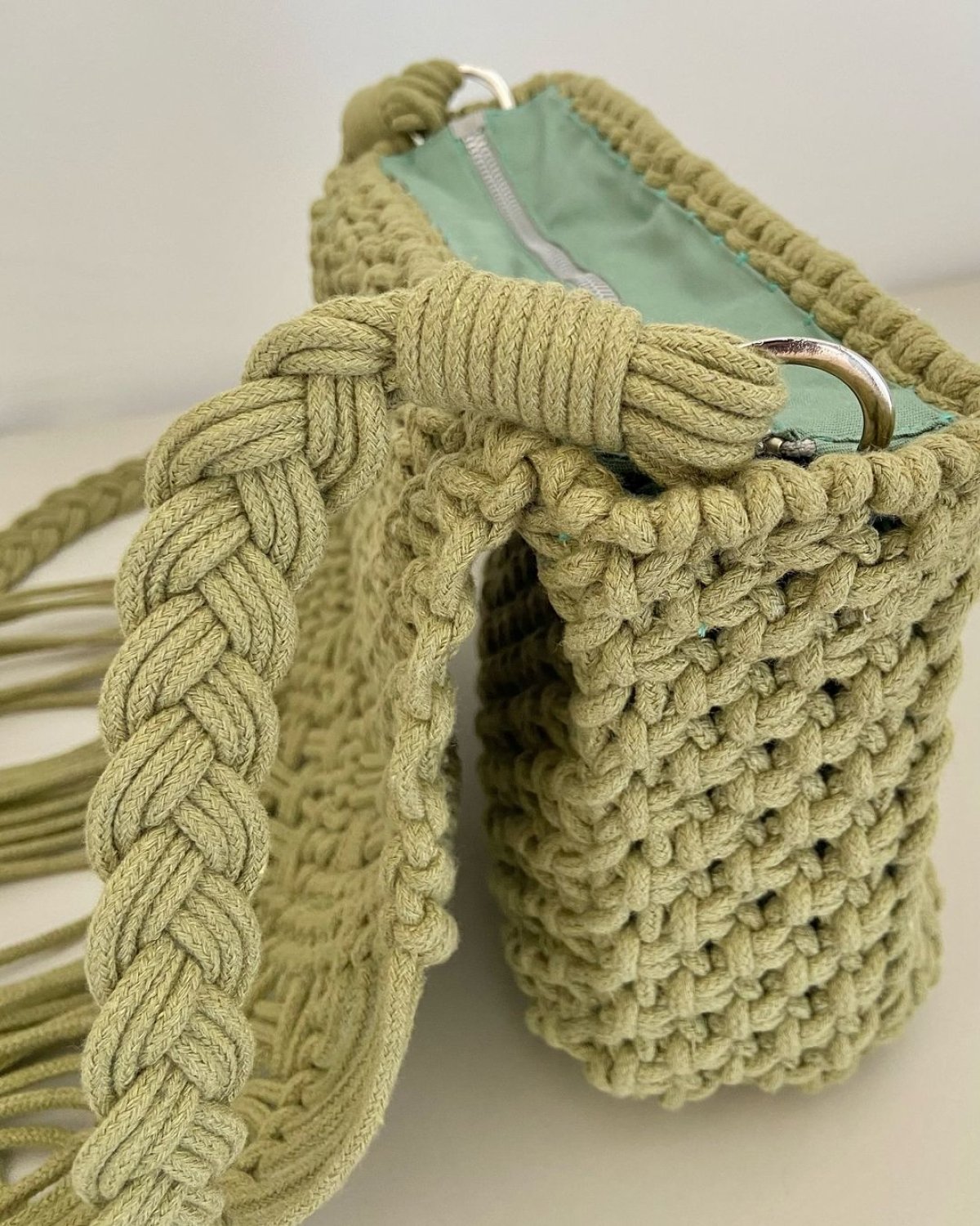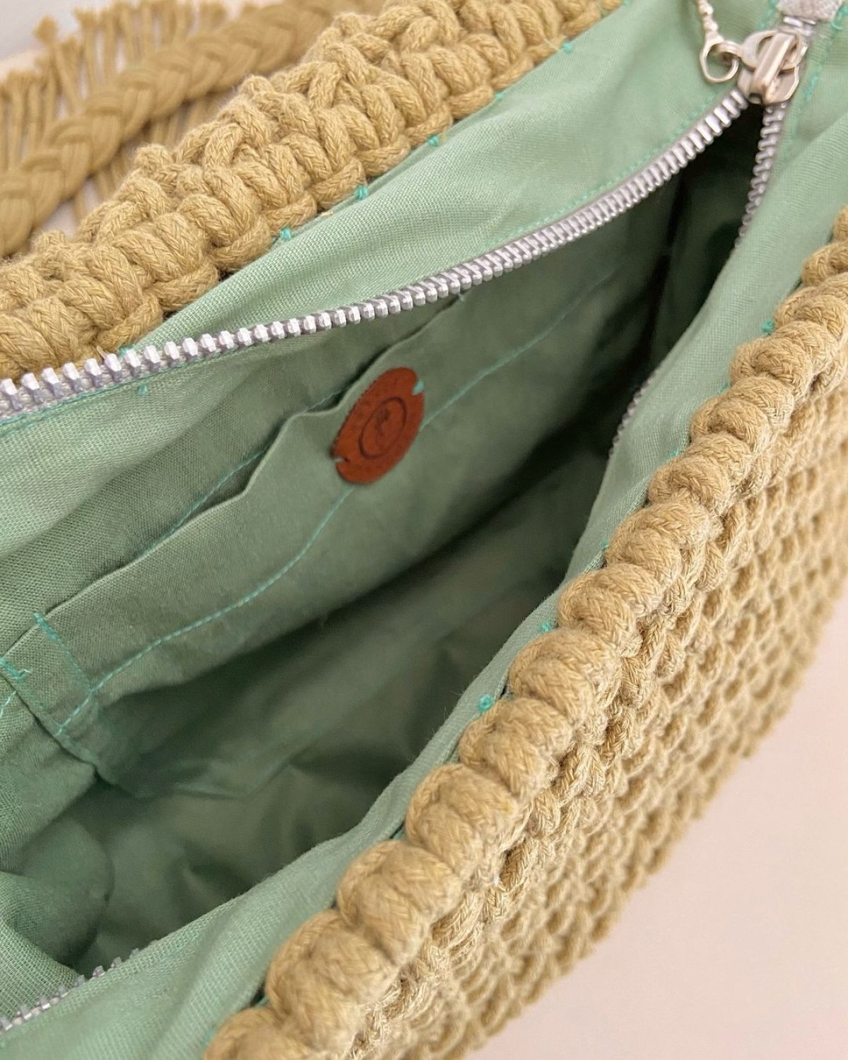 حقيبة يد مكرامية من خيوط قطن الكوردون كاندي ببطانة داخلية وجيب واحد مغلق بسحاب العرض: 30 سم الطول: 30 سم