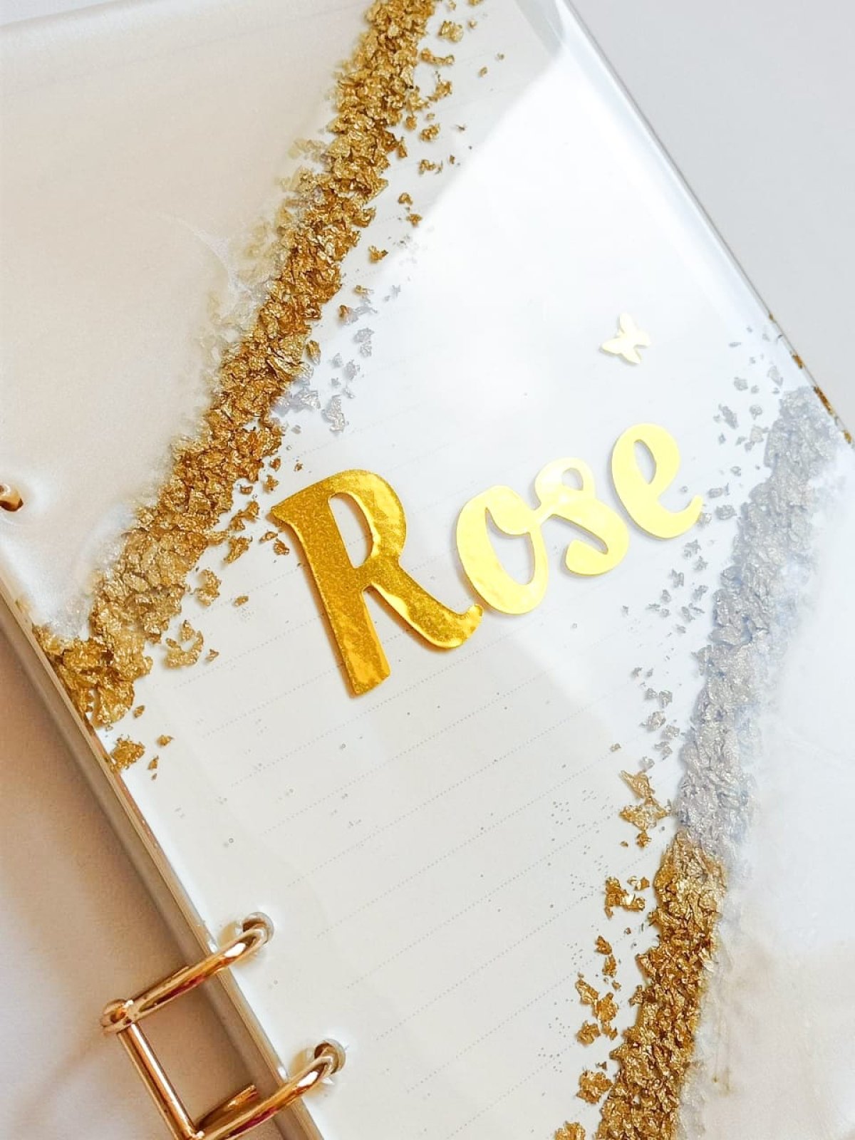 من اللون البيج والورق الدهبي مع الريزن الشفاف 🤗 تحتوي علي ورق عالي الجوده وعند انتهاءه يمكن فكه وتركيب ورق جديد 👌🏻 متاح تغيير التصميم وكتابه اسم العميل ✨✨