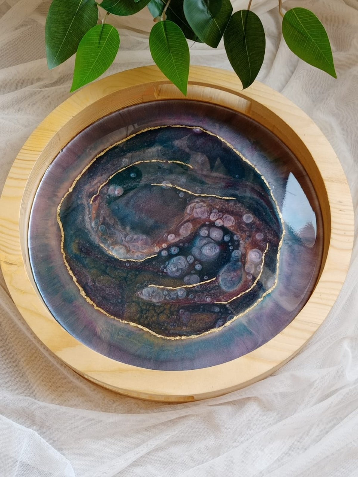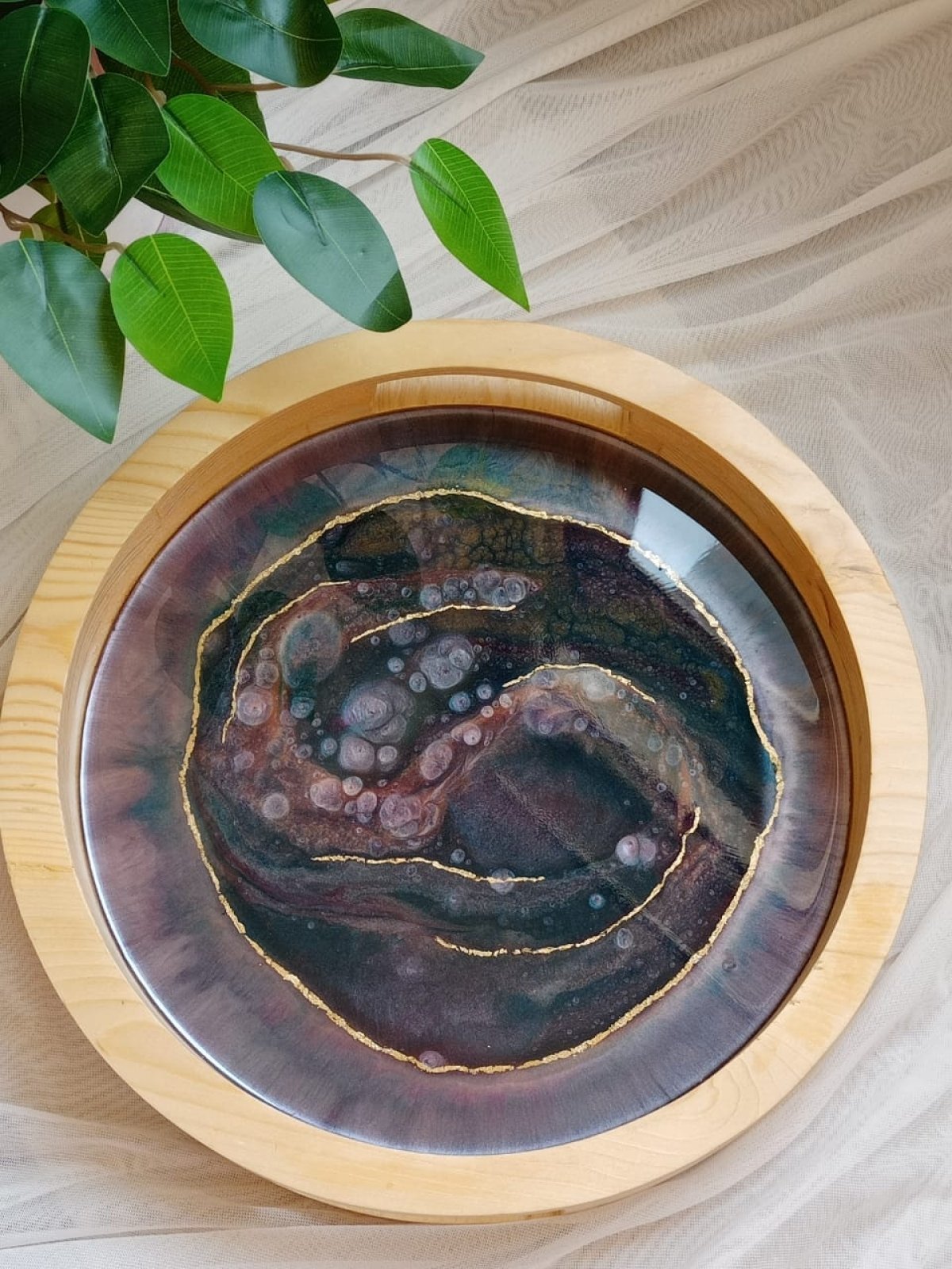 صينية خشب بالريزن🪵🔮 صينية خشب دائرية مقاس ٢٥سم خشب سويدي عالى جودة بداخلها مزيج من الريزن الملون بشكل عشوائى✨✨✨✨ متاحة فورى👍