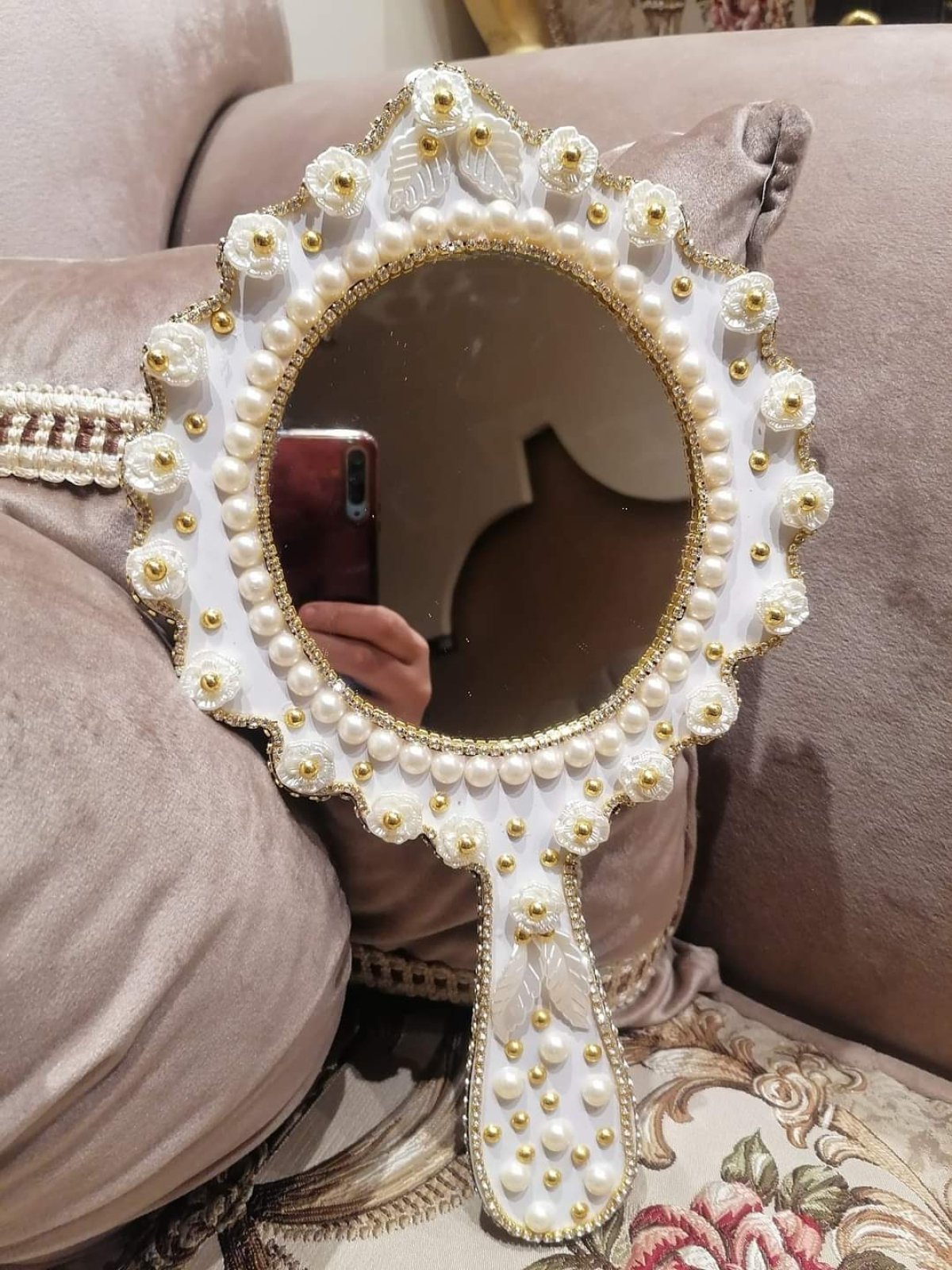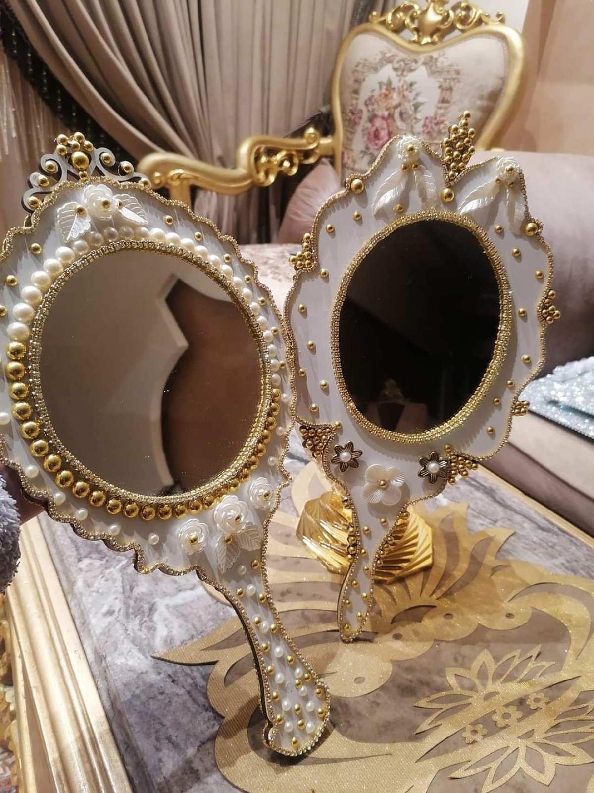.مراية للعروسه بالاسم الحجم كبير عباره عن خشب mdf ومزينه بقطع من الاكريليك واللولي 🌹