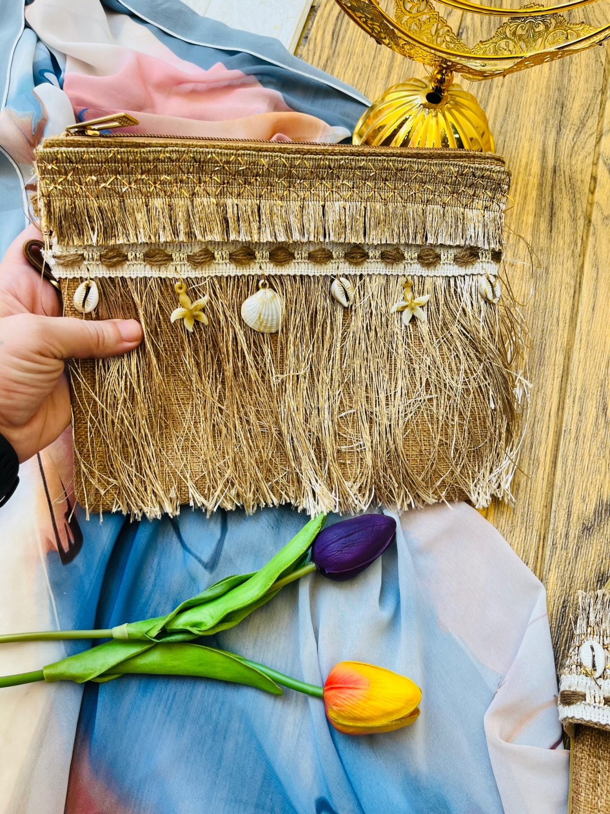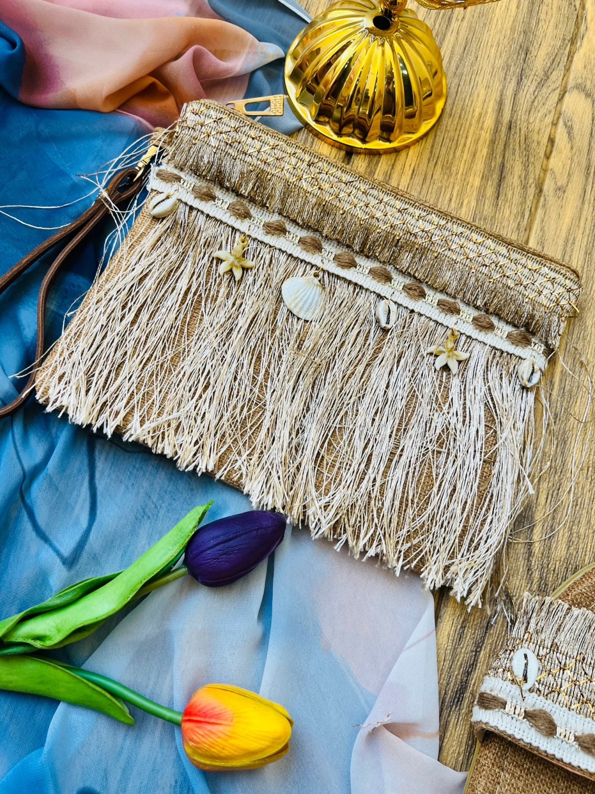 كلاتش خامه كتان مبطن بوري وقماش داخلي