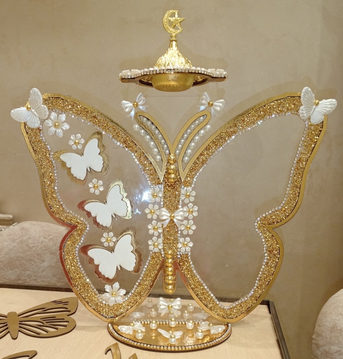 منتج جديد وحصري ف دودي جاليري مبخره وبصمة كتب كتاب في قطعه واحده اكليريك شكل فراشه خامات مستورده كافيار وفروع الماظ اقتنيها في منزلك🌹