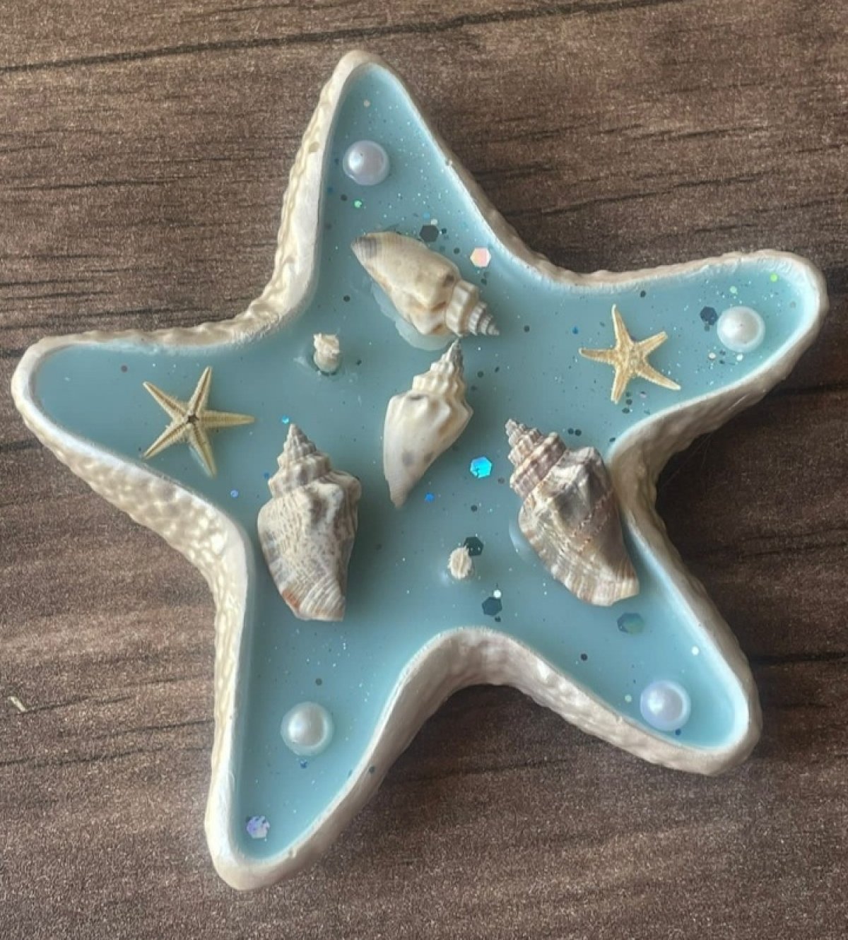 شمعة نجمة البحر بي اللون الازرق الهادى وعطر مميز وفواح و تعطى اجواء رومانسية وهادئة