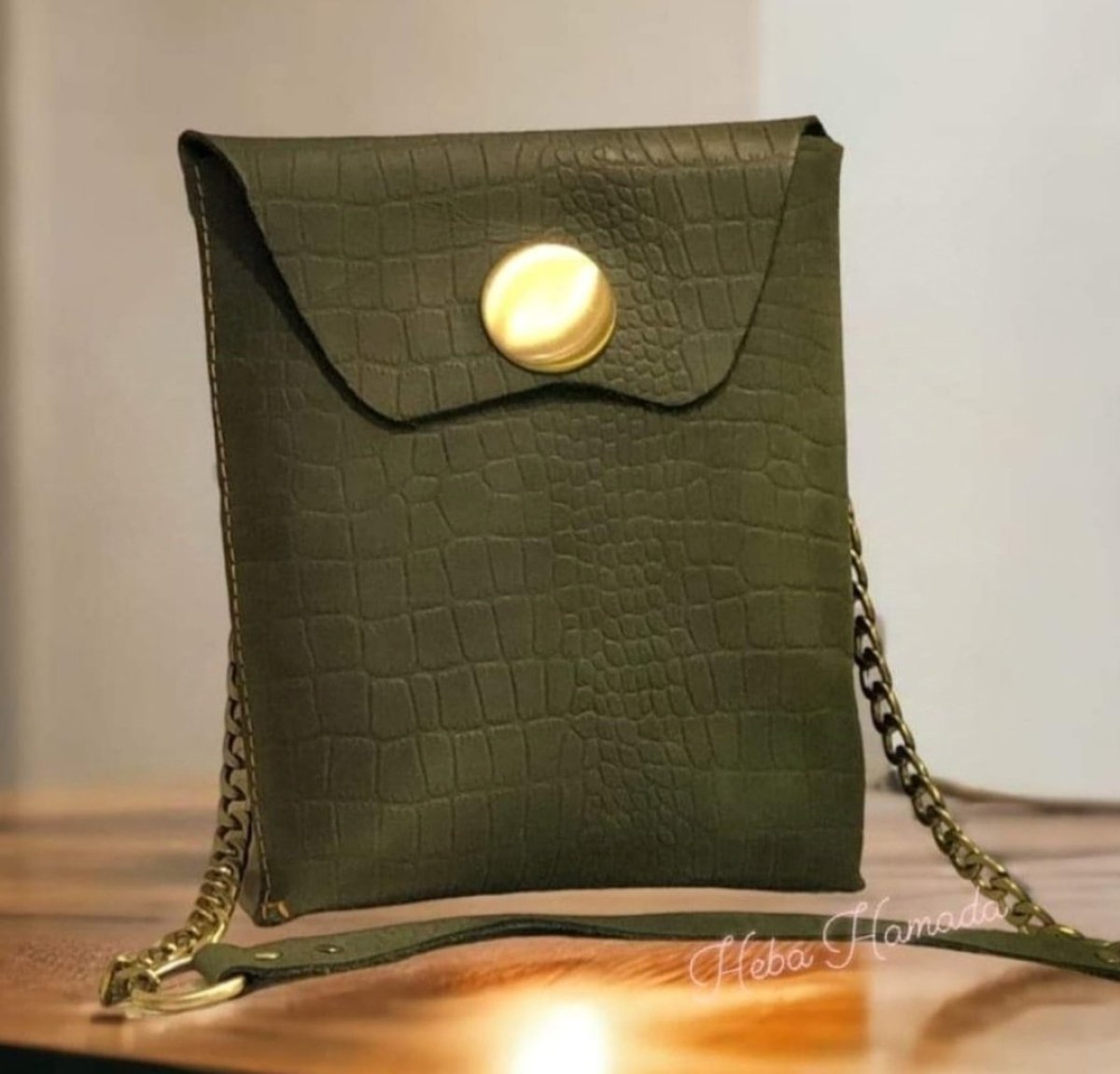 شنطه جلد طبيعي هاند ميد >اللون زيتي >نسخه واحده فقط >الطول ٢٣ سم >العرض ١٩ سم
