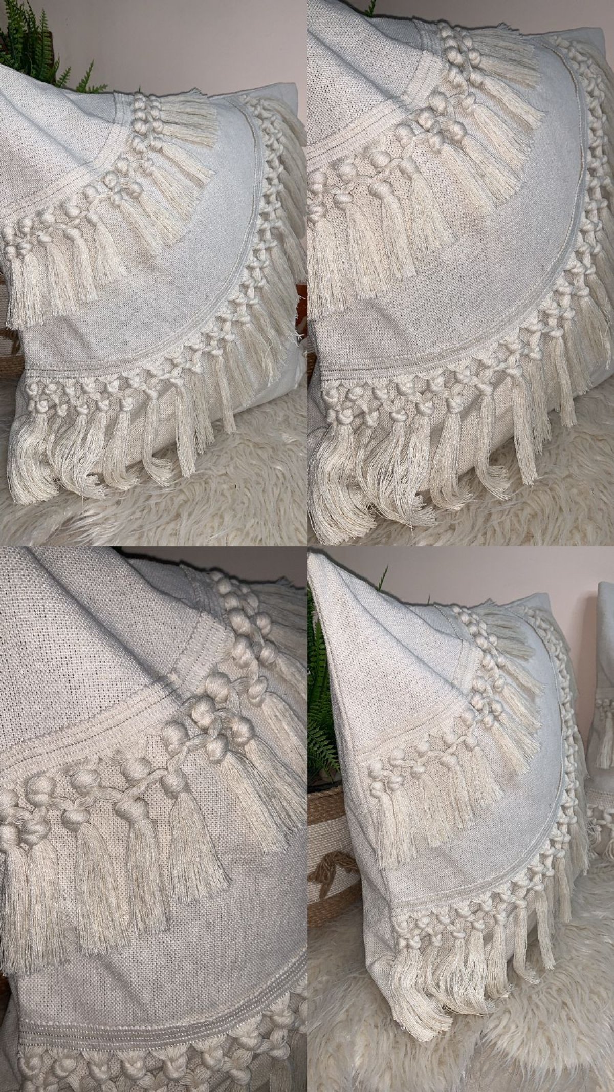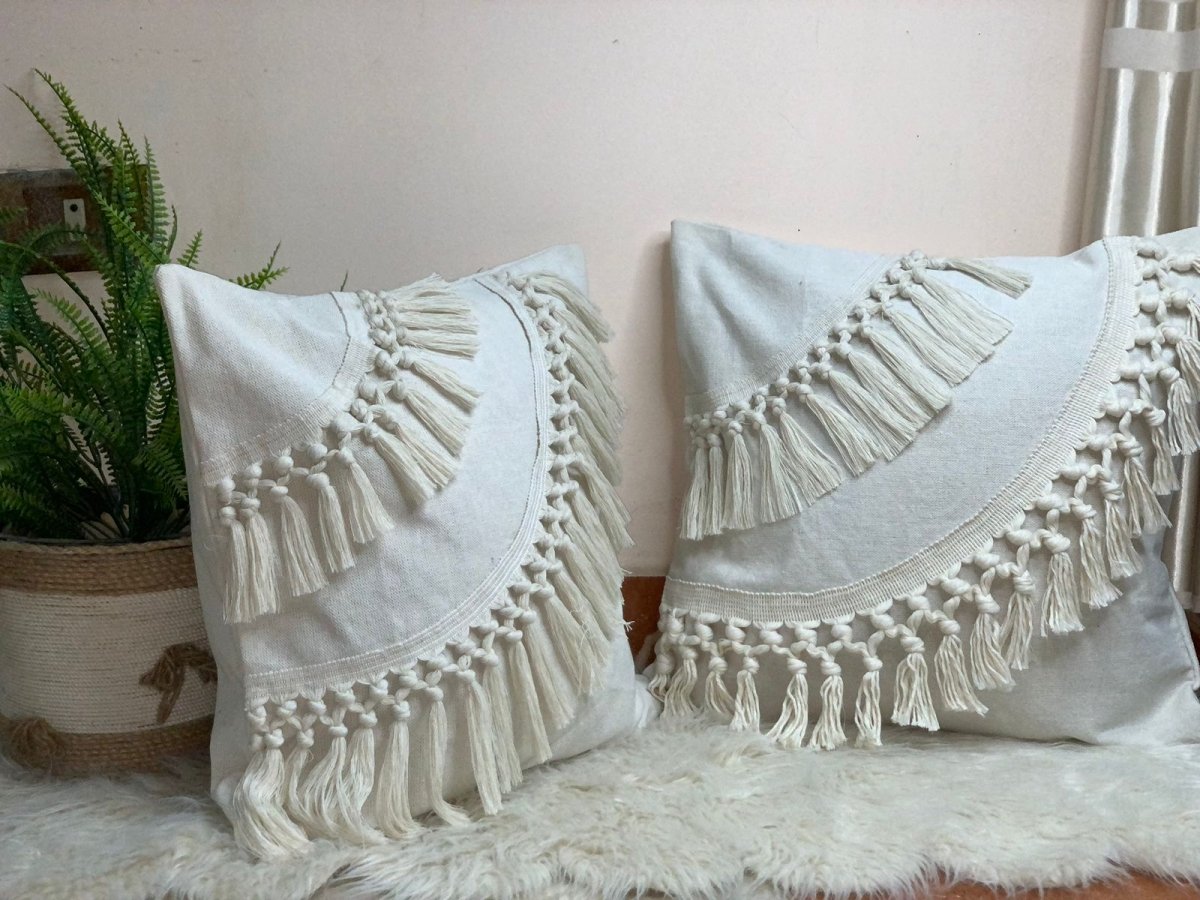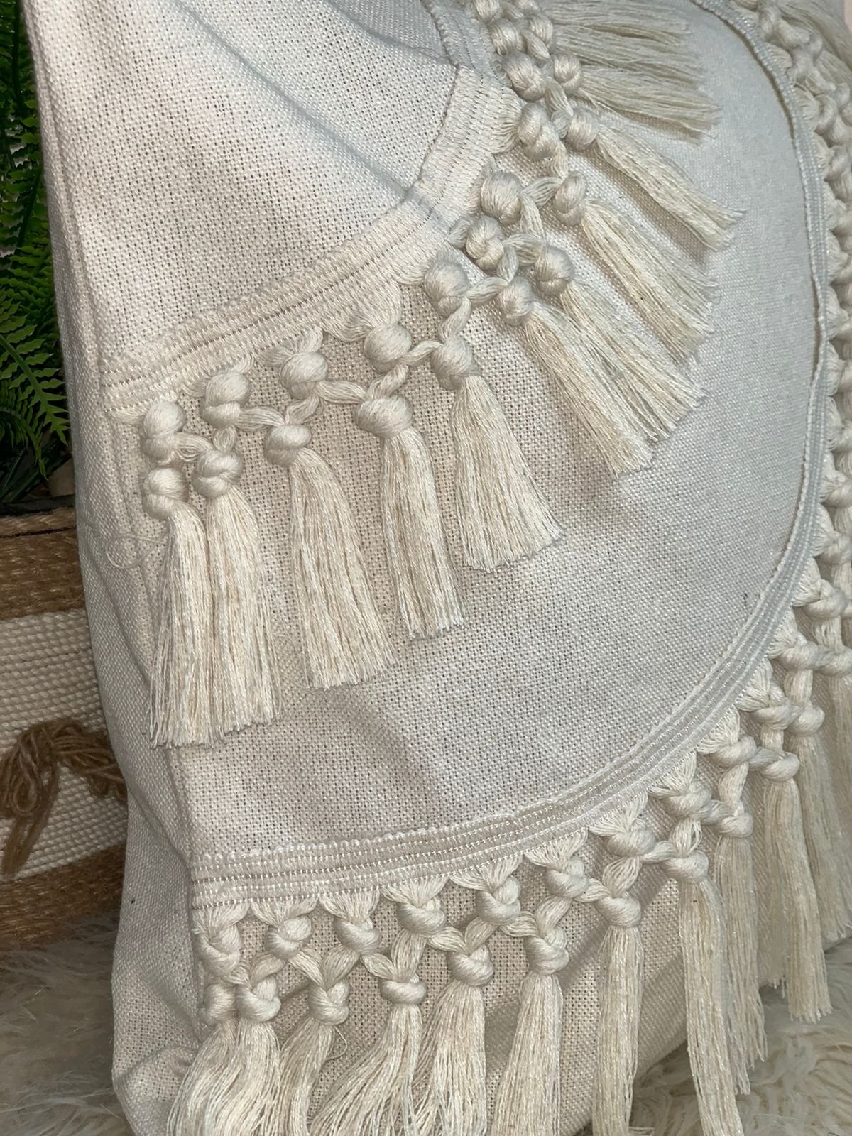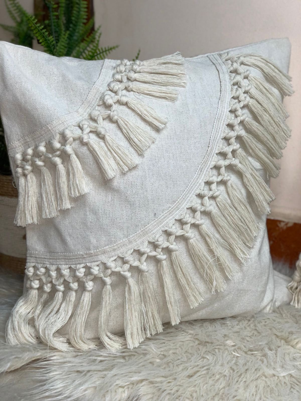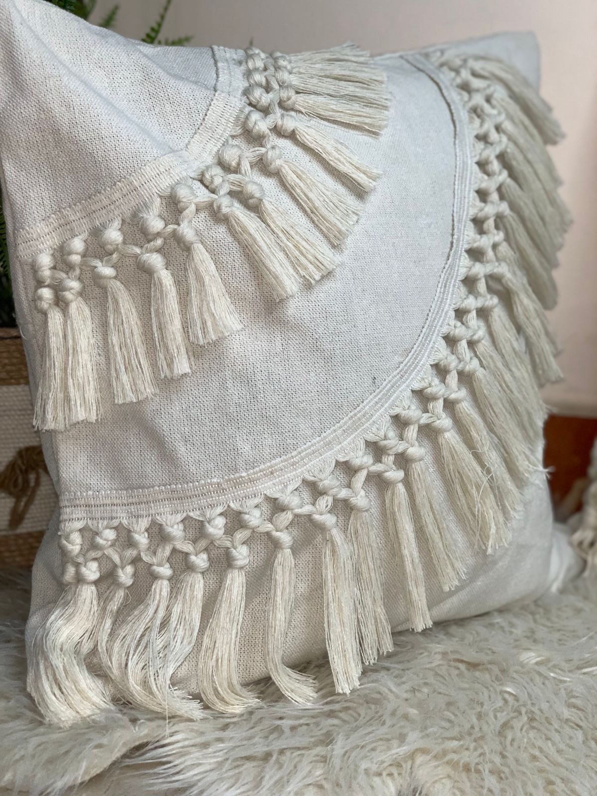 كوشن بوهيمي مصنوع من قماش الدك.. مقاس الكوشن 45*45 سم.. مشغول عليه بالمكرميه.. خيار تنفيذه بأي شكل حسب الاحتياج..
