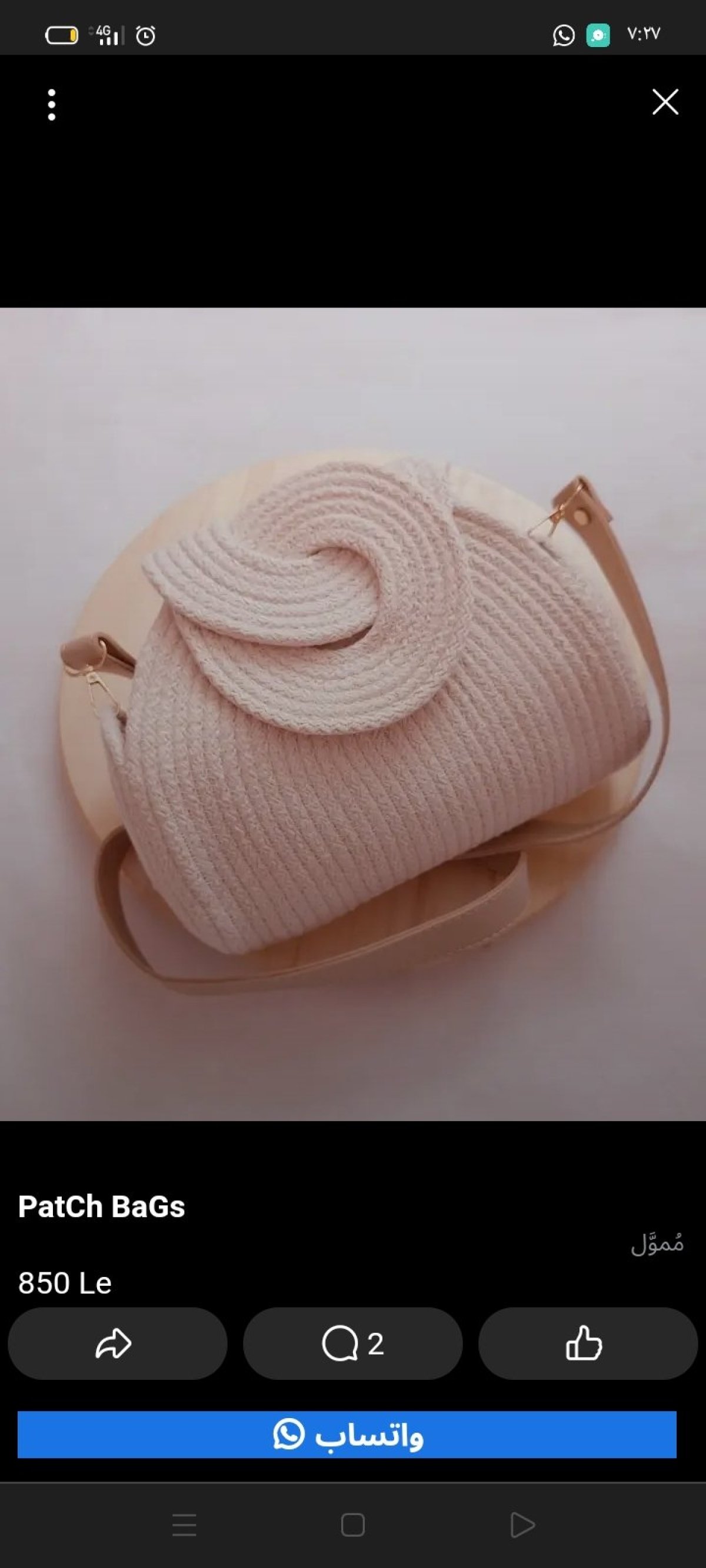 شنطه مميزه من خيط كوردون القطن والجلد