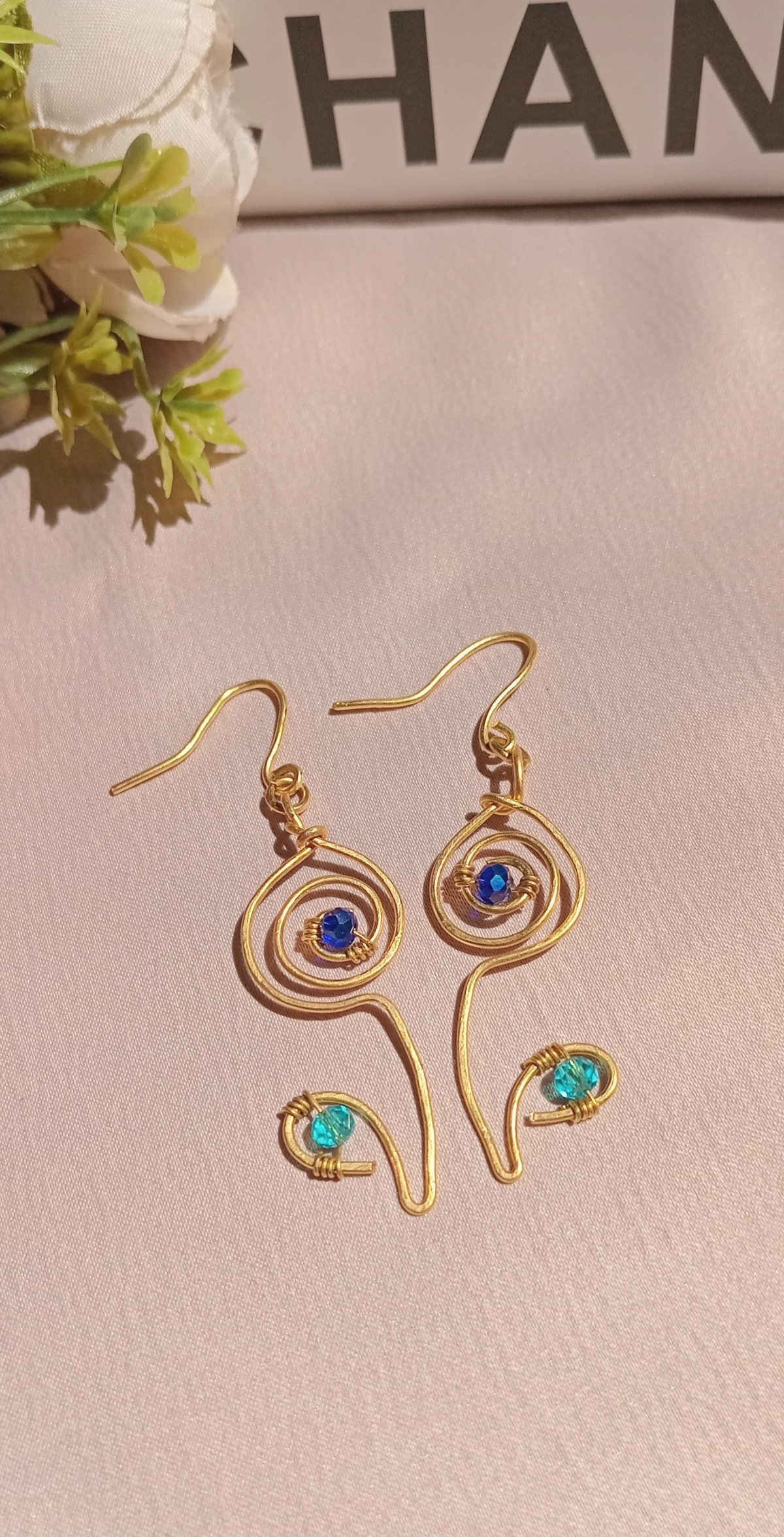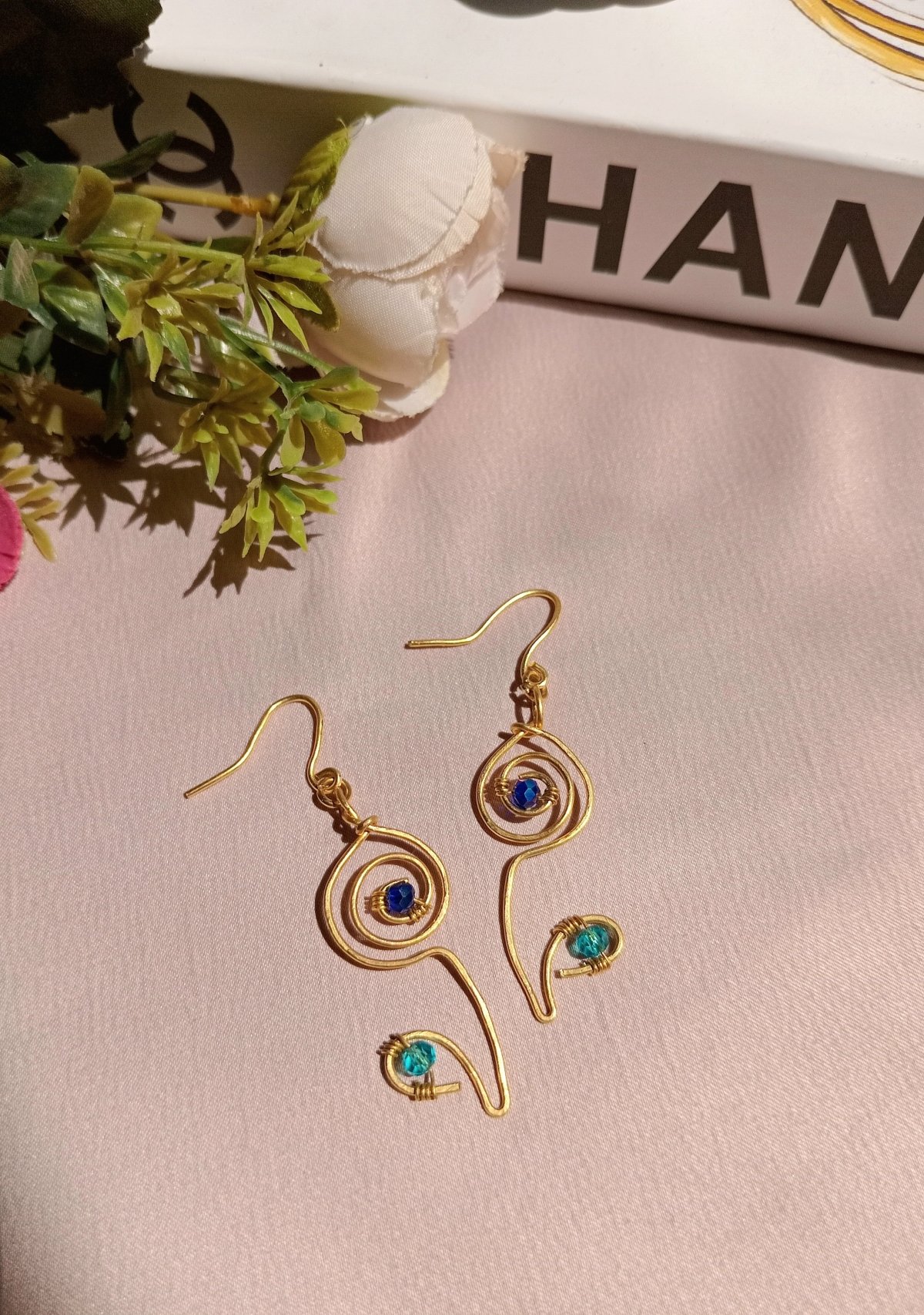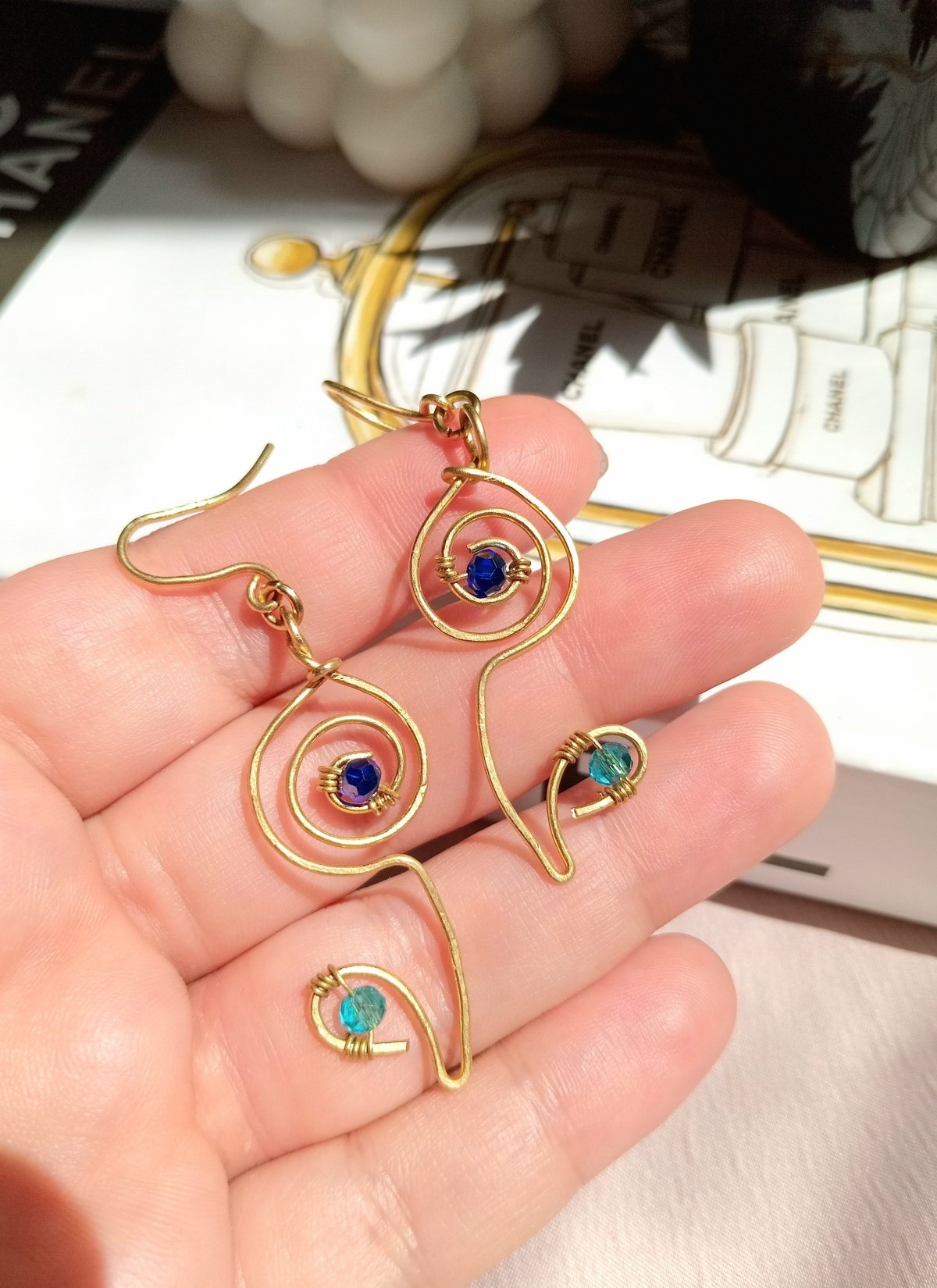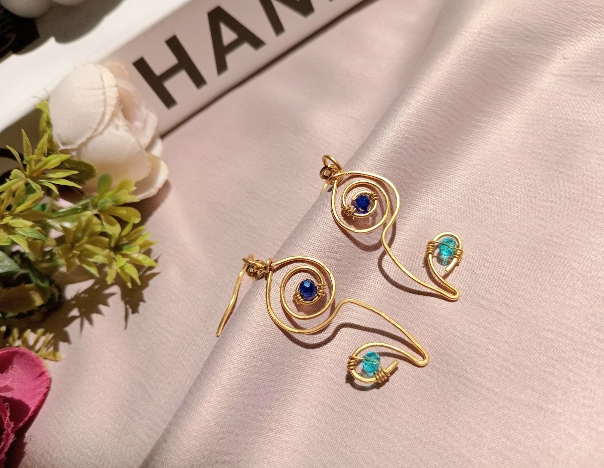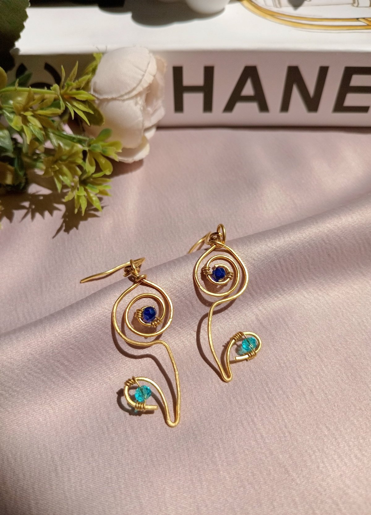 حلق نحاس على شكل وردة مع خرز كريستالي