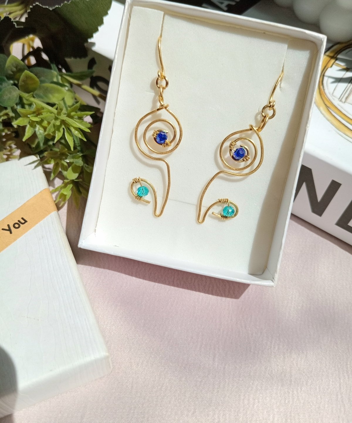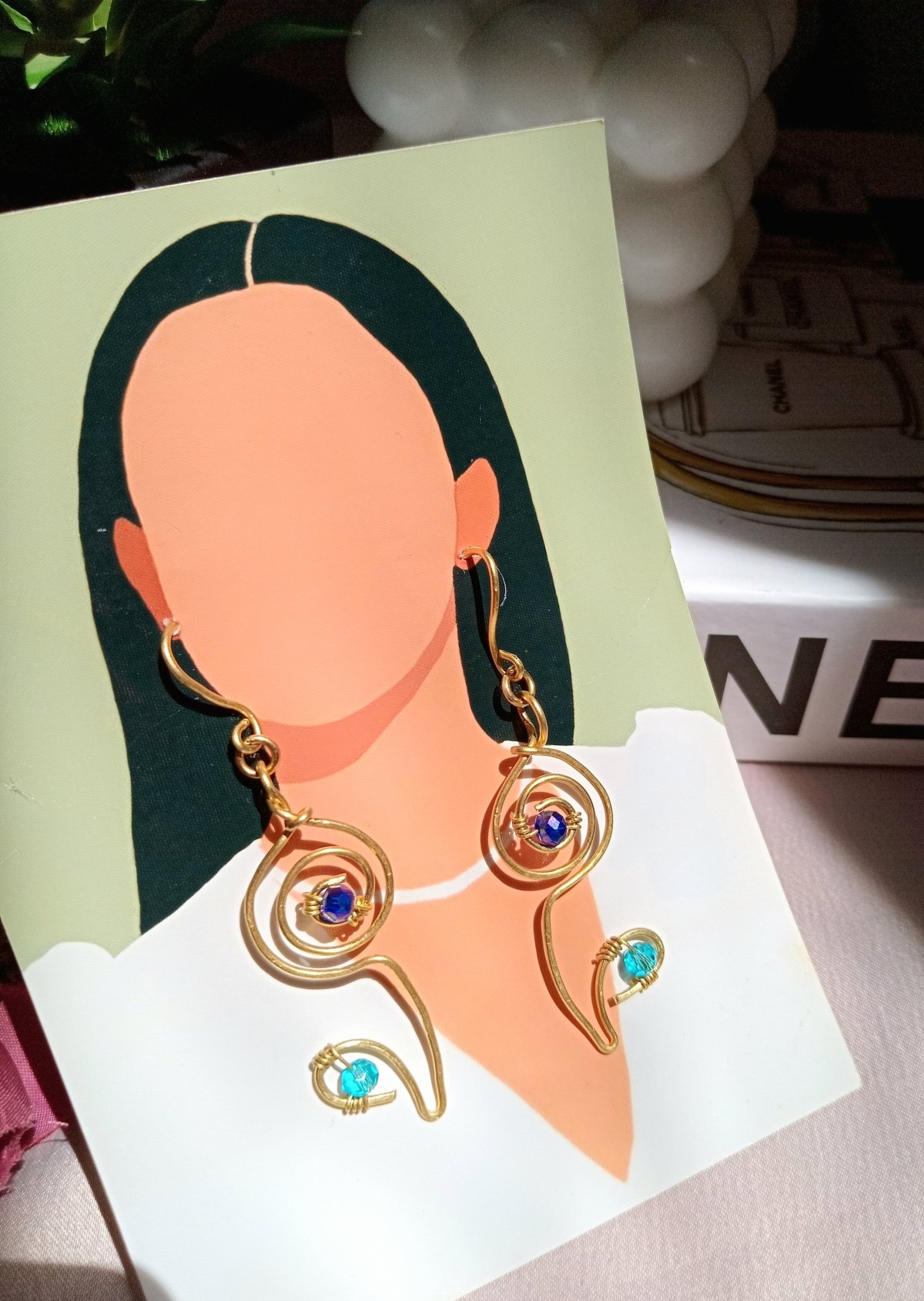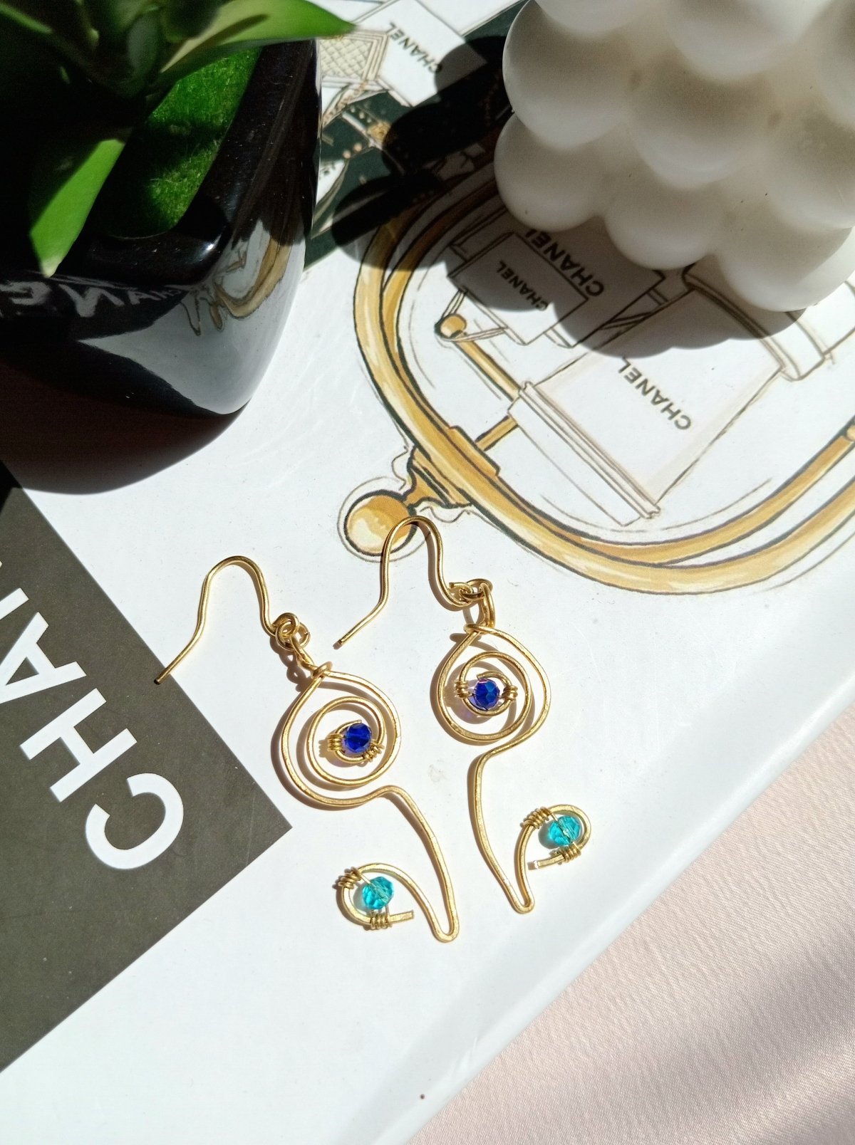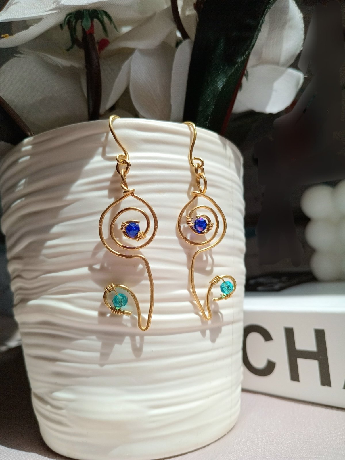 حلق نحاس على شكل وردة مع خرز كريستالي
