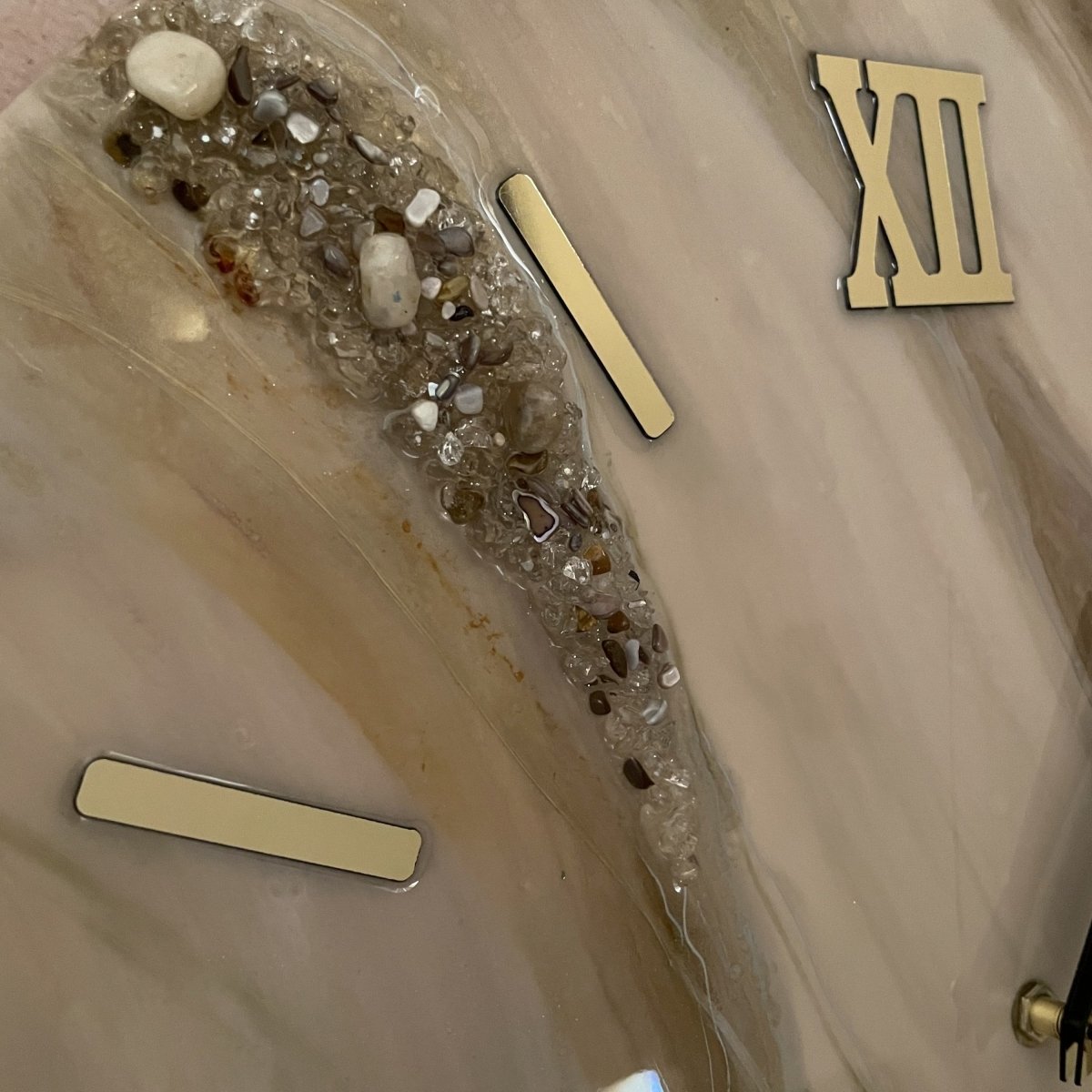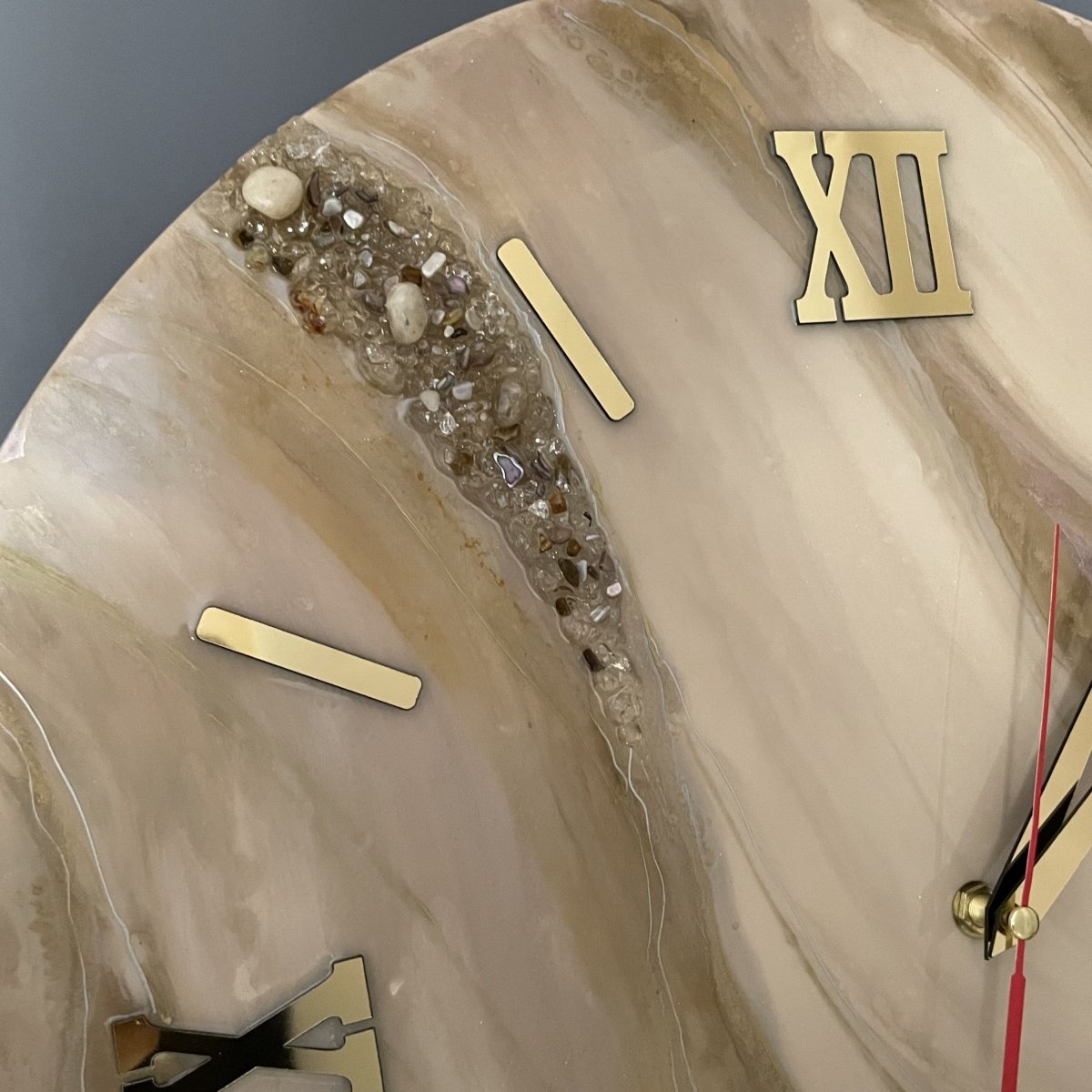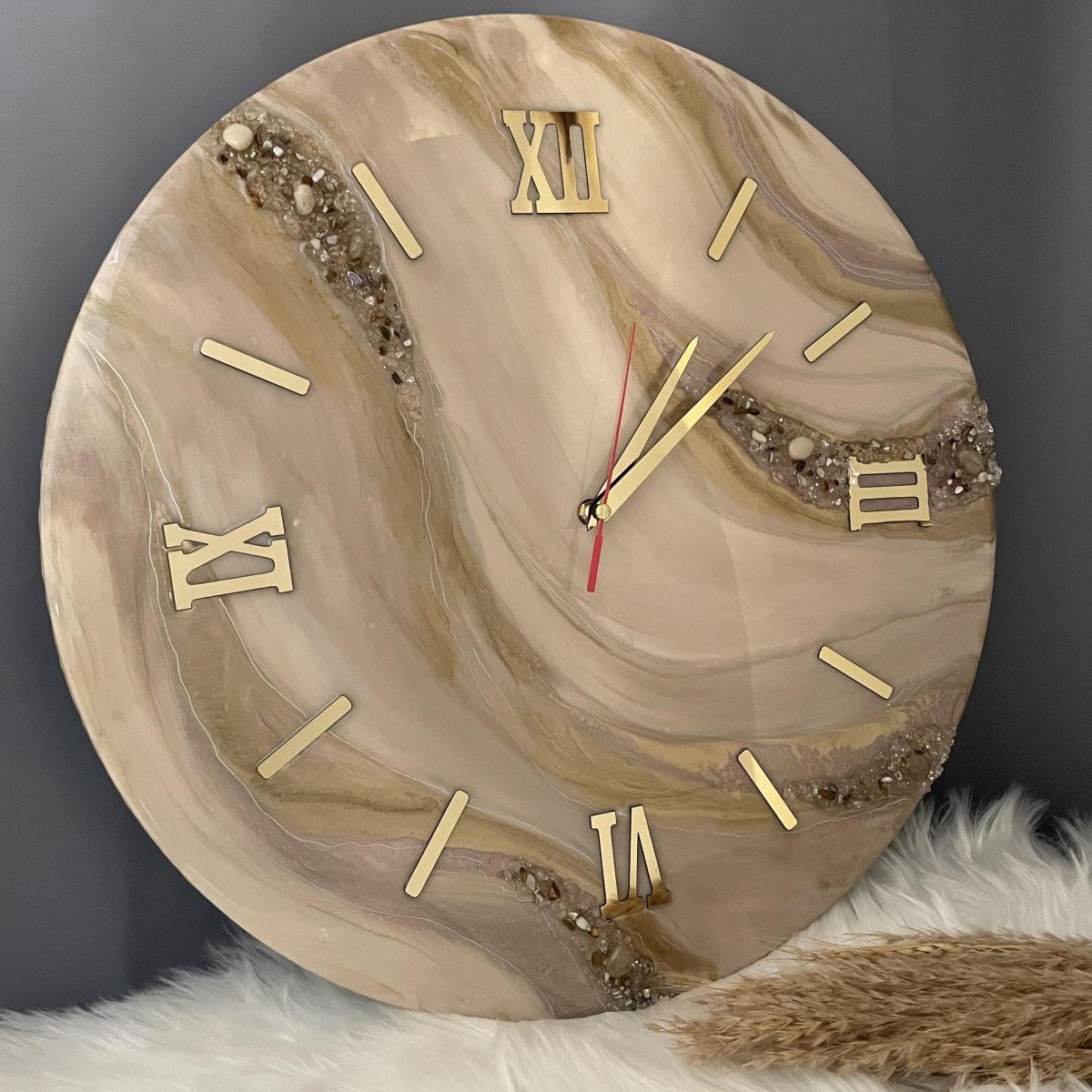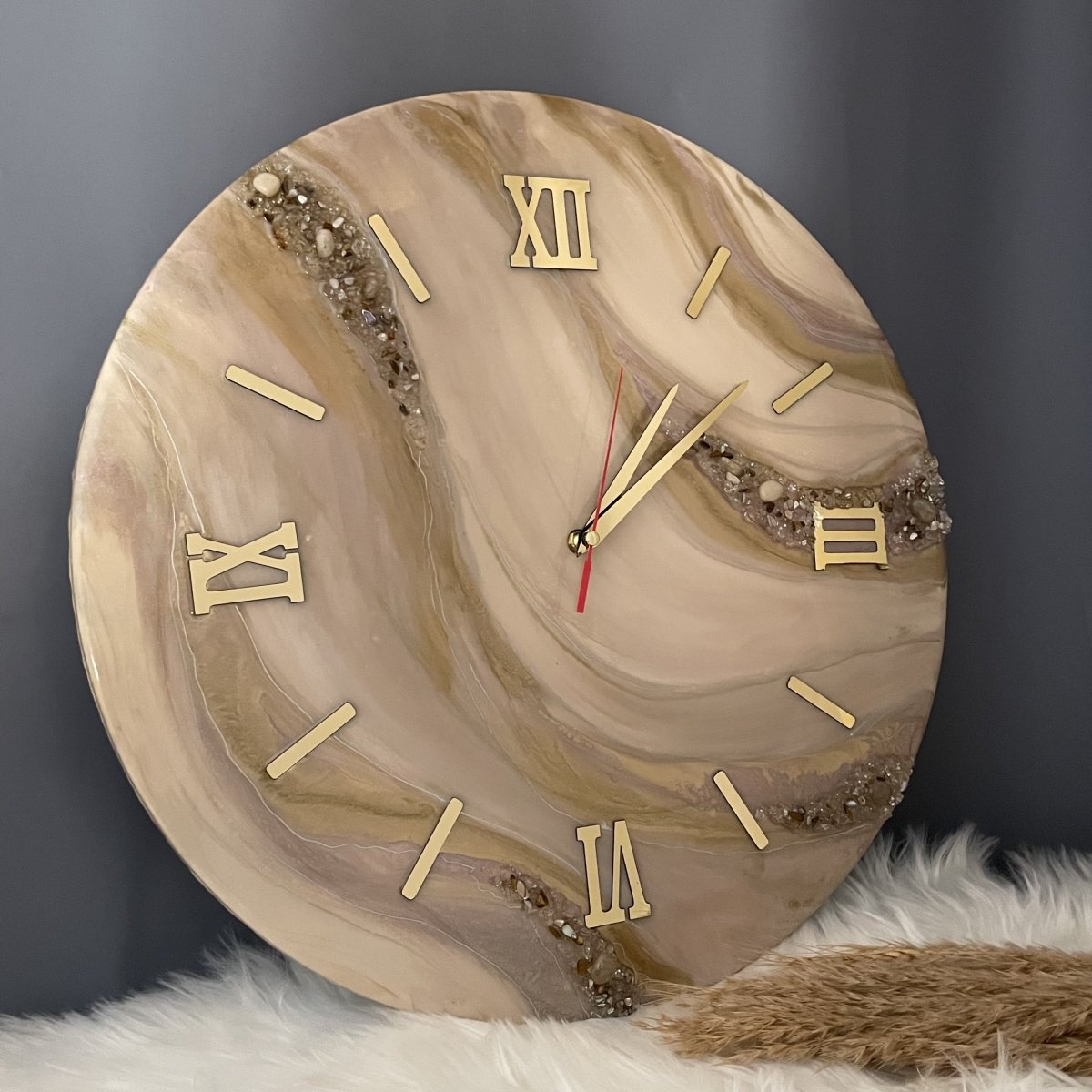 ساعه من الريزن مقاس ٥٠ سم بدرجات اللون الكافيه ومزينه بالاحجار