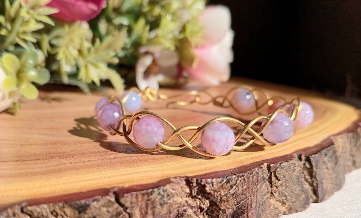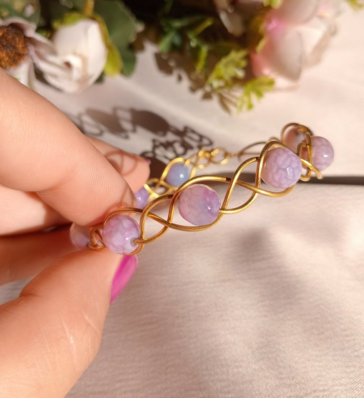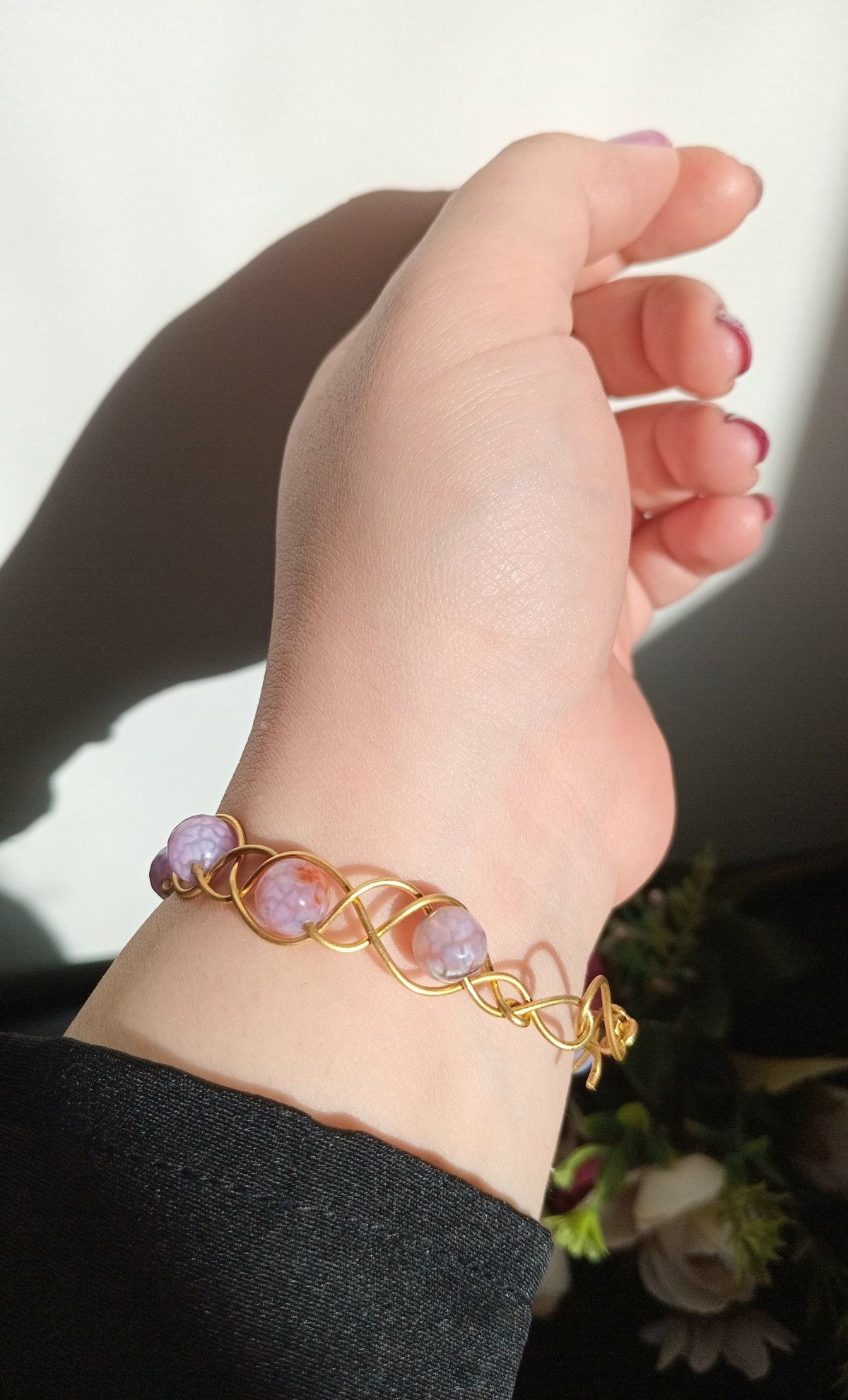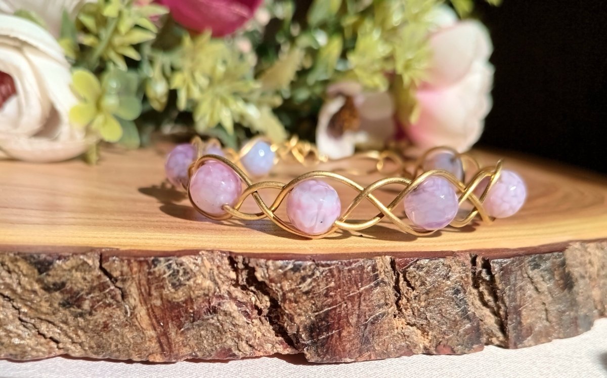 أسورة نحاس هاندميد مع خرز عقيق طبيعي