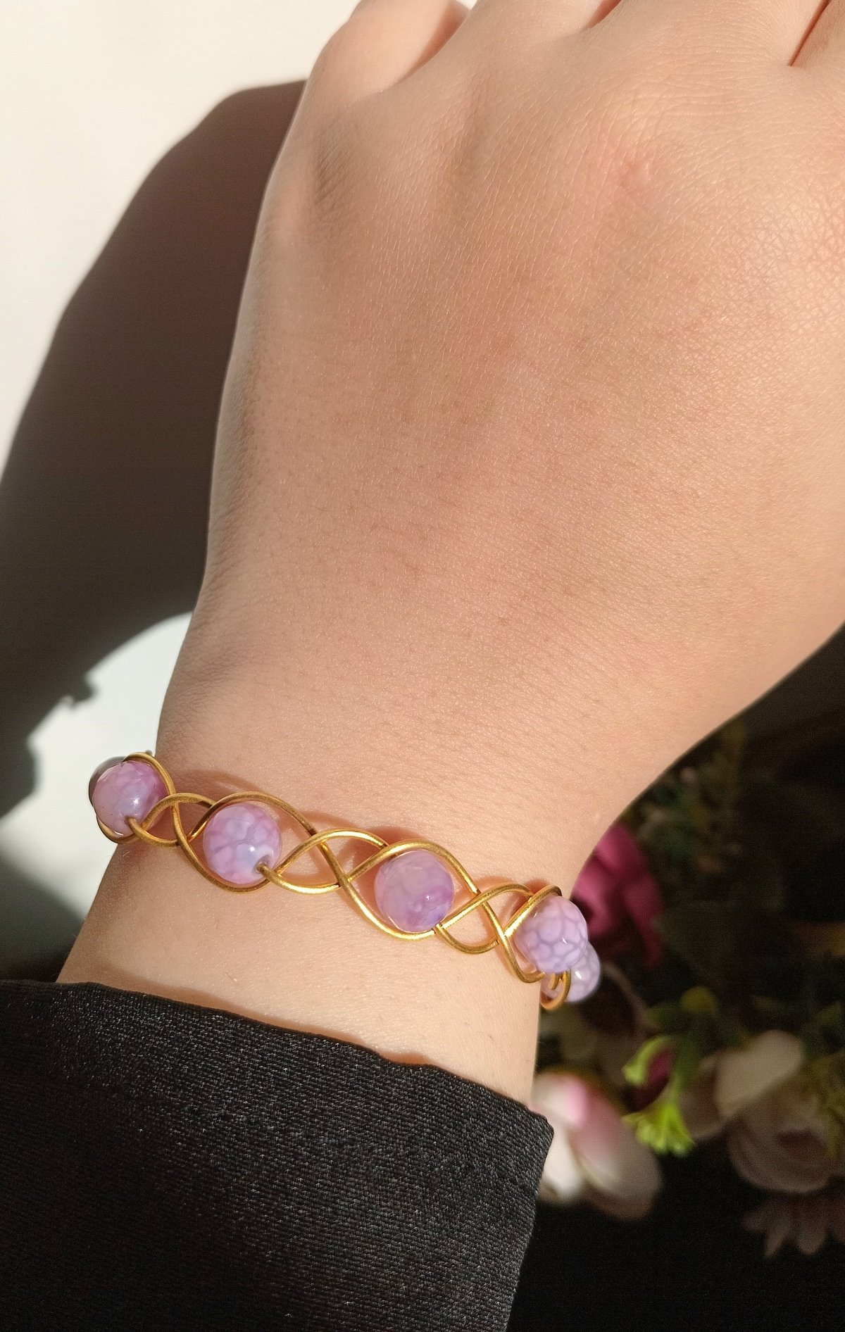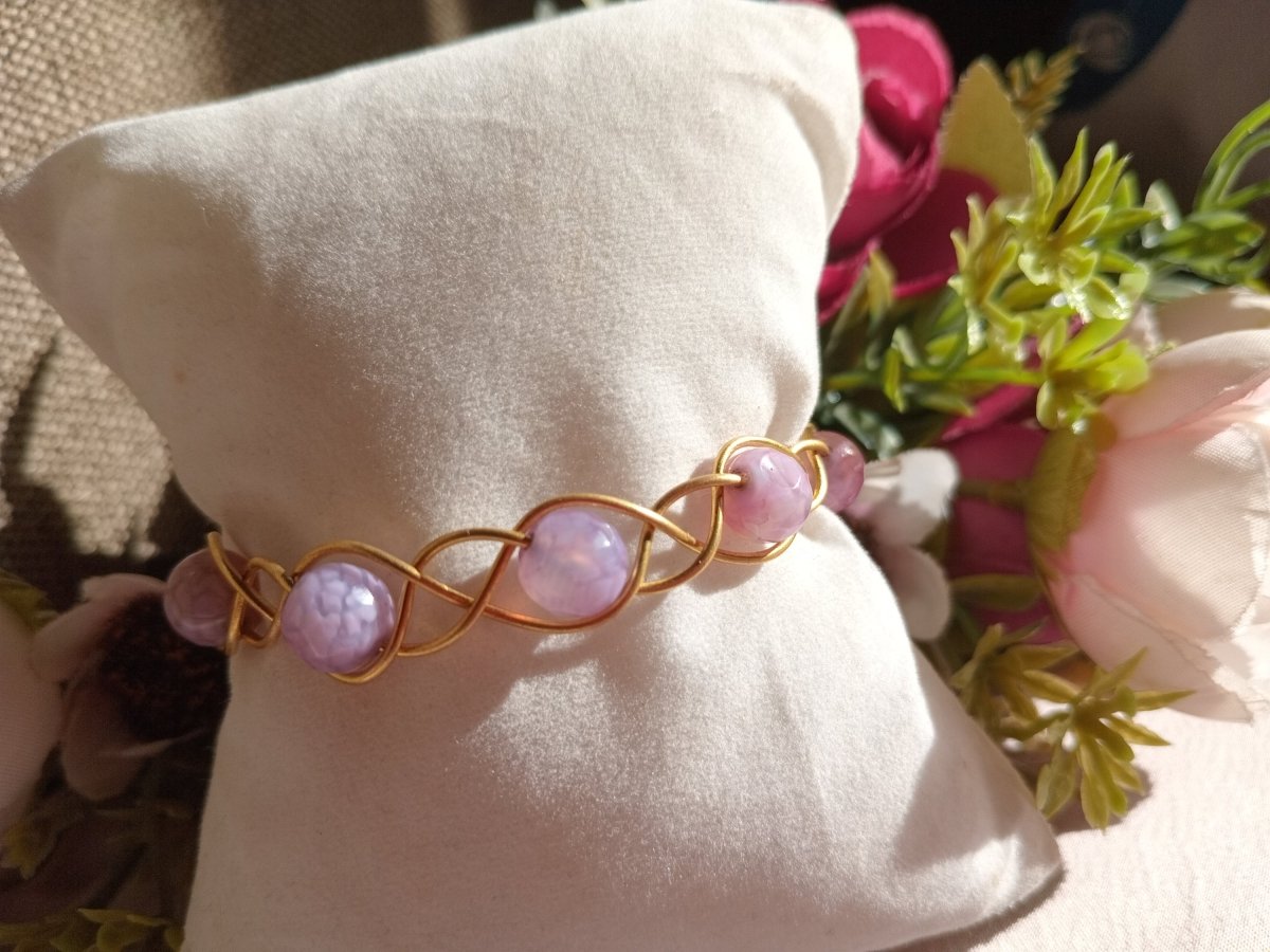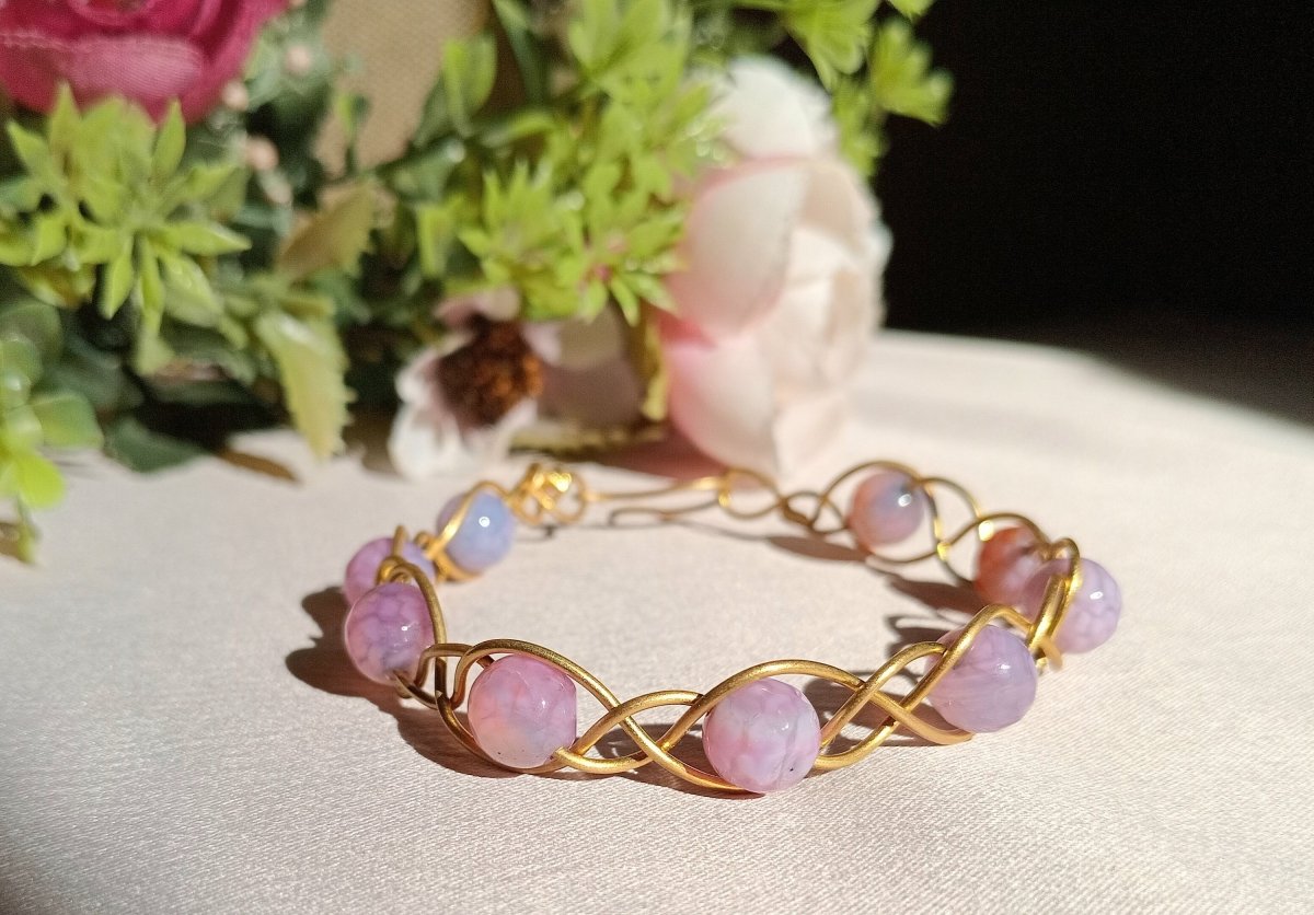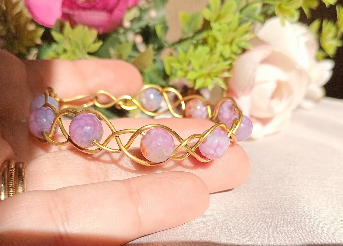 أسورة نحاس هاندميد مع خرز عقيق طبيعي