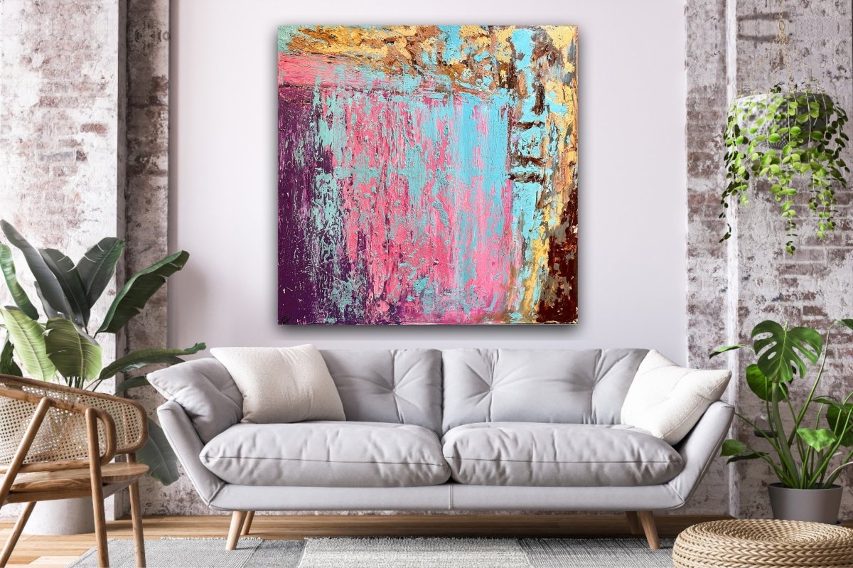 الأحلام هي لوحة تجريدية ساحرة تجسد جوهر قوة أحلامنا وجمالها. تتكامل الألوان الغنية والأرجوانية العميقة للقطعة بشكل مثالي مع اللون الوردي الهادئ والألوان الفيروزية المذهلة والألوان البنية الترابية، مما يخلق تجربة بصرية فريدة وديناميكية. تضيف الوسائط المتعددة المستخدمة في هذه اللوحة عمقًا وملمسًا إلى القطعة، مما يجعلها تنبض بالحياة وتعطي شعورًا بالذكريات. يشجع النمط التجريدي للرسم على التفسير والتأمل الشخصي، مما يجعله إضافة مثالية لأي منزل أو مكتب.