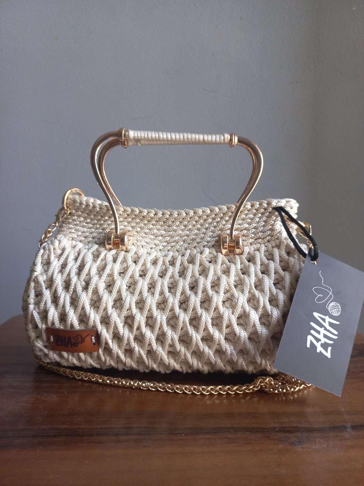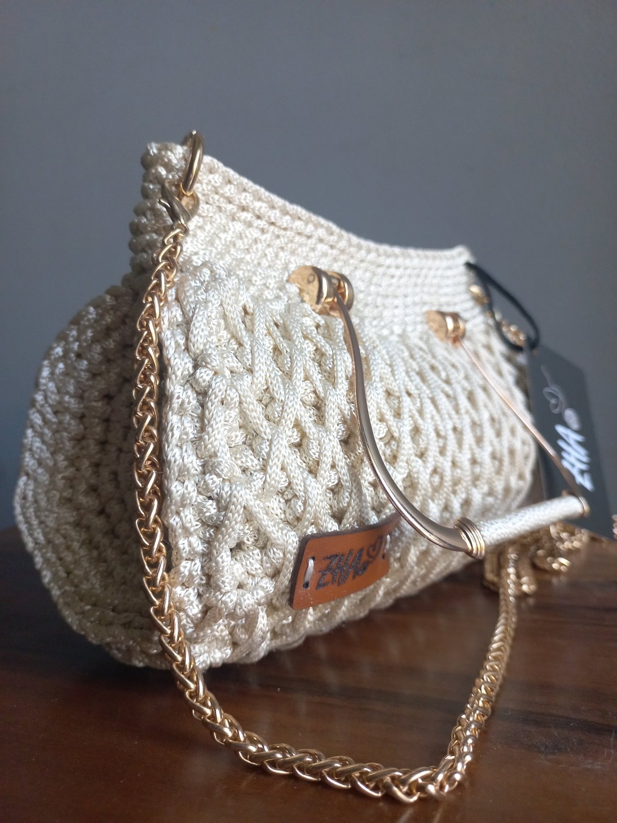 شنطة كروشية مصنوعة من خيط السلسله عالي الجوده مع يد معدني وزراع معدني تركي مبطنه من الداخل بطانه ستان مع مغناطيس تركي لغلق الشنطة مقاس الشنطة ٢٤سم في ١٤سم ❤️