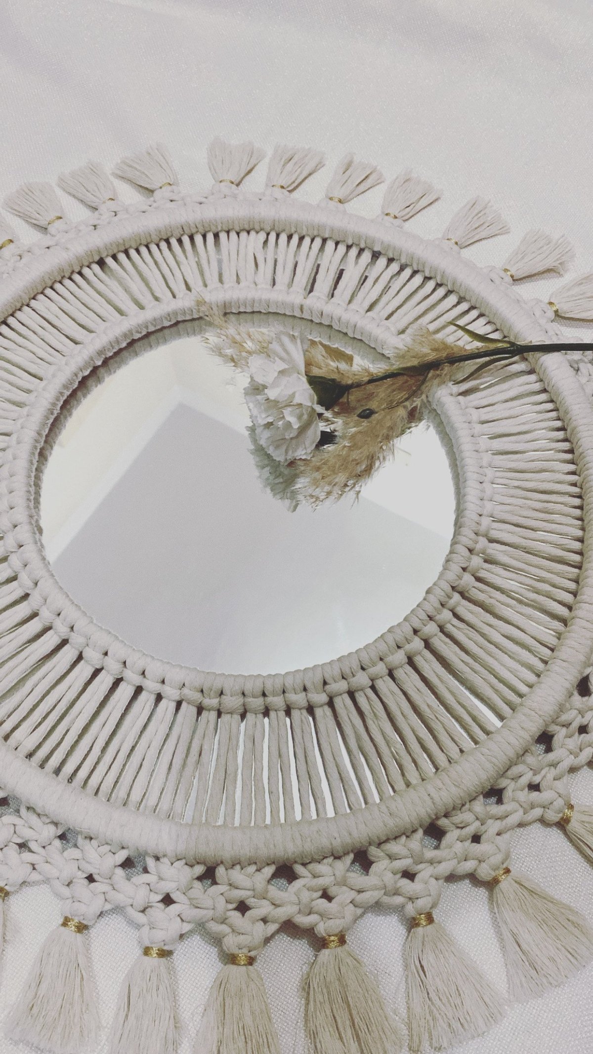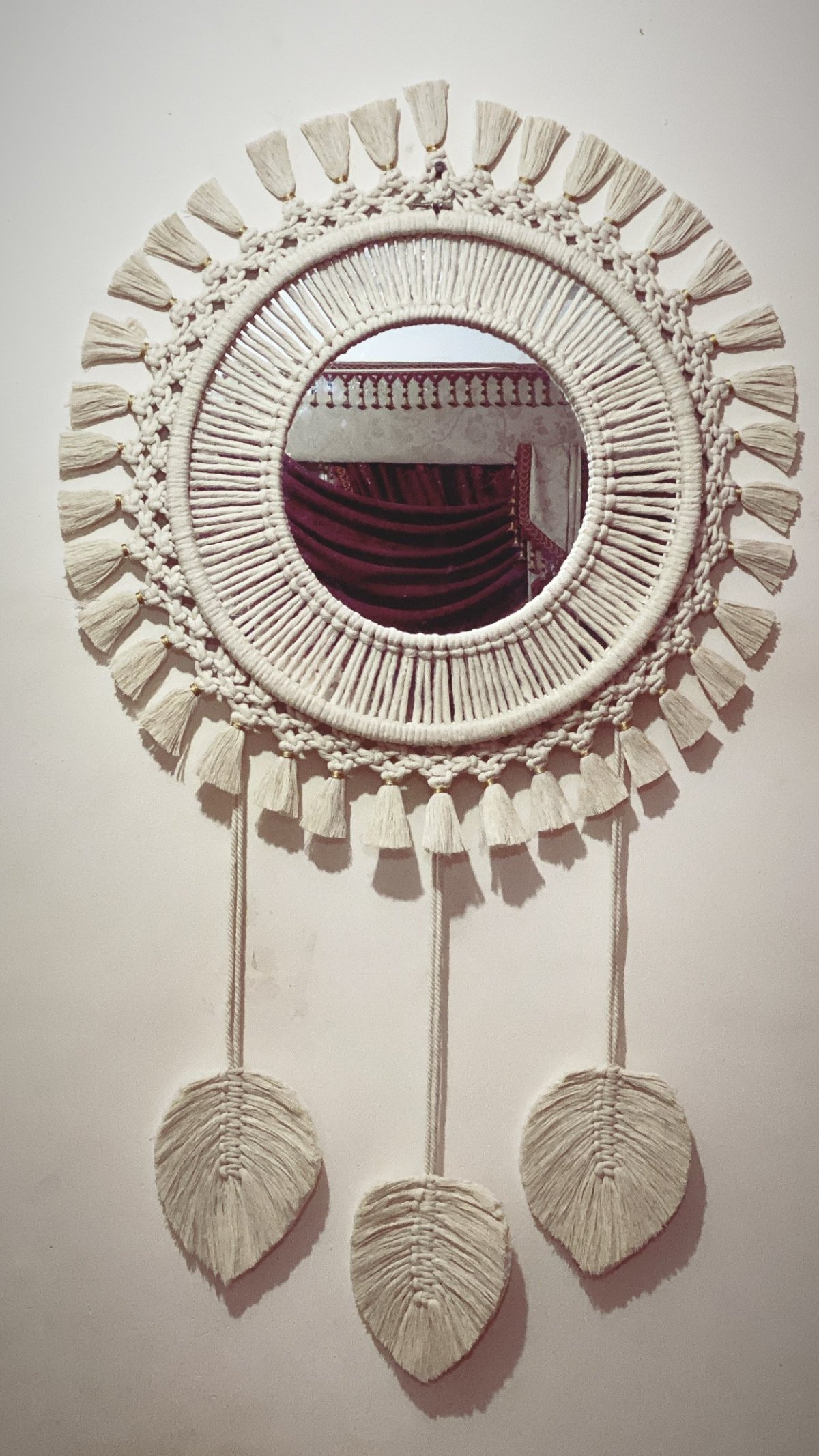 أضيفي لمسة جمال لحائط منزلك بمرآه من المكرمية بتصميم مميز جدا وحجم كبير