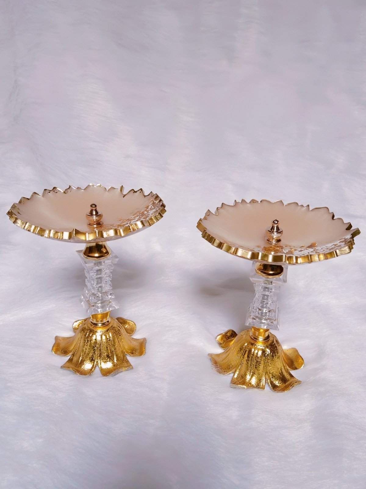 حامل للحلوي من الريزن والقاعدة معدة مطلي ورق دهب