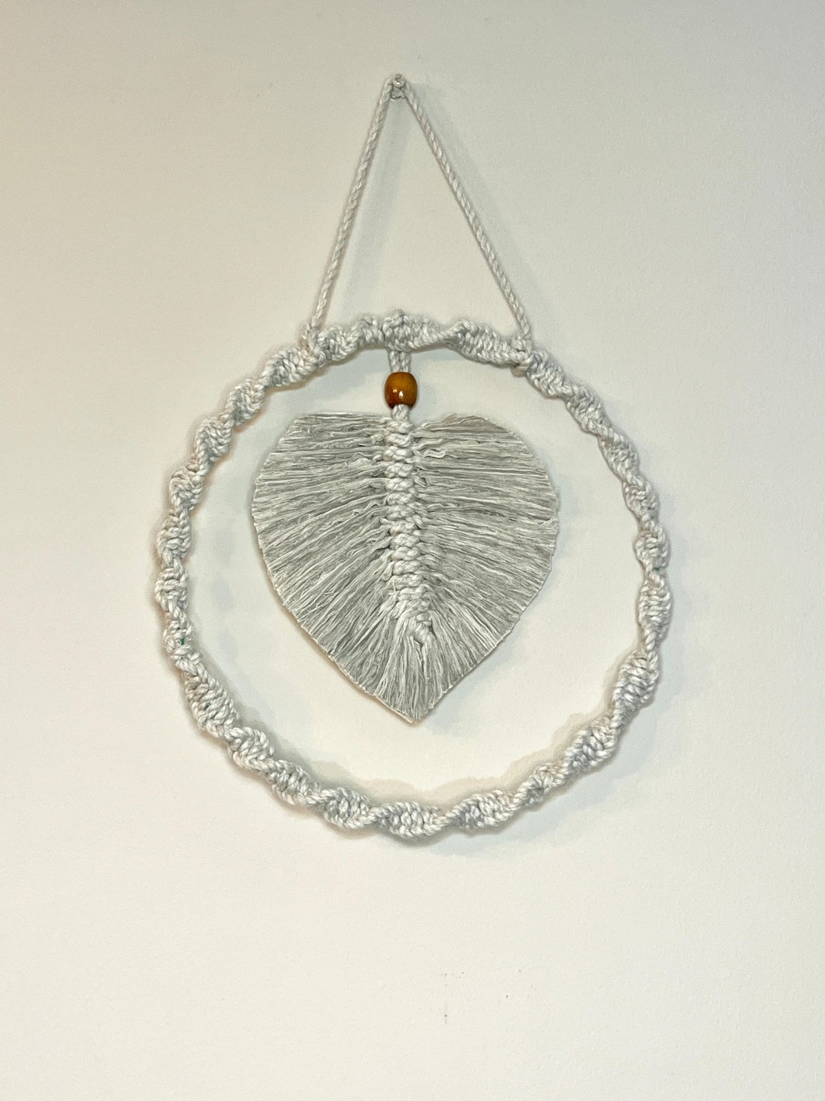 طاره مصنوعه من الخيط الرصاصي المجدول و في الوسط ريشه صغيره