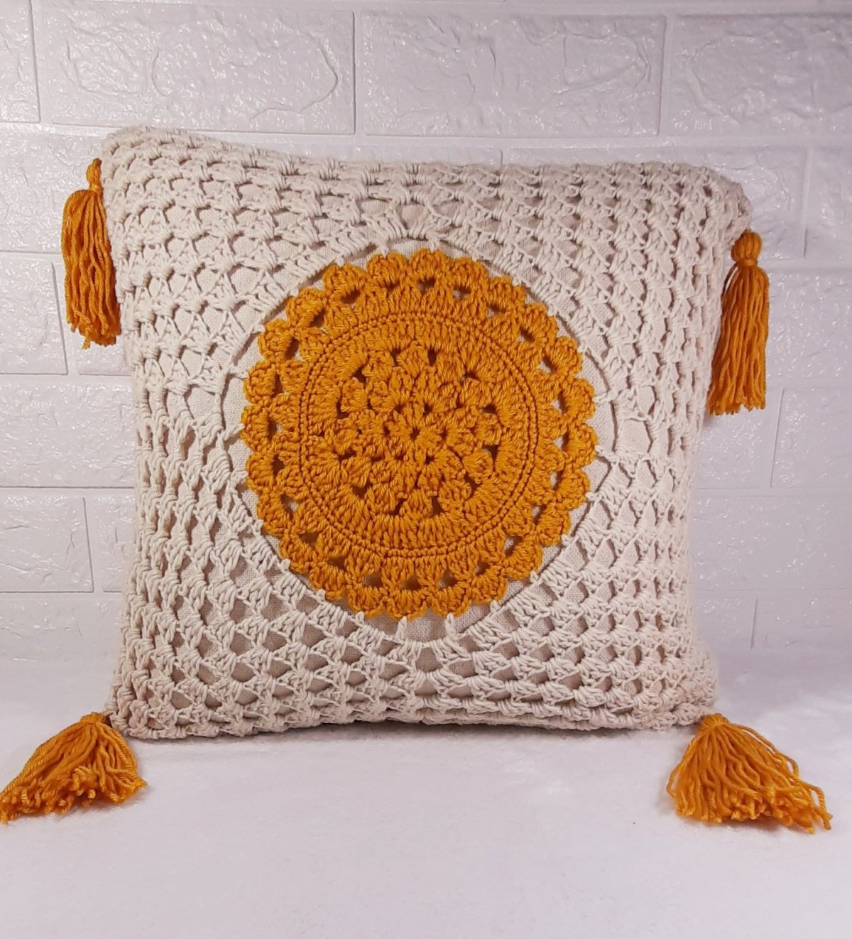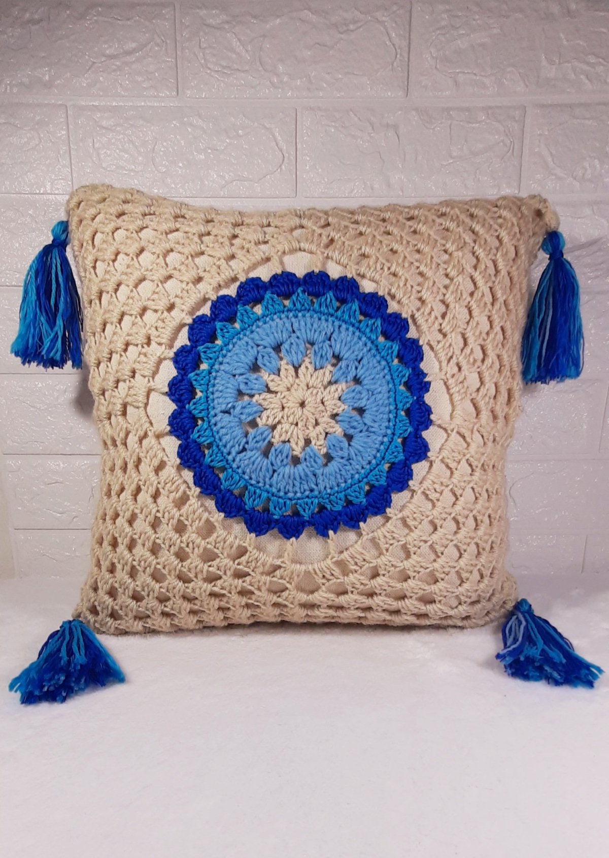 الكوشن مشغول بخيوط جودة عالية ومتاح تنفيذ الوان مختلفة حسب الطلب مقاسة ٤٠ سم ×٤٠ سم