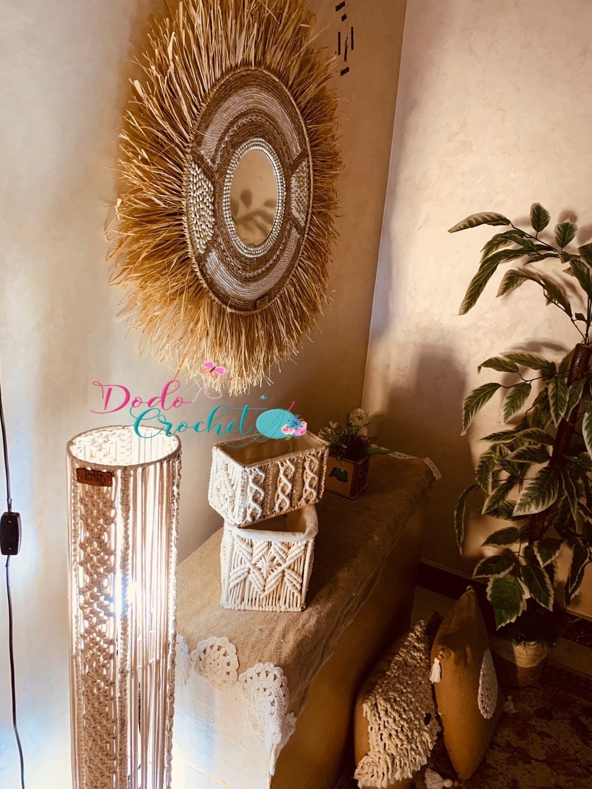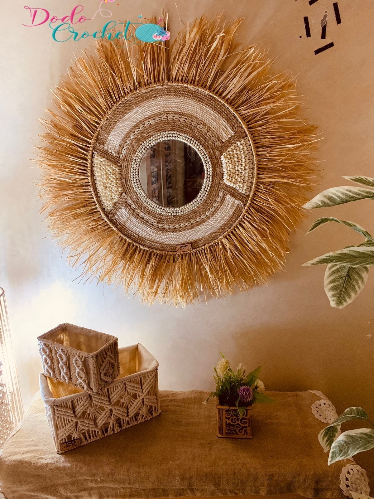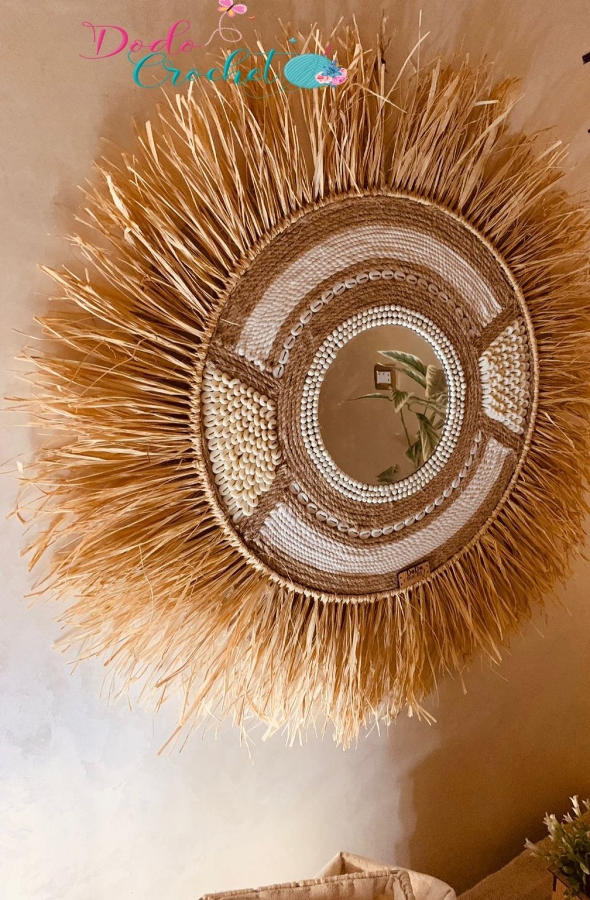 مرايه ديكور مصنوعه من خيوط الرافيا القش وخيط الخيش والصدف مقاسها كبير جدا 100*100سم تصميم مميز وشيك جدا