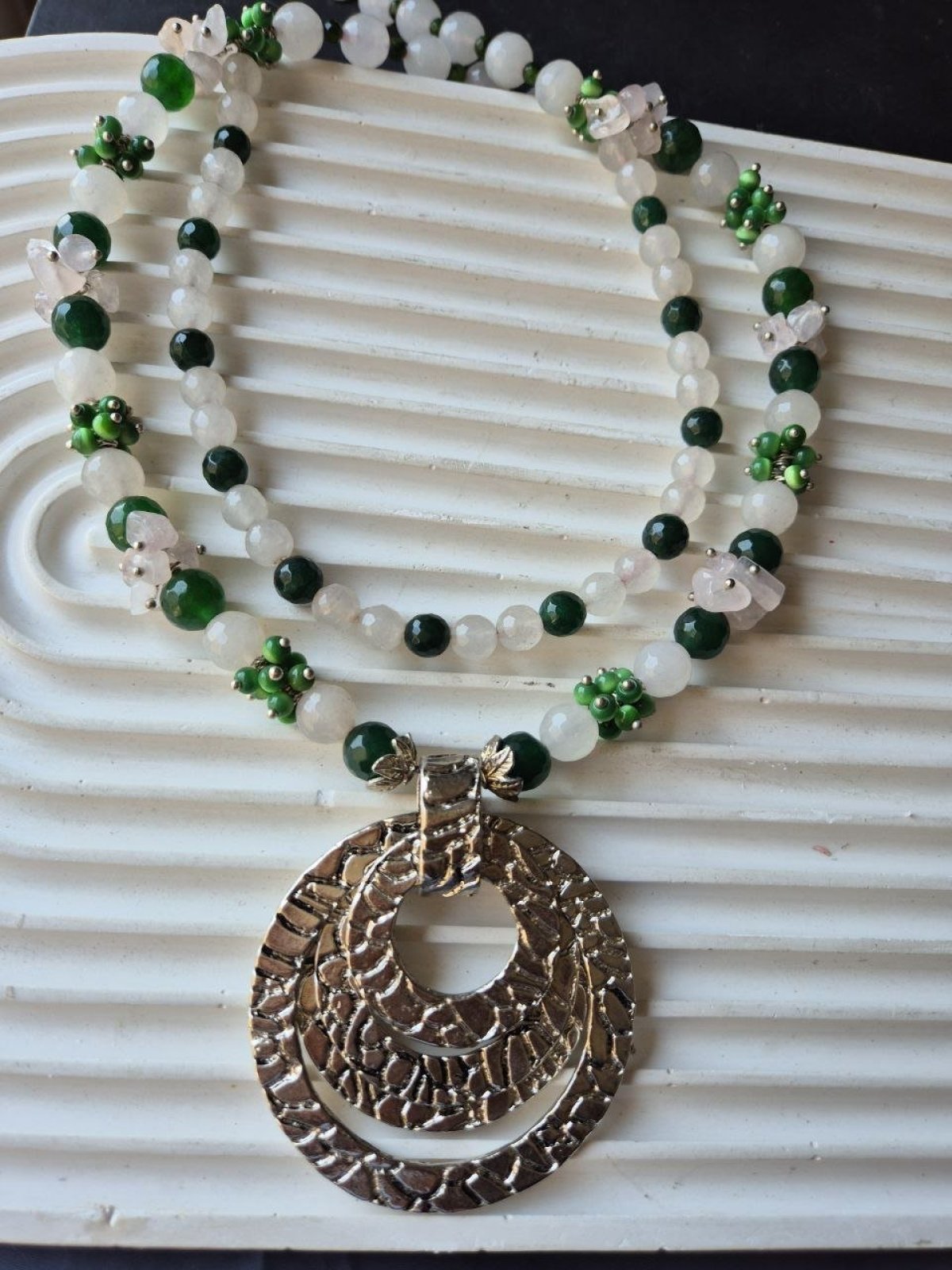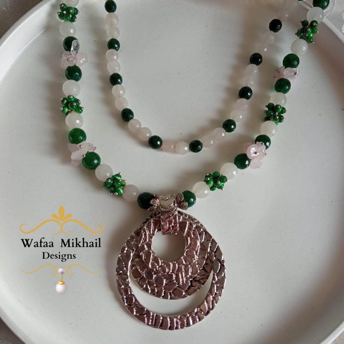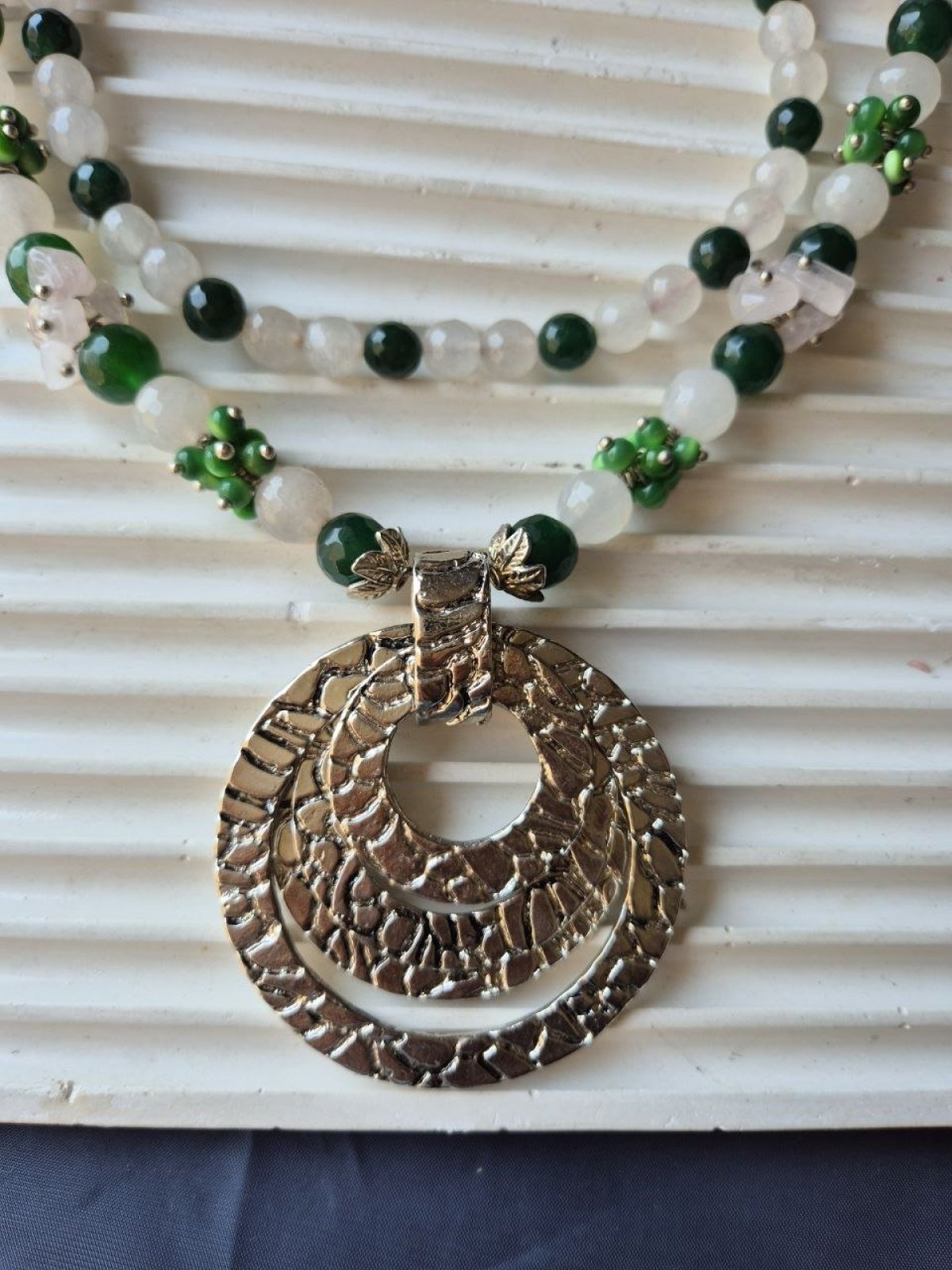 كوليه من حجر العقيق و حجر كات آى و دلاية معدن مطلية بالنيكل