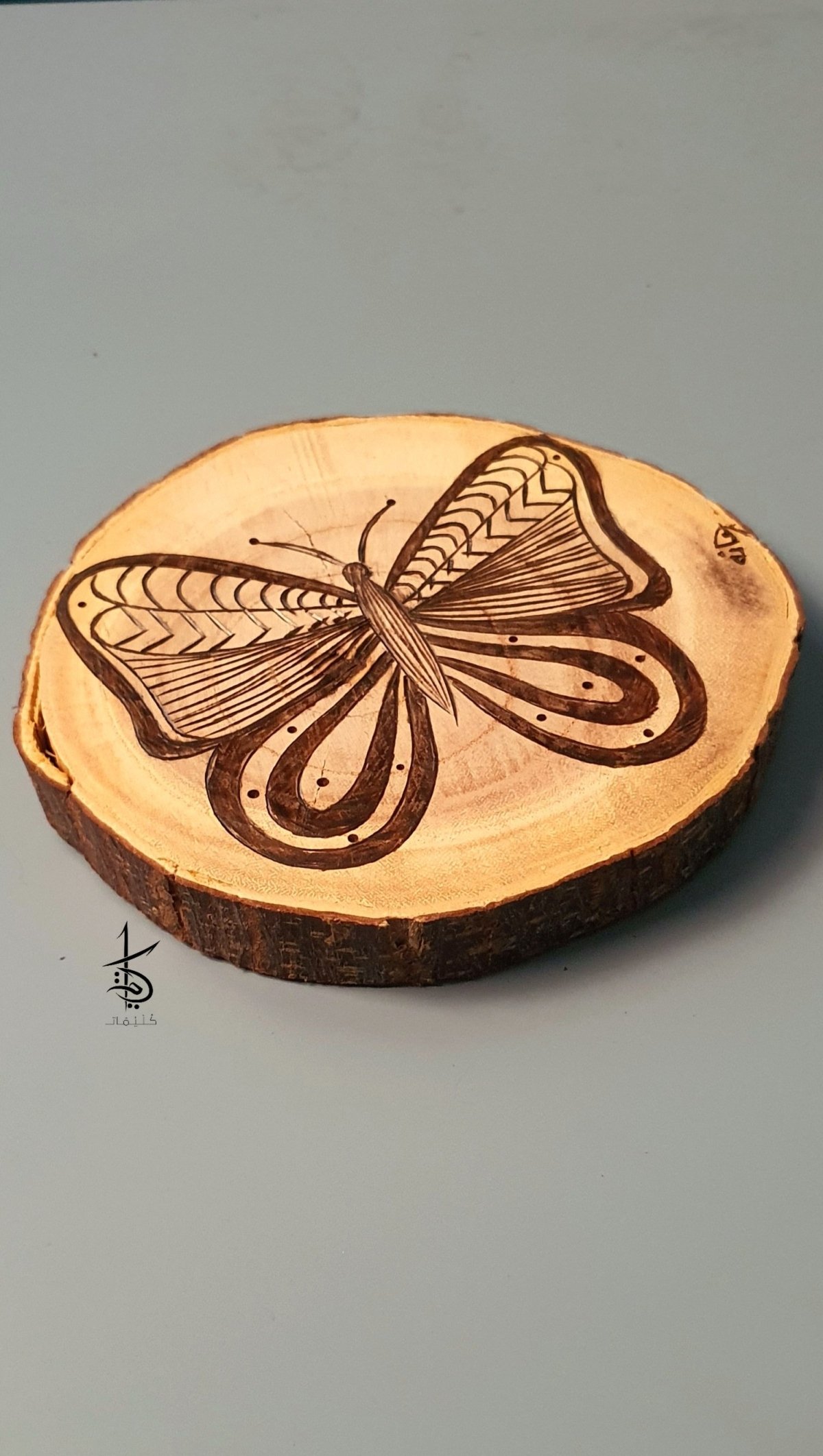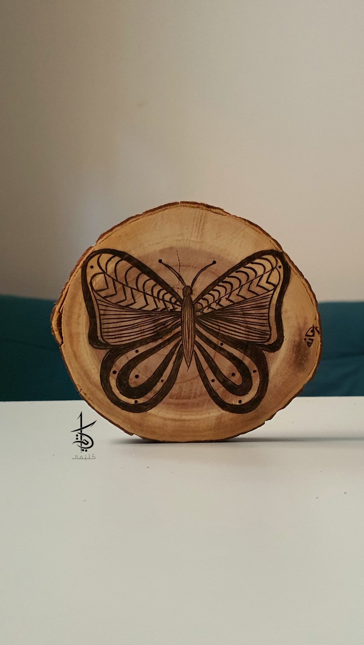 قطعة من جذع شجر بتصميم فريد من نوعه، نفَّذناه بفن الحرق اليدوي على الخشب، يمكن وضعها على طاولة أو مكتب، أو تعليقها على الحائط، لإضافة لمسة فنية دافئة إلى غرفتك أو مكتبك.