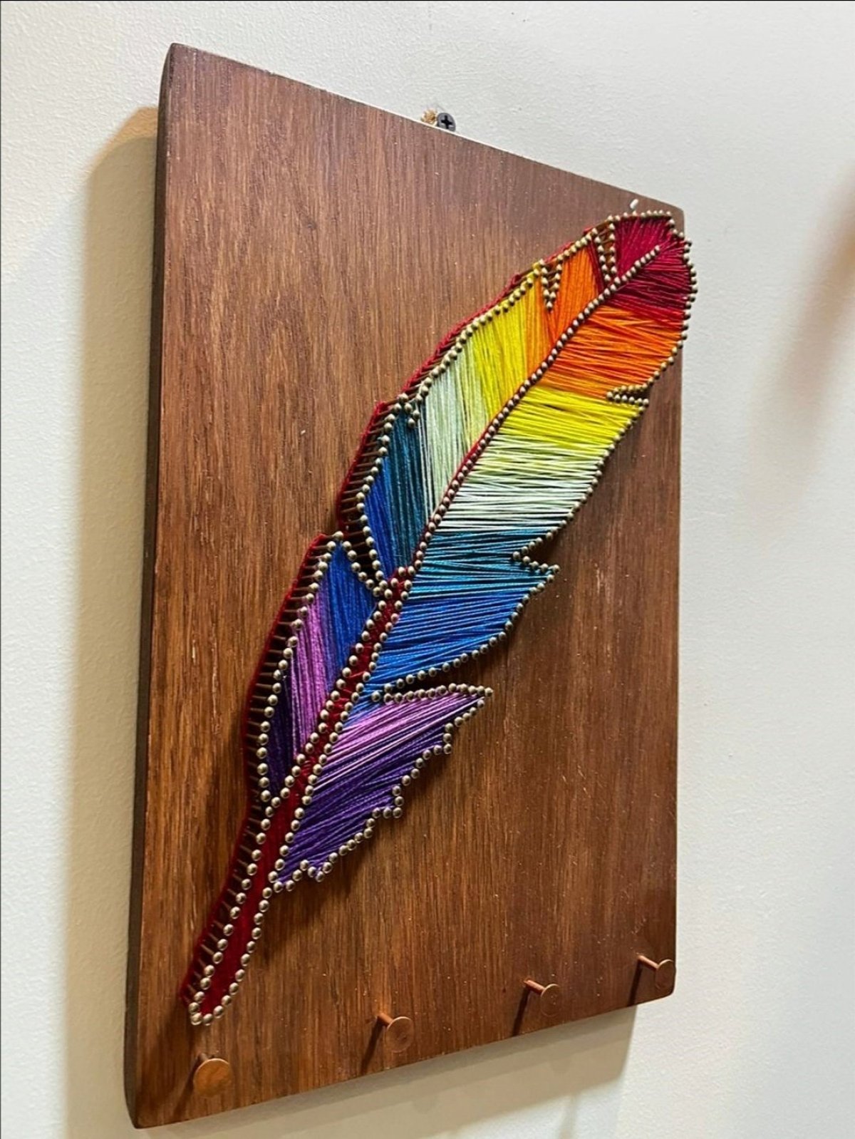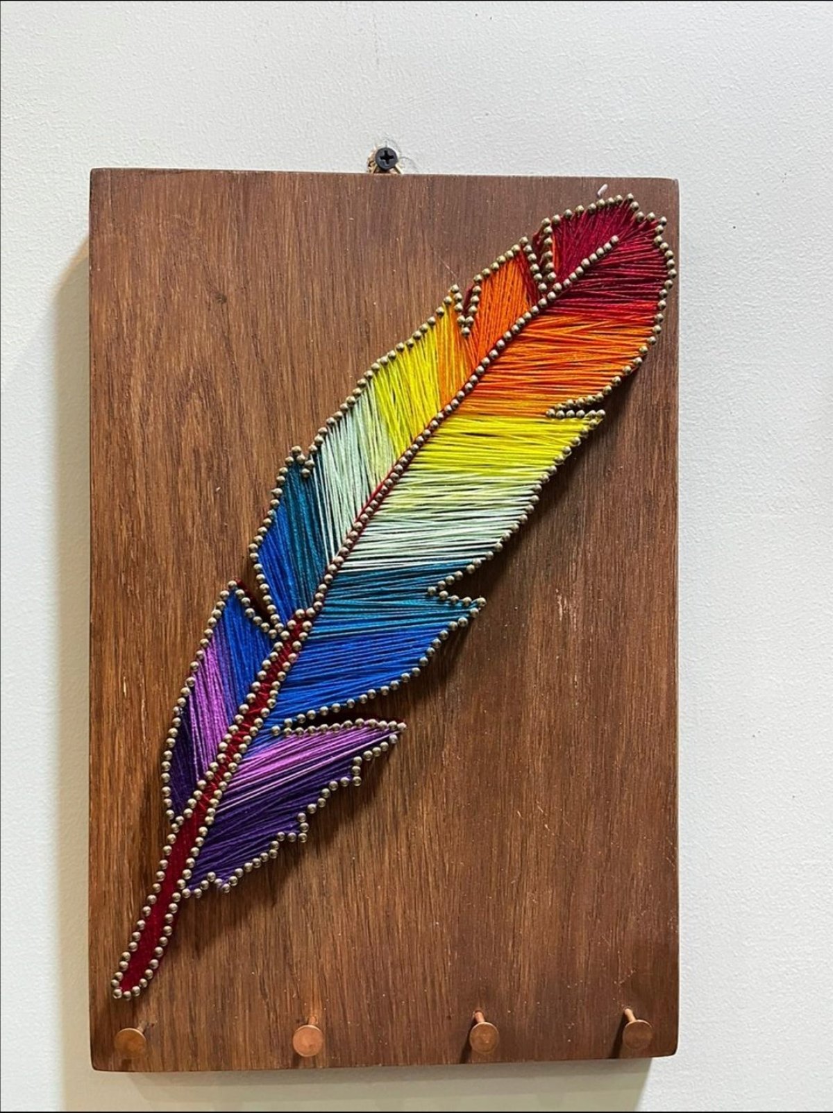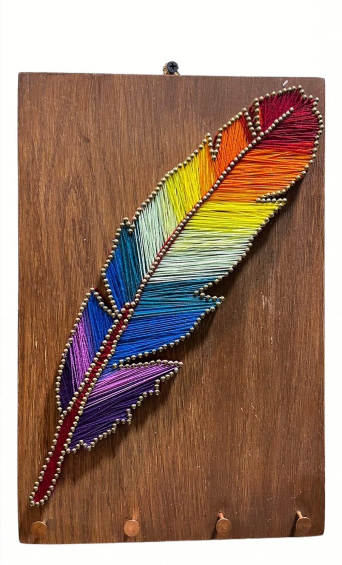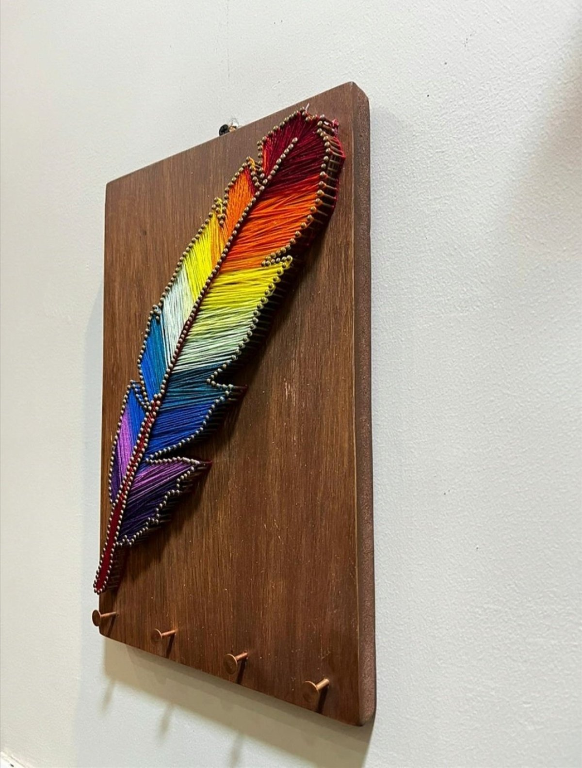 شماعة او علاقة مفاتيح مصنوعة عن طريق فن الخيط والمسمار