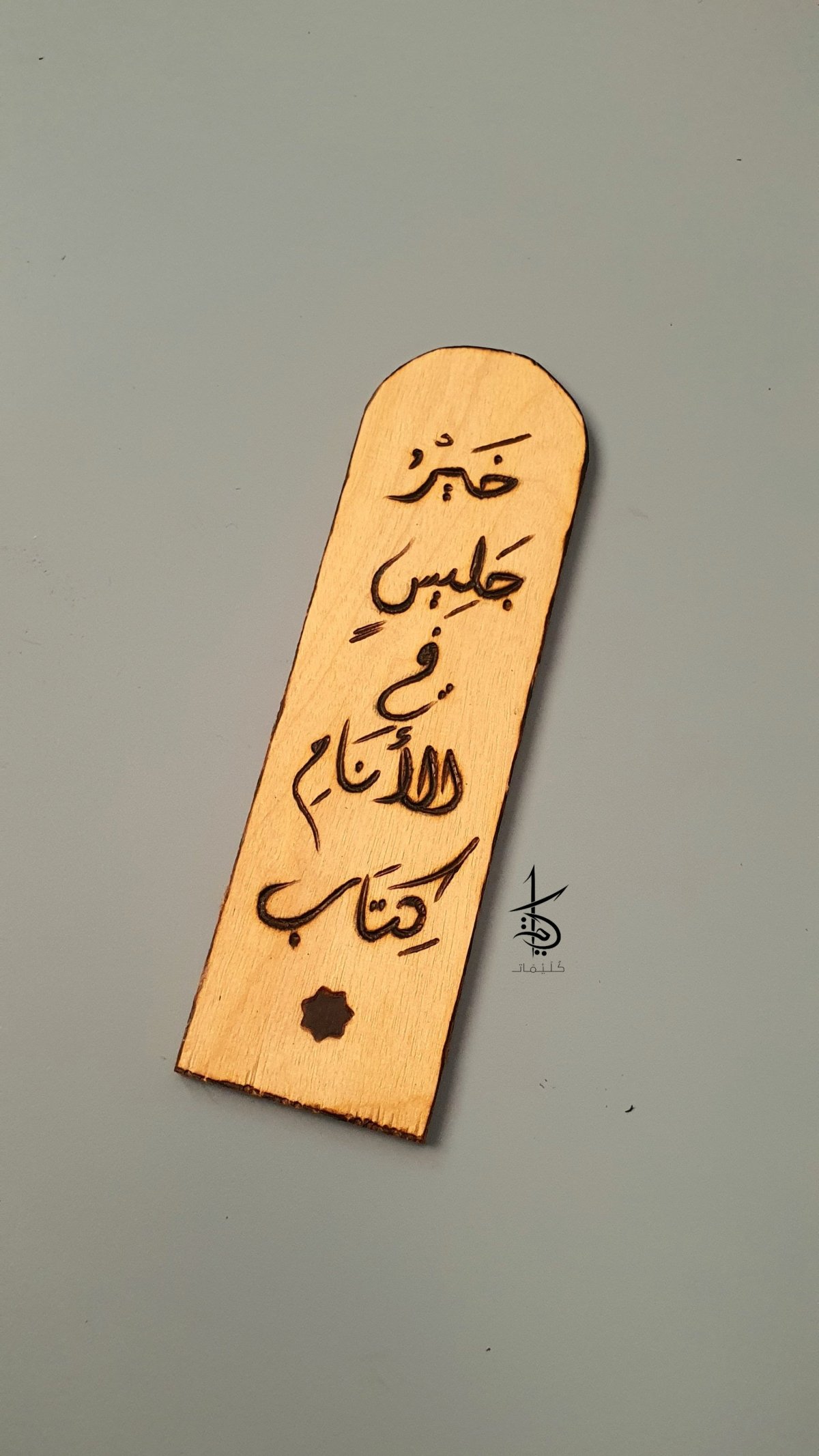 فاصل كتب خشب بتصميم فريد نفَّذناه بفن الحرق اليدوي على الخشب، لتجربة قراءة ممتعة!