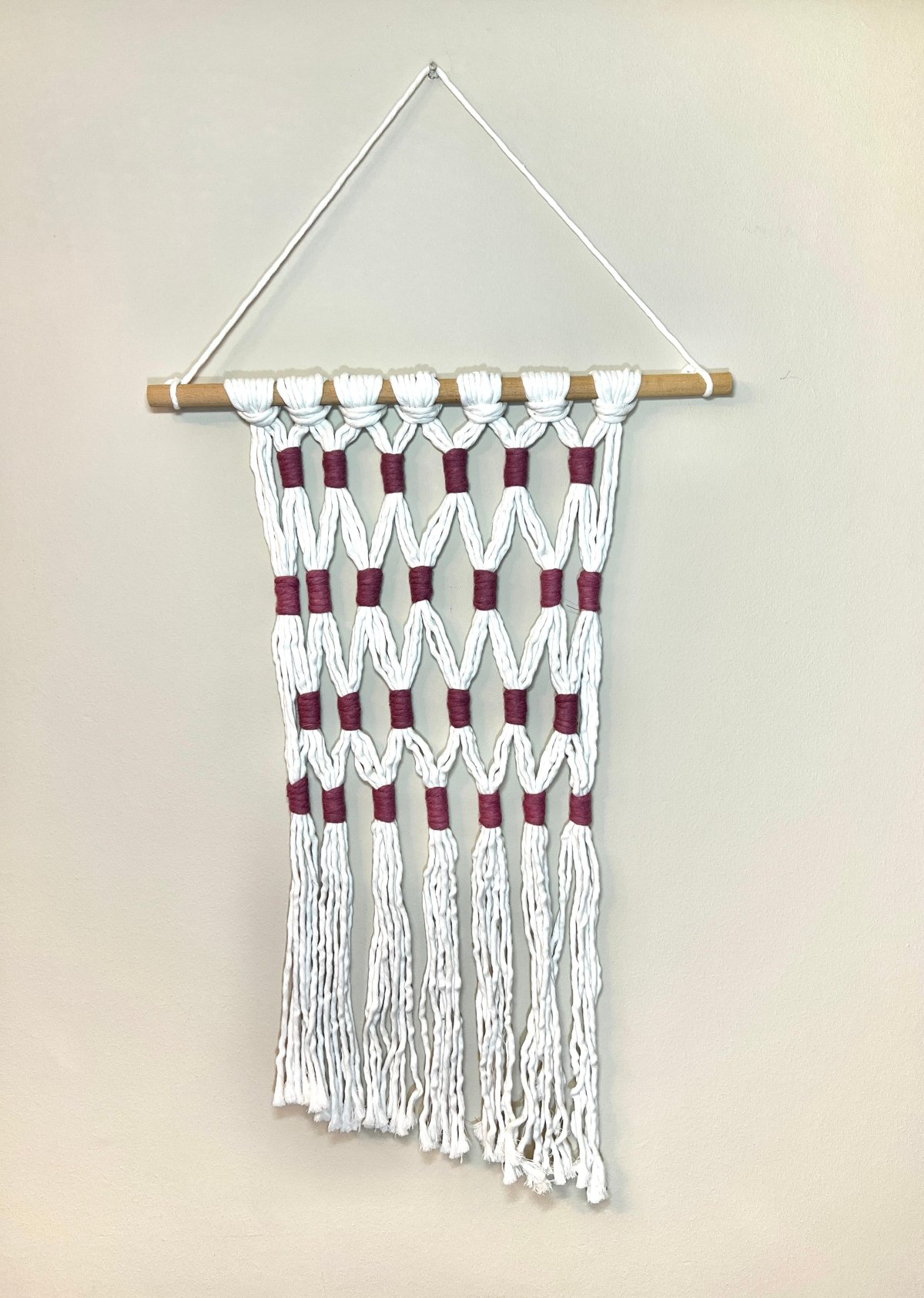 تعليقه نبيتي و ابيض مصنوعه من خيط محلول