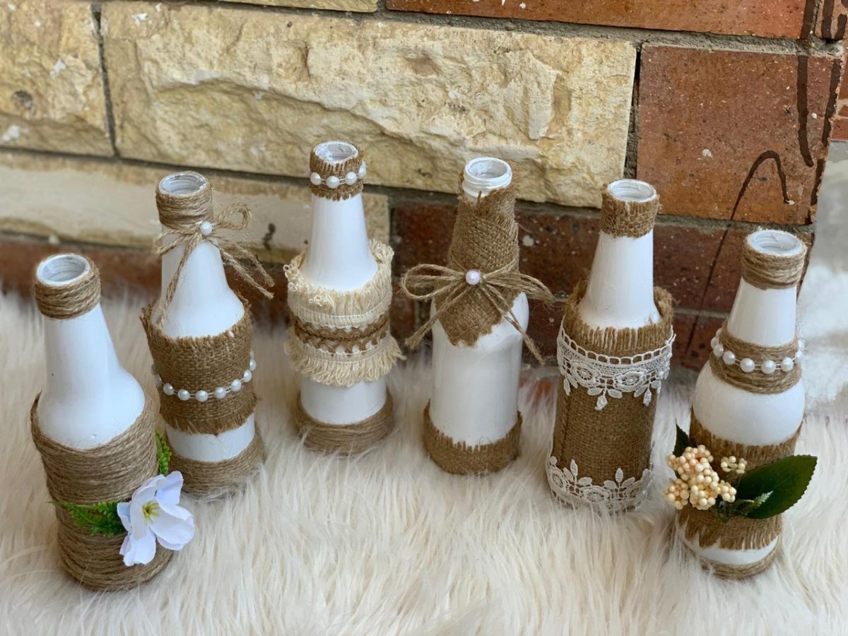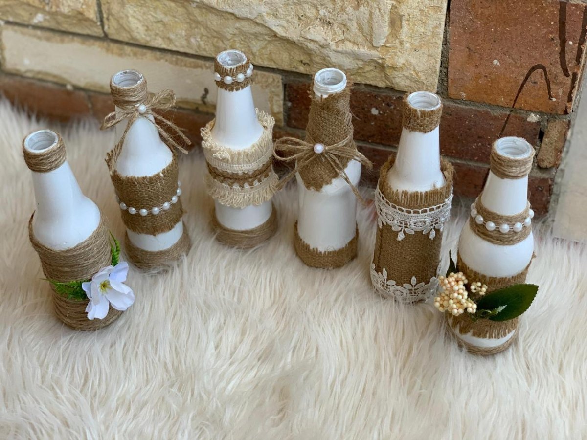 مجموعة جميلة واشكالها مختلفه من الزجاجات الديكوريه البيضا.. توضع في صينية ديكوريه او على رف ديكوري.. إستايل جديد من الديكورات.. كيوت وسمبل