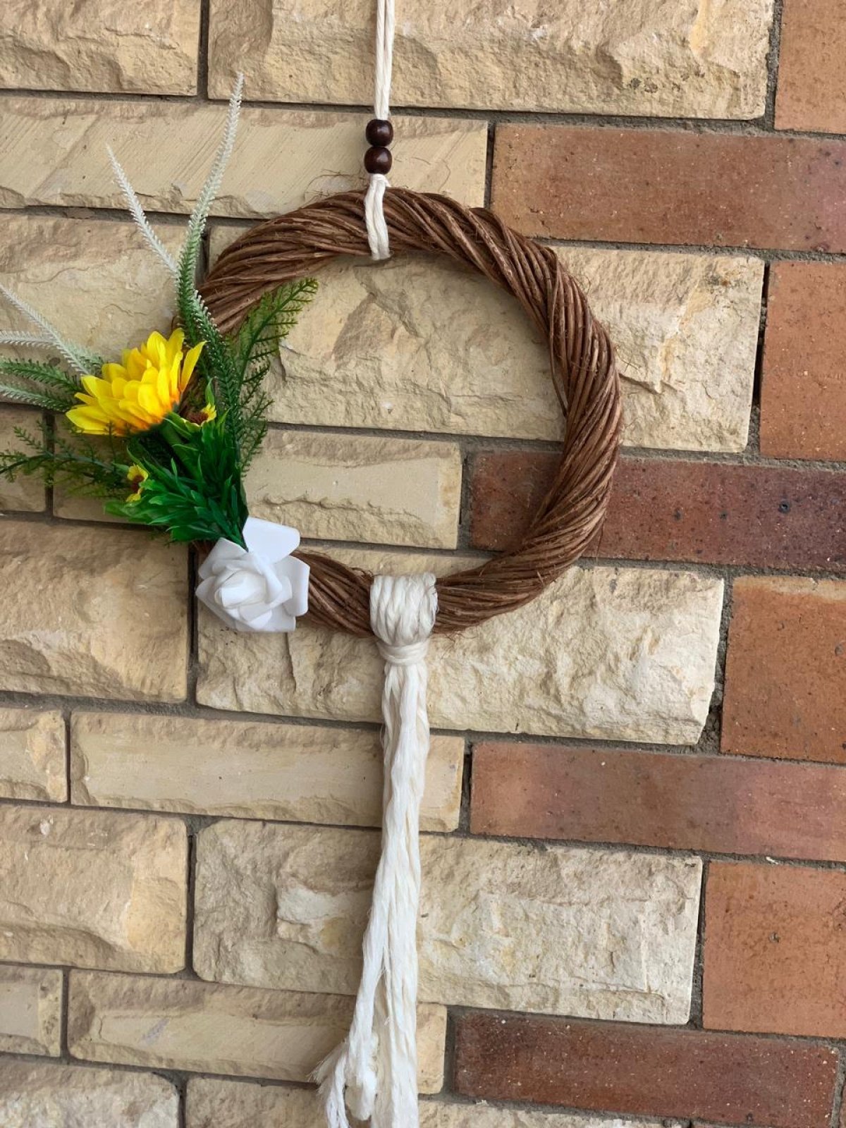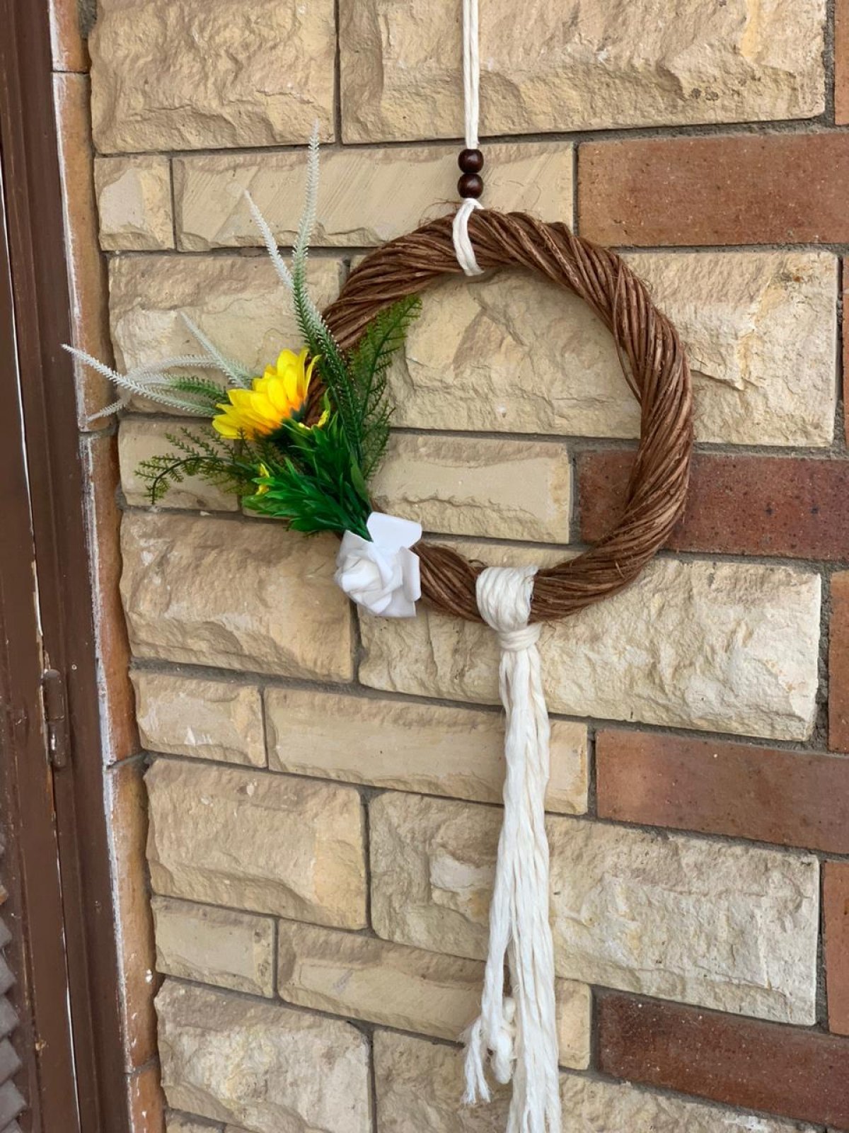 تعليقه غير معتاده في شكلها.. طاره تمر حنه من الطارات الطبيعيه.. ومجمله بأشيك أشكال الورود وهو عباد الشمس.. زهرة جميلة ومميزة في لونها وشكلها بتعطي شكل زاهي ومبهج للمكان