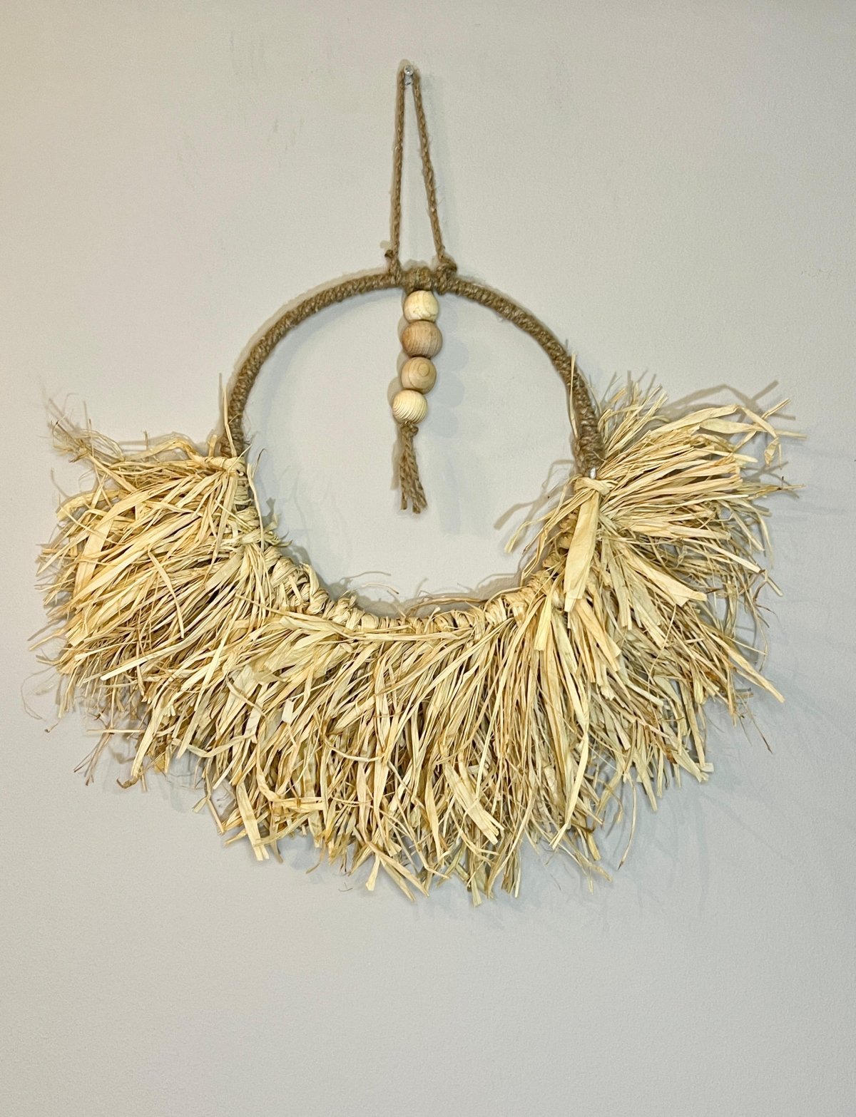 طاره قطرها ٢٦سم مصنوعه من خيط الخيش و خيط الرافيا و خرز خشب