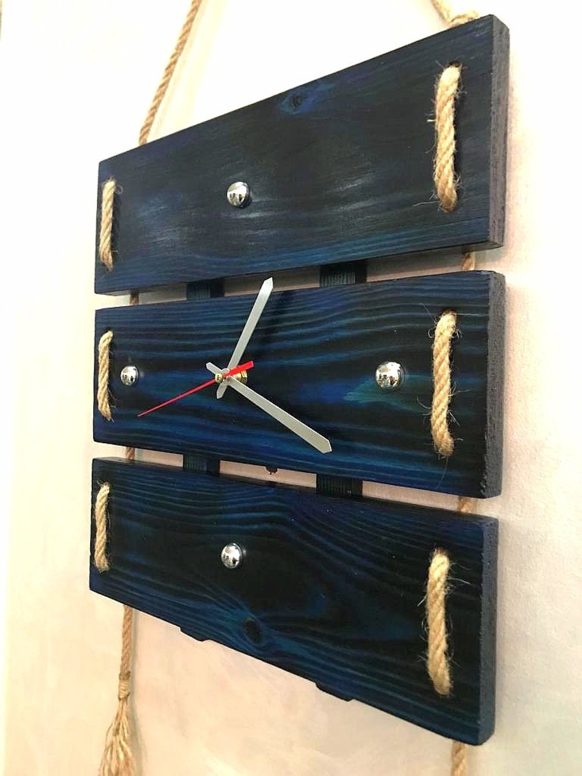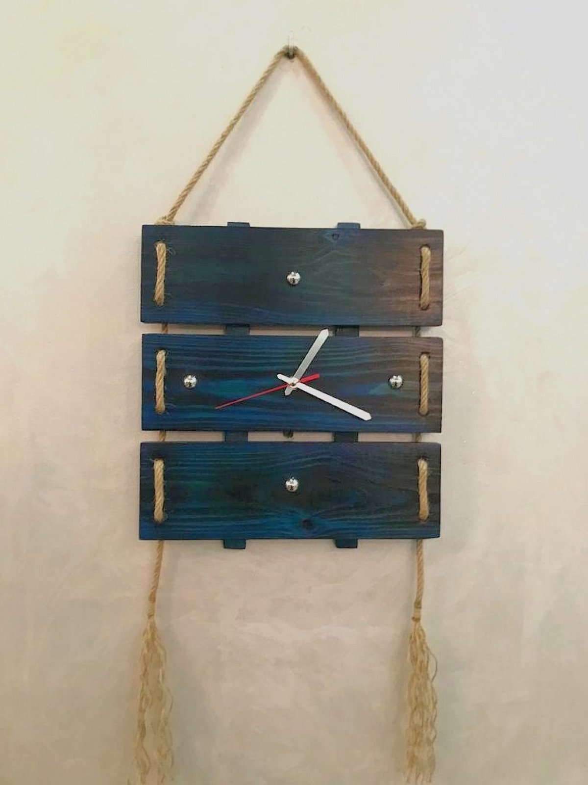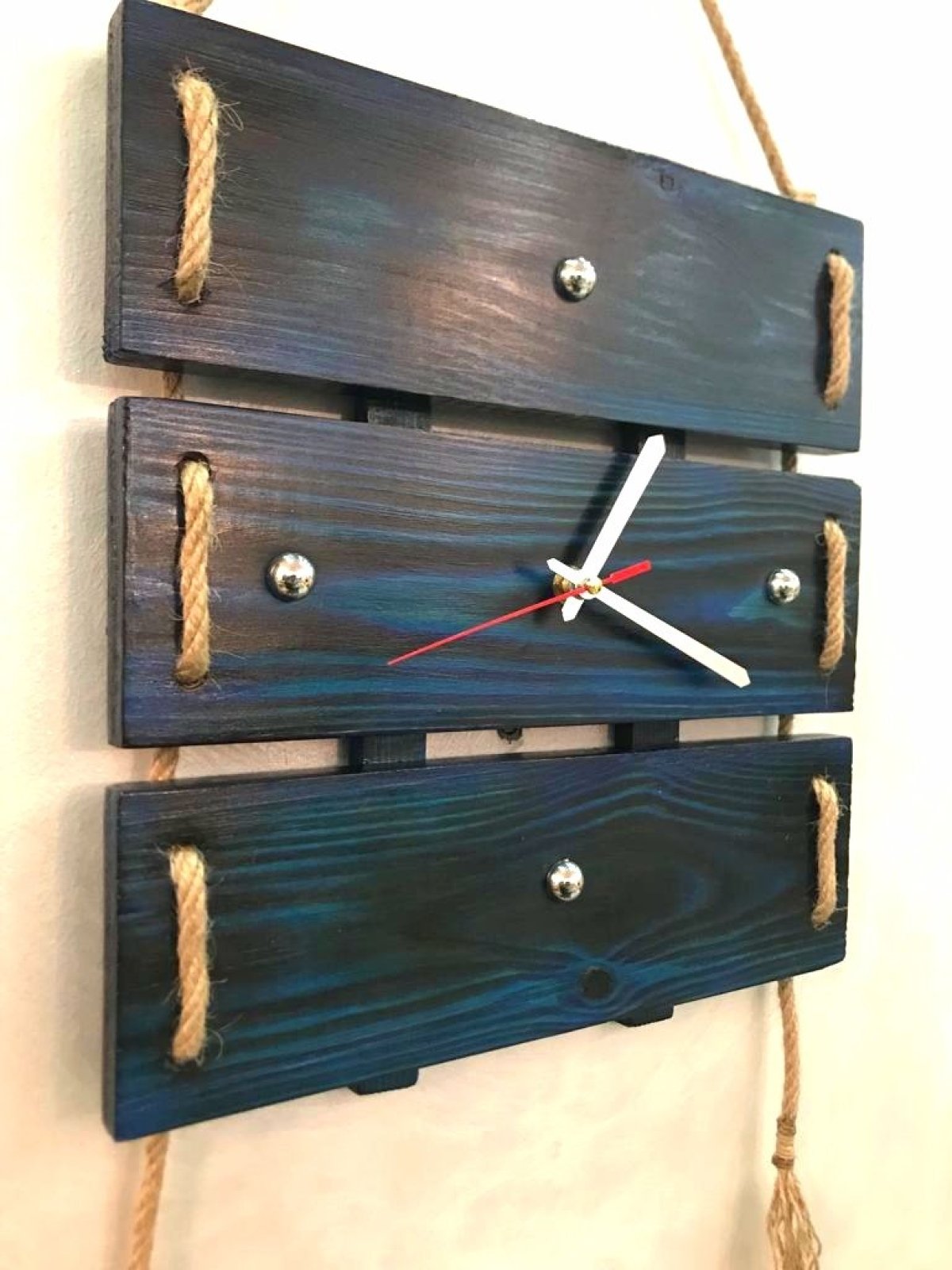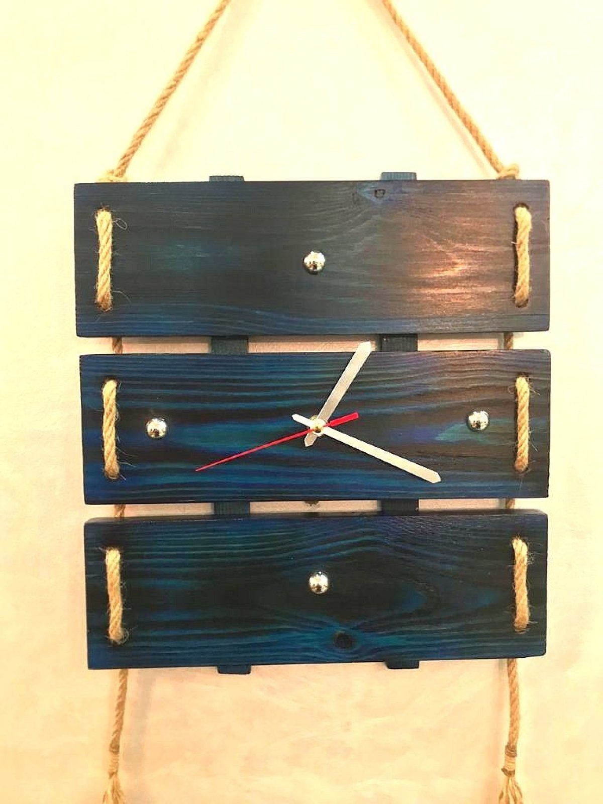 ساعة حائط خشب صناعة يدوية متقنة من خشب سويد طبيعي لون ازرق