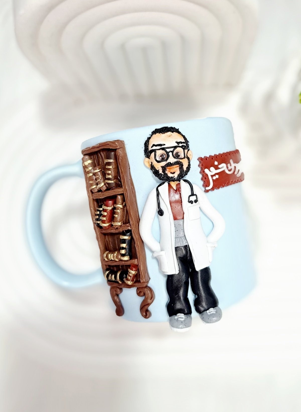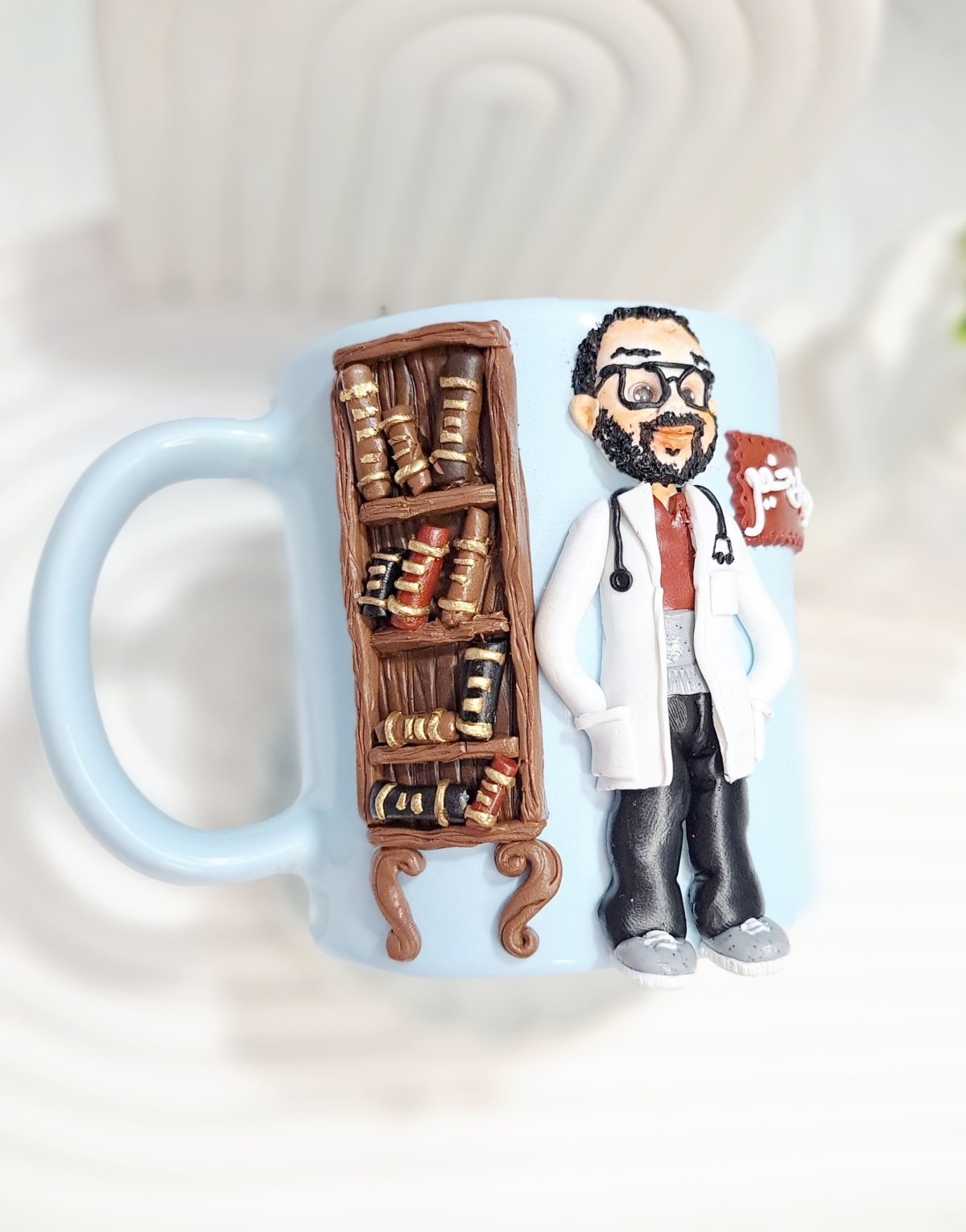 المج خامته بورسلين حجمه ٢٥٠مل مصنوع عليه يدوياً من الصلصال الحراري أو البوليمر كلاي طول ١١سم أو ١٠سم