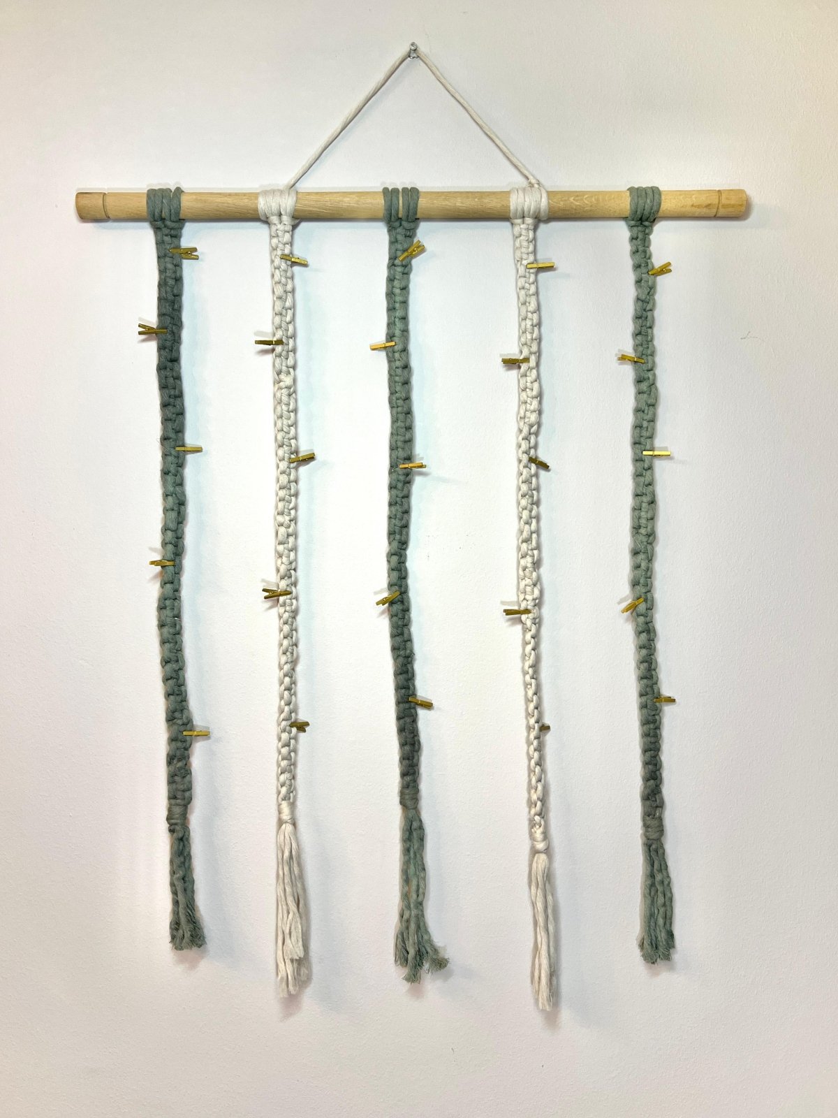 تعليقه صور و ذكريات مصنوعه من خيط المحلول و المشابك و طول العصا ٦٠ سم