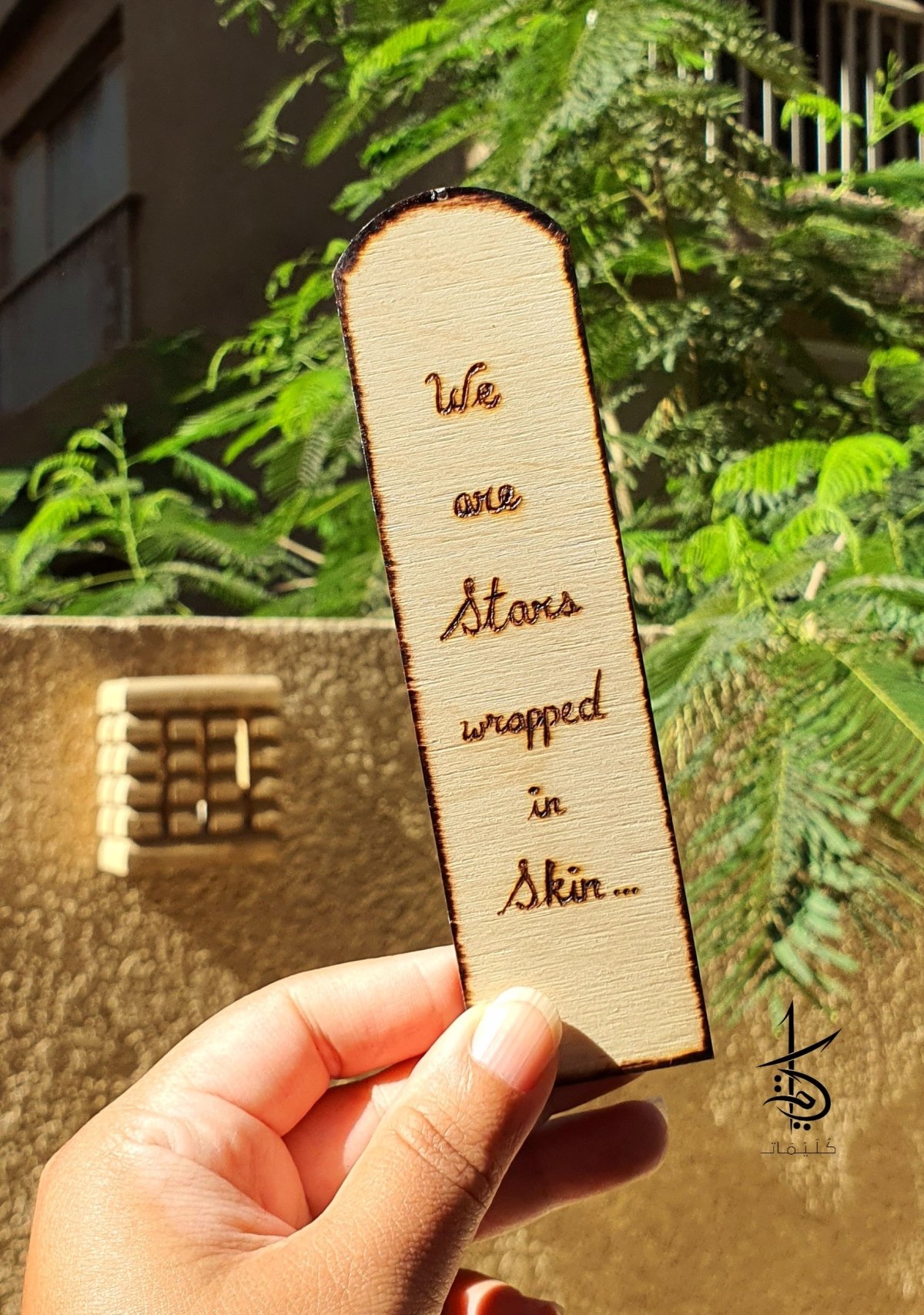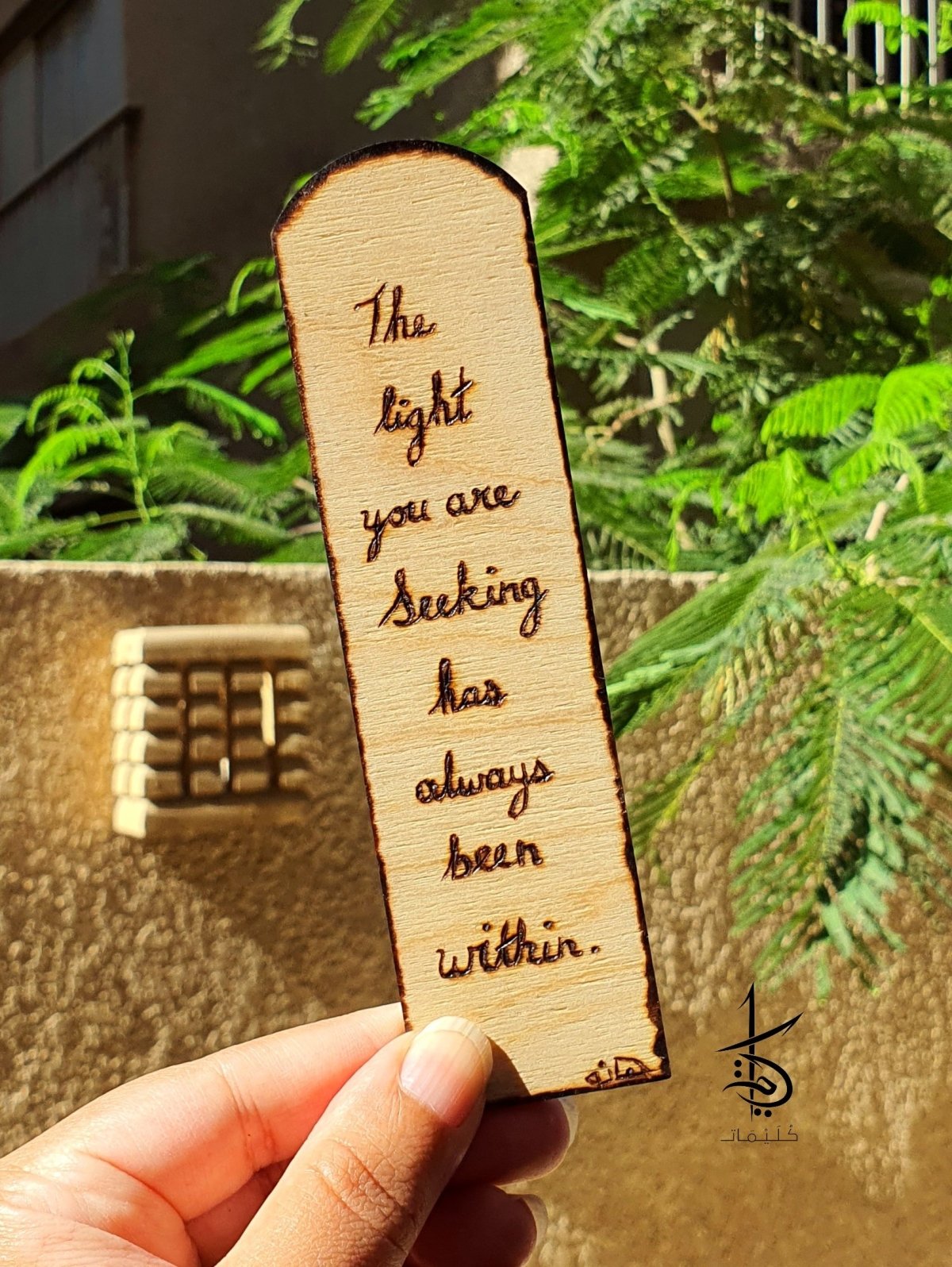 فاصل كتب خشب وجهين، بتصميم فريد نفَّذناه بفن الحرق اليدوي على الخشب، لتجربة قراءة ممتعة!
