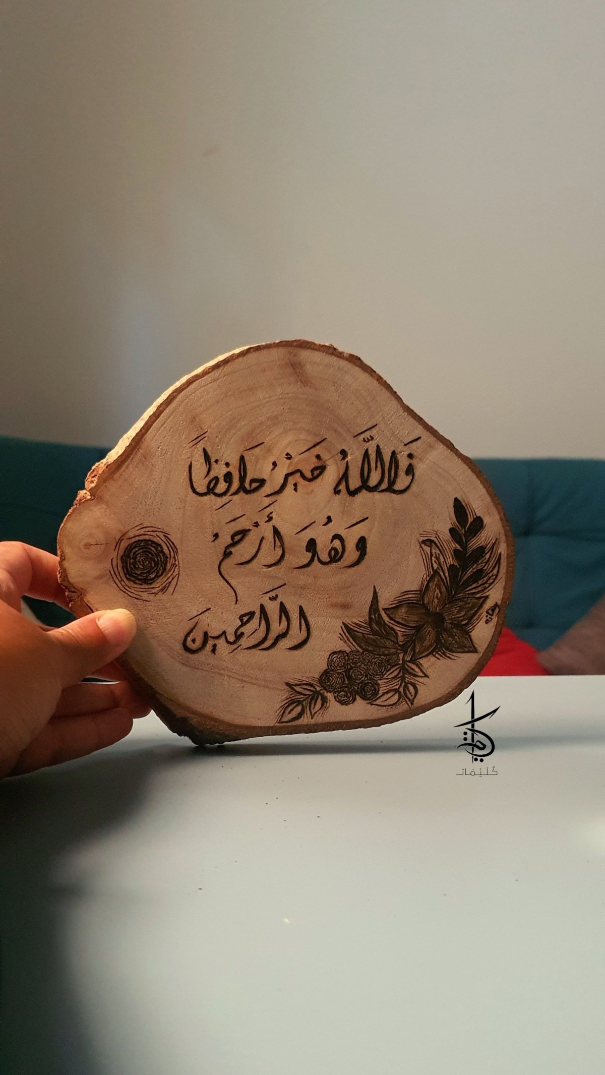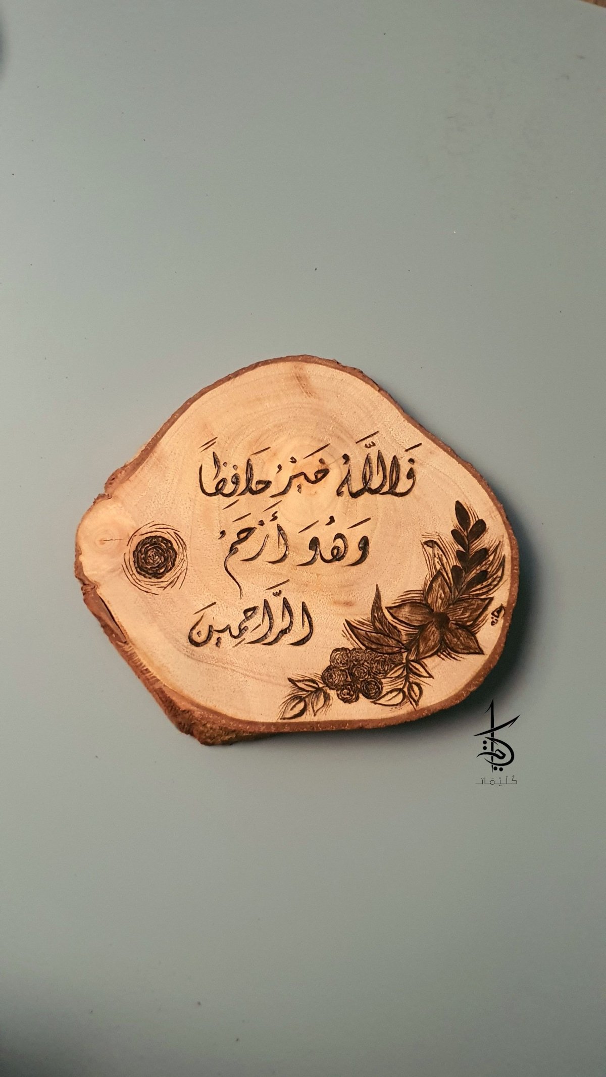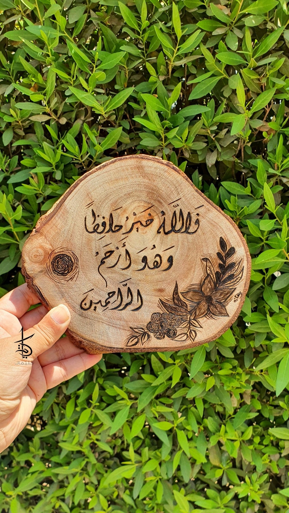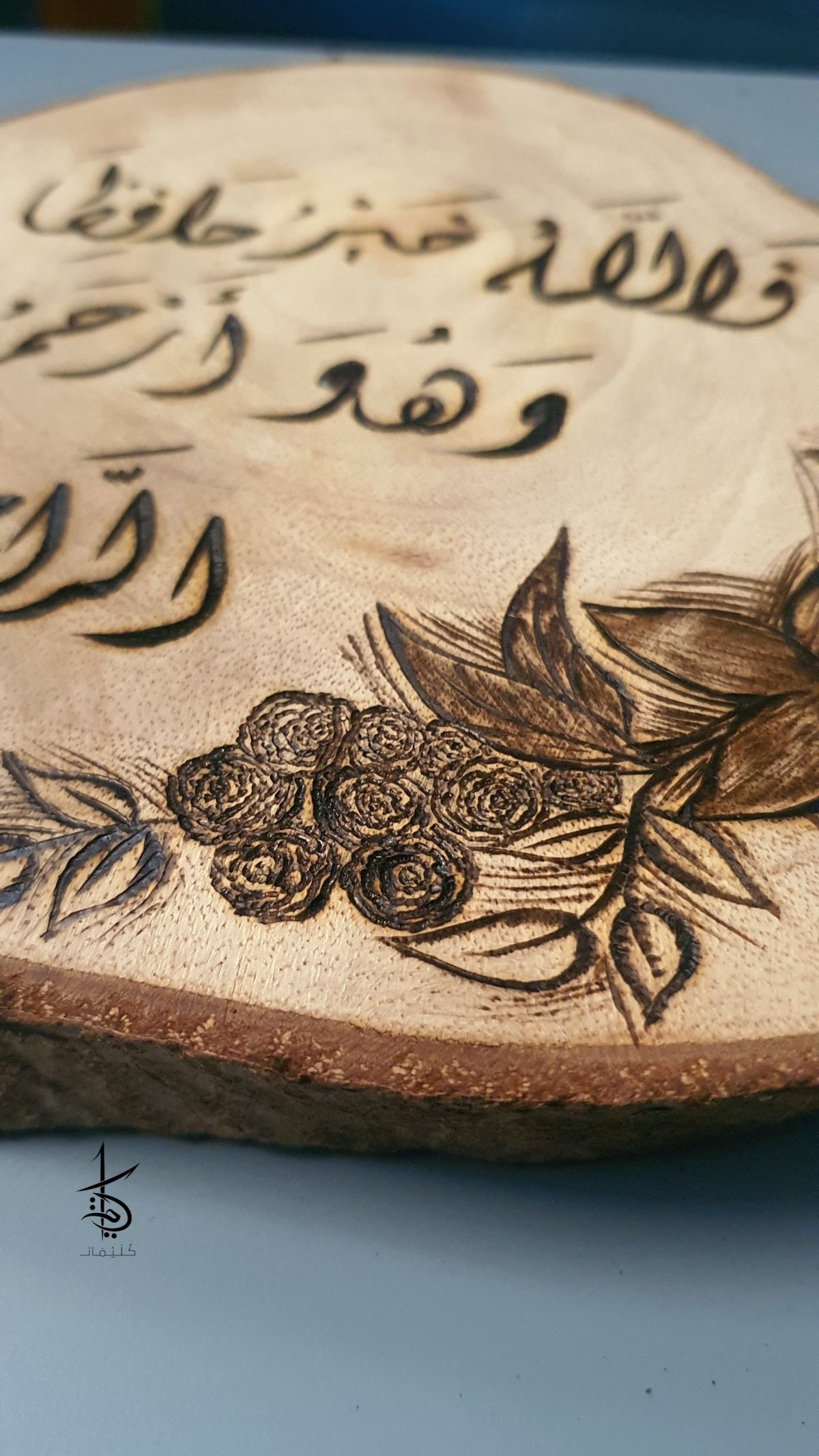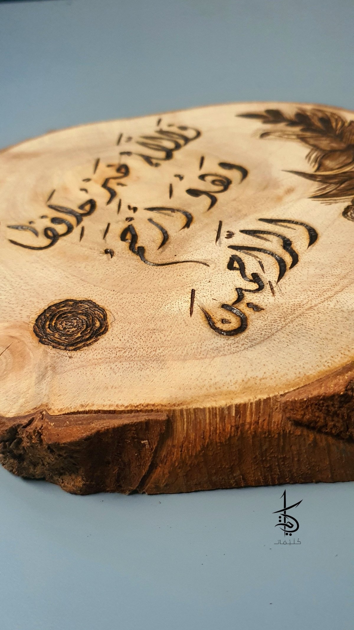 قطعة من جذع شجر بتصميم فريد من نوعه، نفَّذناه بفن الحرق اليدوي على الخشب، يمكن وضعها على طاولة أو مكتب، أو تعليقها على الحائط، لإضافة لمسة فنية دافئة إلى غرفتك أو مكتبك.