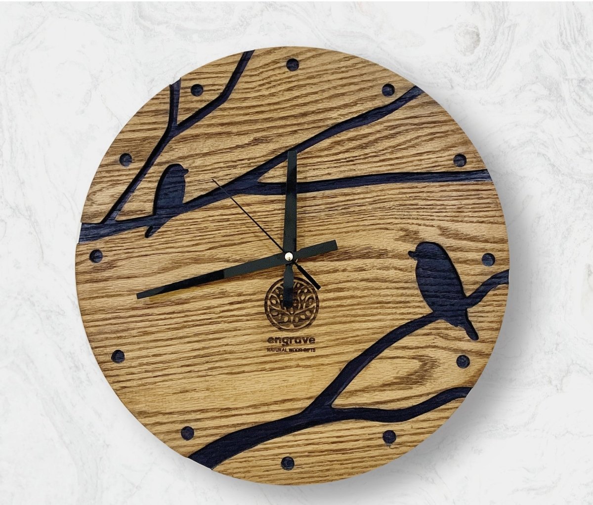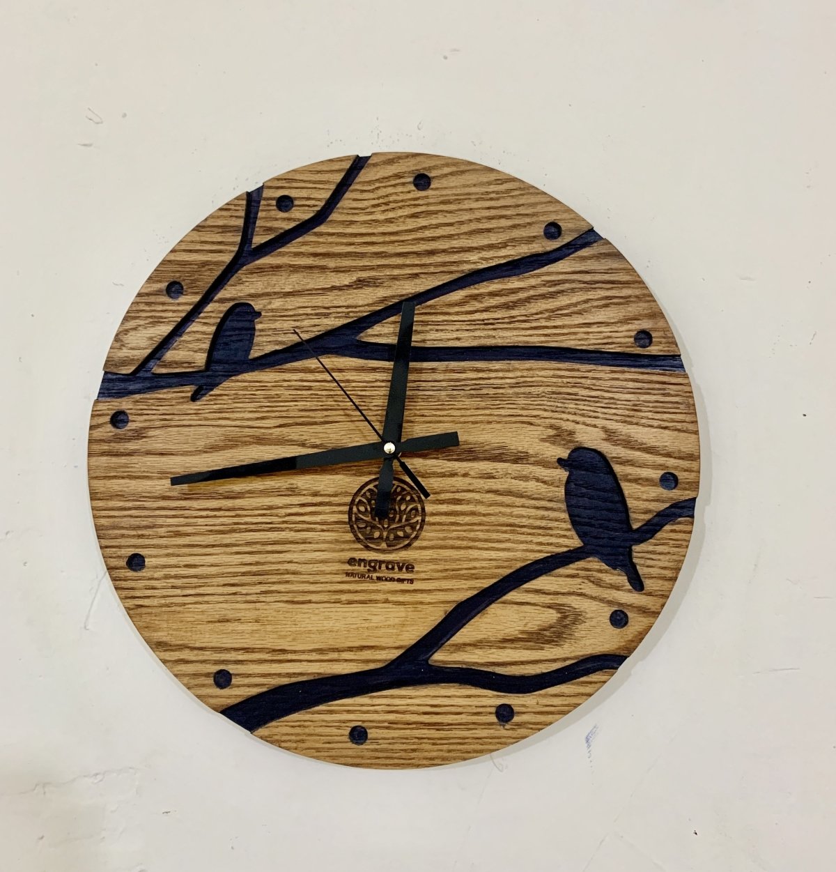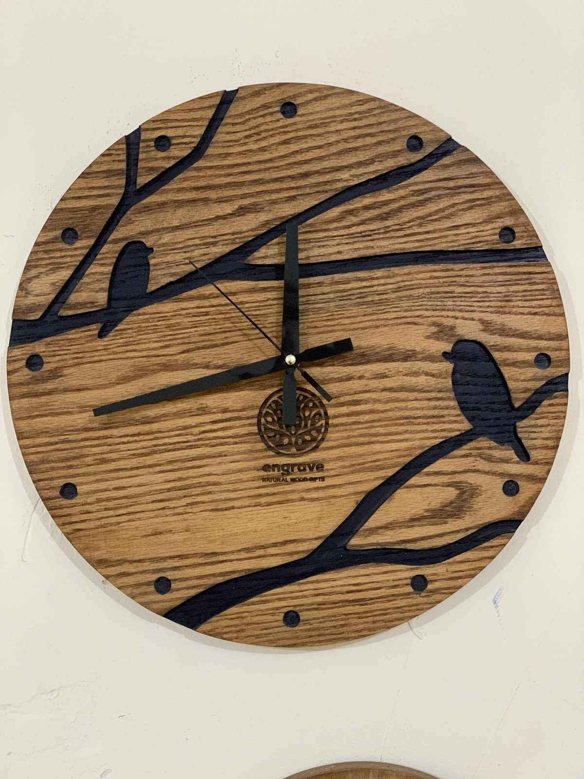 ساعة حائط من خشب الأرو الطبيعي المسيف مقاس 40 سم - حفر cnc - صبغات ودهانات مستوردة + ماكينات عقارب تايواني