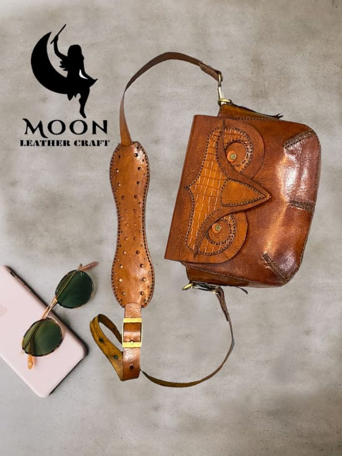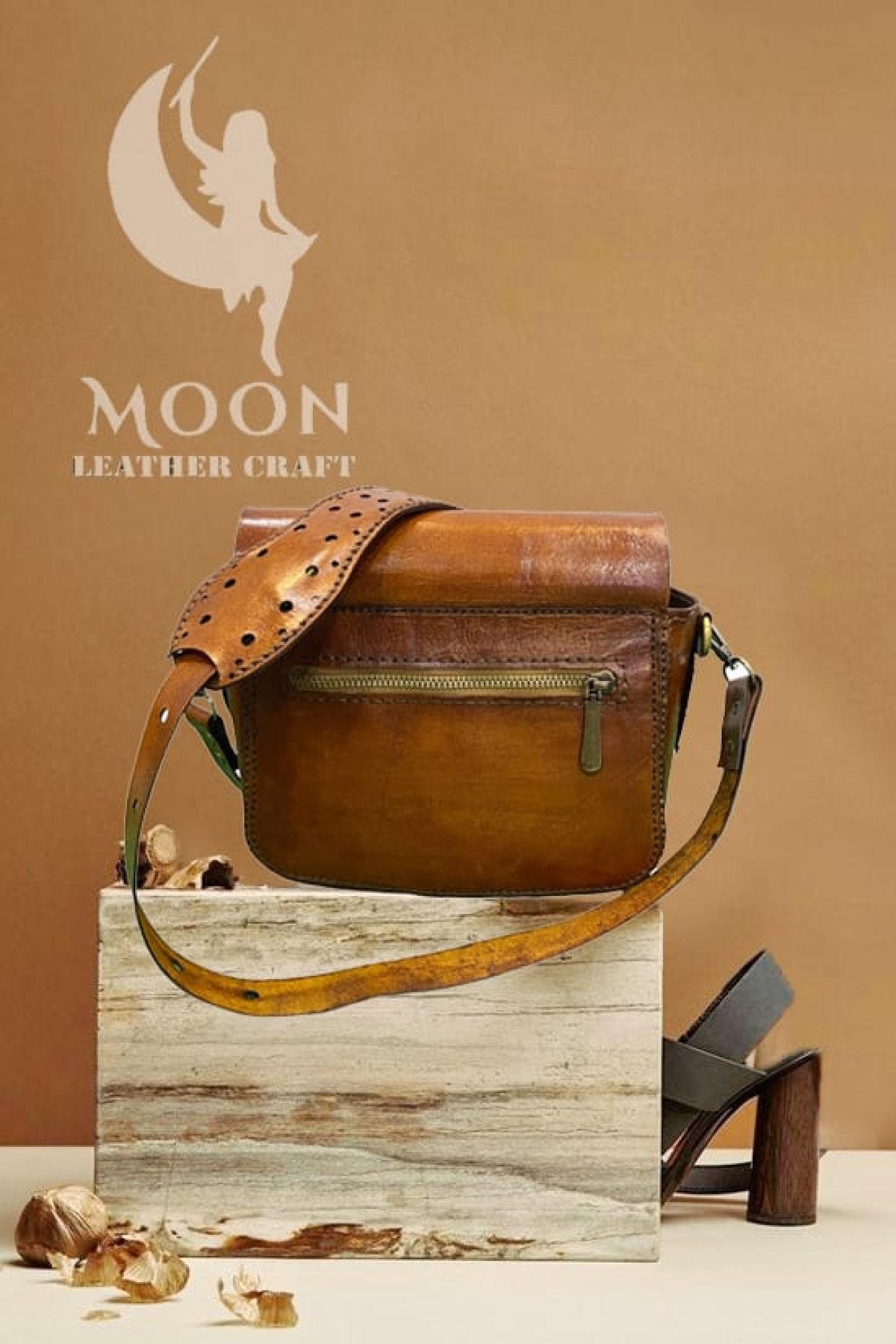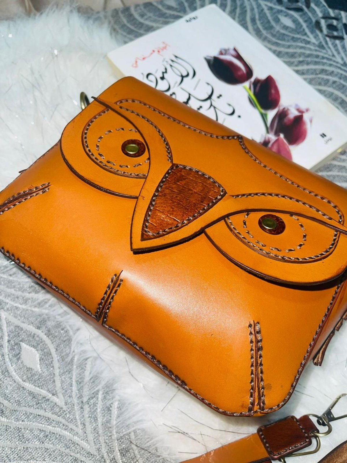 شنطه حريمي كروس شكل بومبه هاند ميد جيب خارجي مقاس 23&18جلد طبيعي