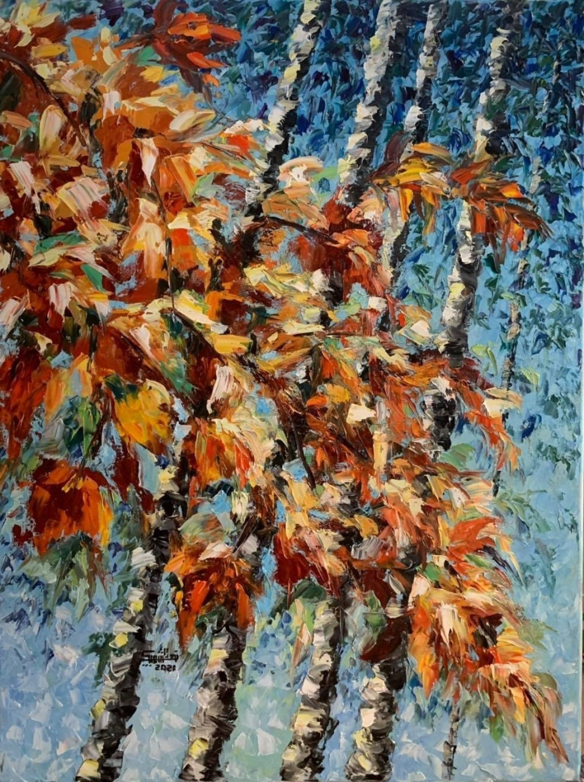 لوحة زيتية رسم يدوي على قماش مشدود الى اطار خشبي مقاس ٦٠*٨٠ سنتي