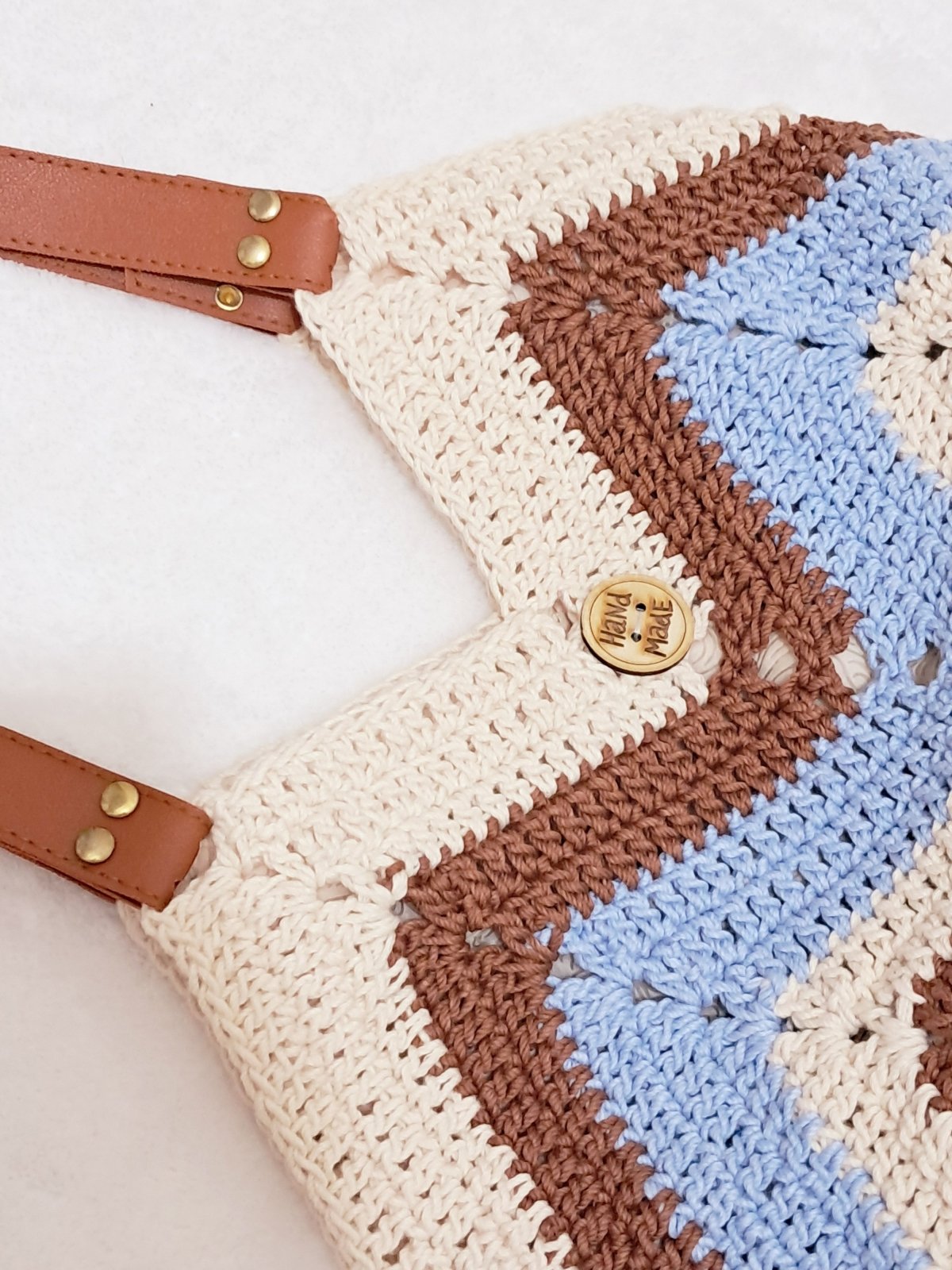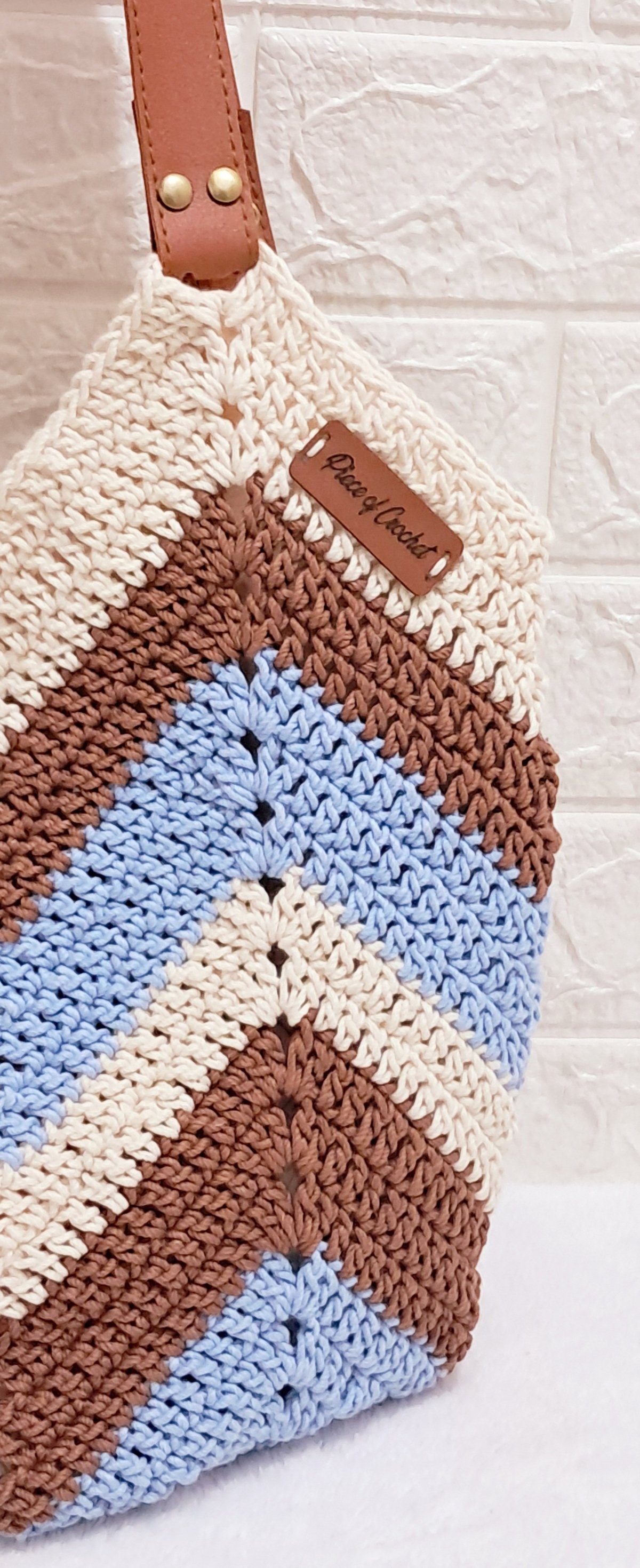 شنطة مشغولة بخيط قطن عالى الجودة ولها بطانة من نوع ممتاز ولها جيب داخلى ومتاح تنفيذ الوان مختلفة قاعدة الشنطة مربعة طول ضلع المربع ٢٥ سم وعمق الشنطة ٣٢ سم الشنطة ١٠٠% هاند ميد كروشية