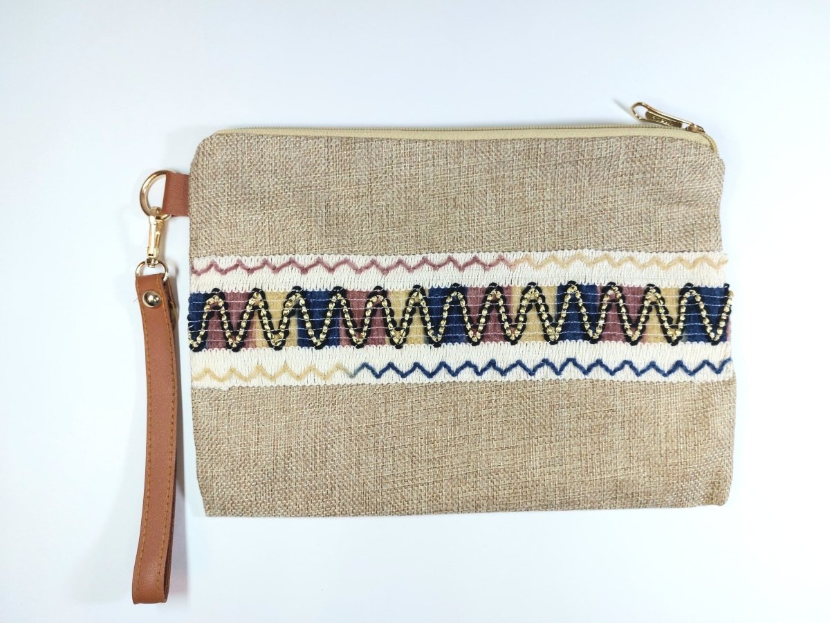 كلاتش كتان باترن . مبطن من الداخل. و سوسته و يده من الجانب مقاس الكلاتش ٢٧ عرض × ٢٠ طول