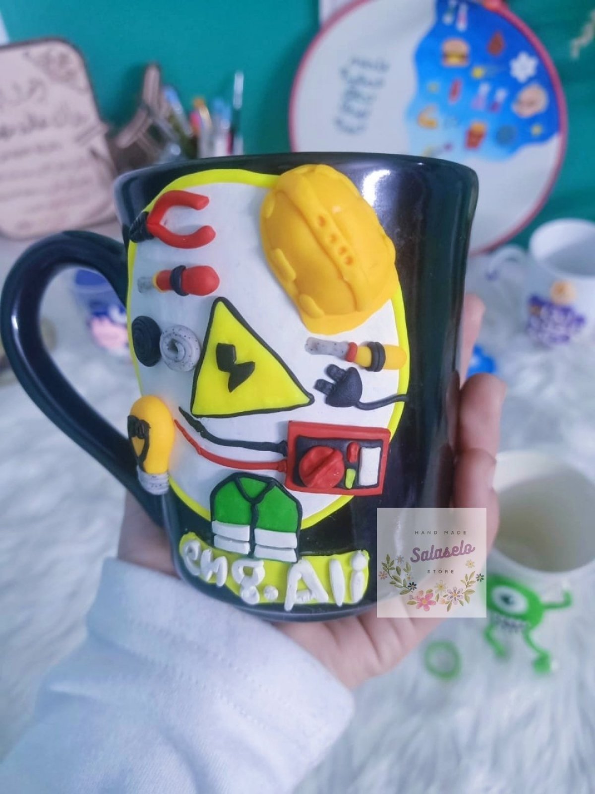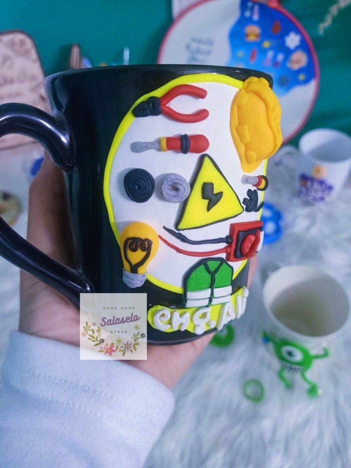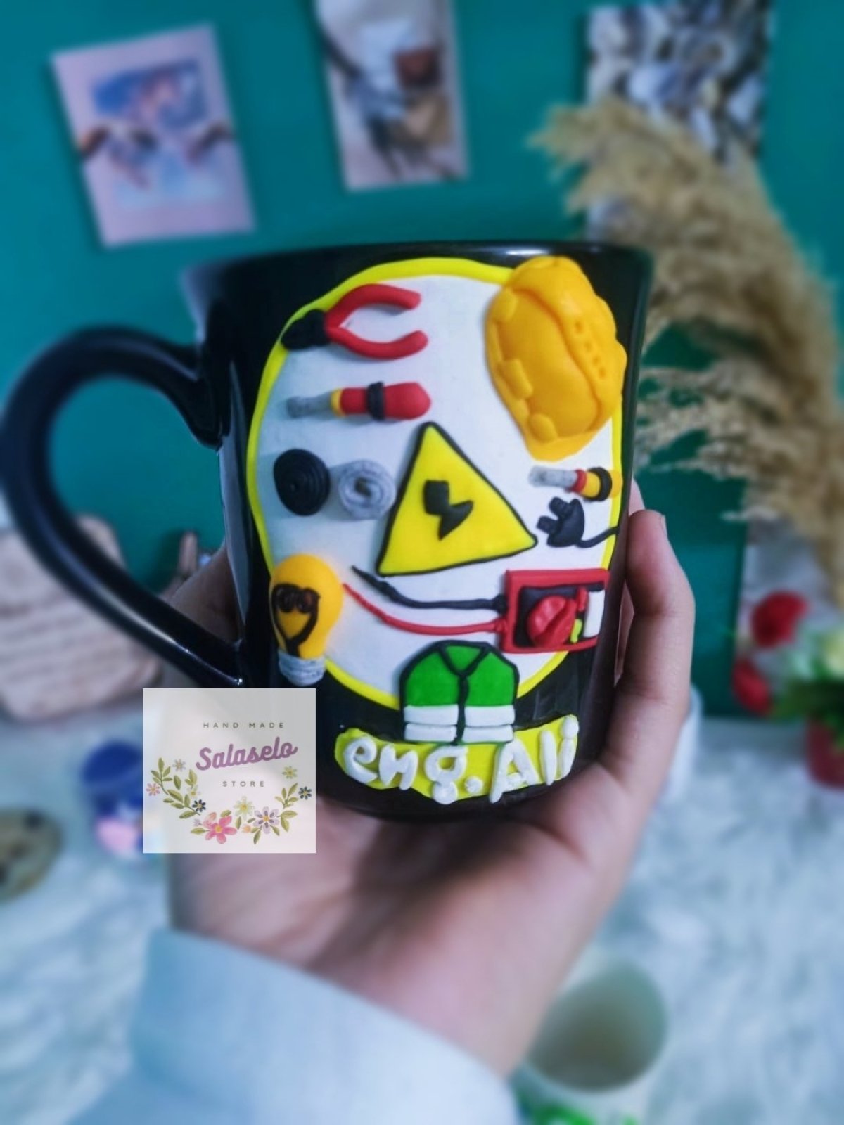 مج من الصلصال الحراري لمهندس كهرباء متاح تغير الاسم سعة المج حوالي ٣٠٠ ملل