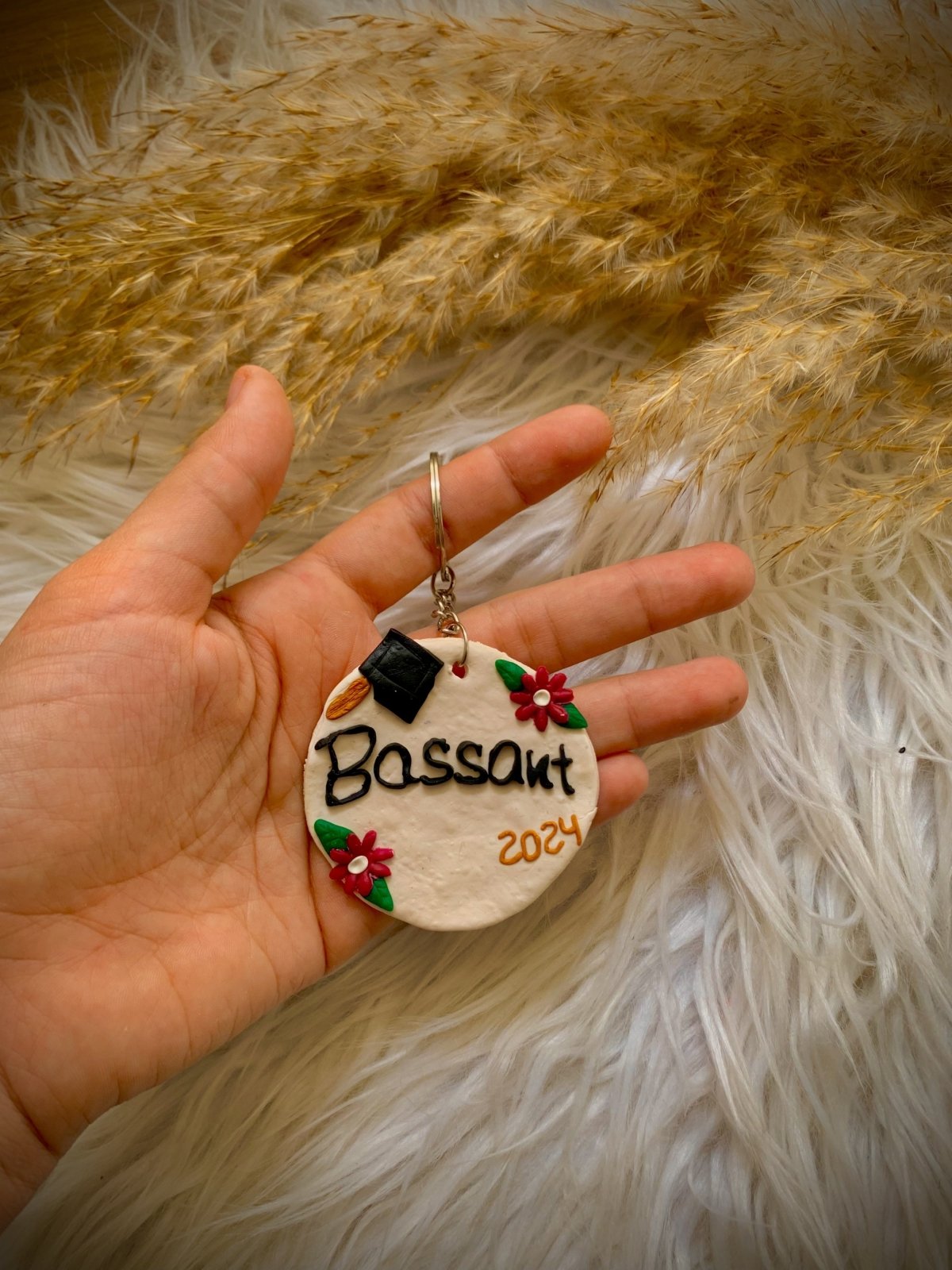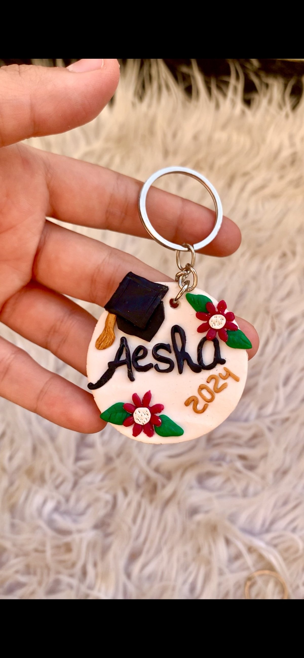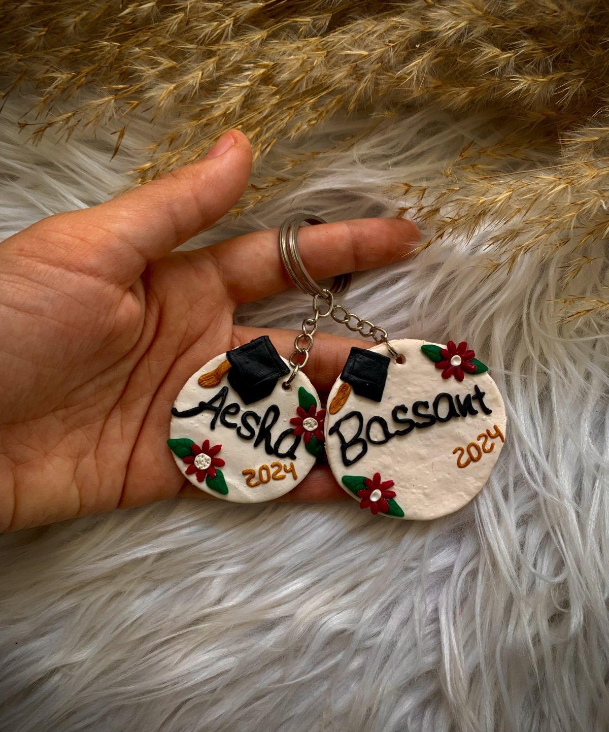 سلسله مفاتيح من الصلصال الحراري للتخرج وزنها حوالي ٢٠ جم