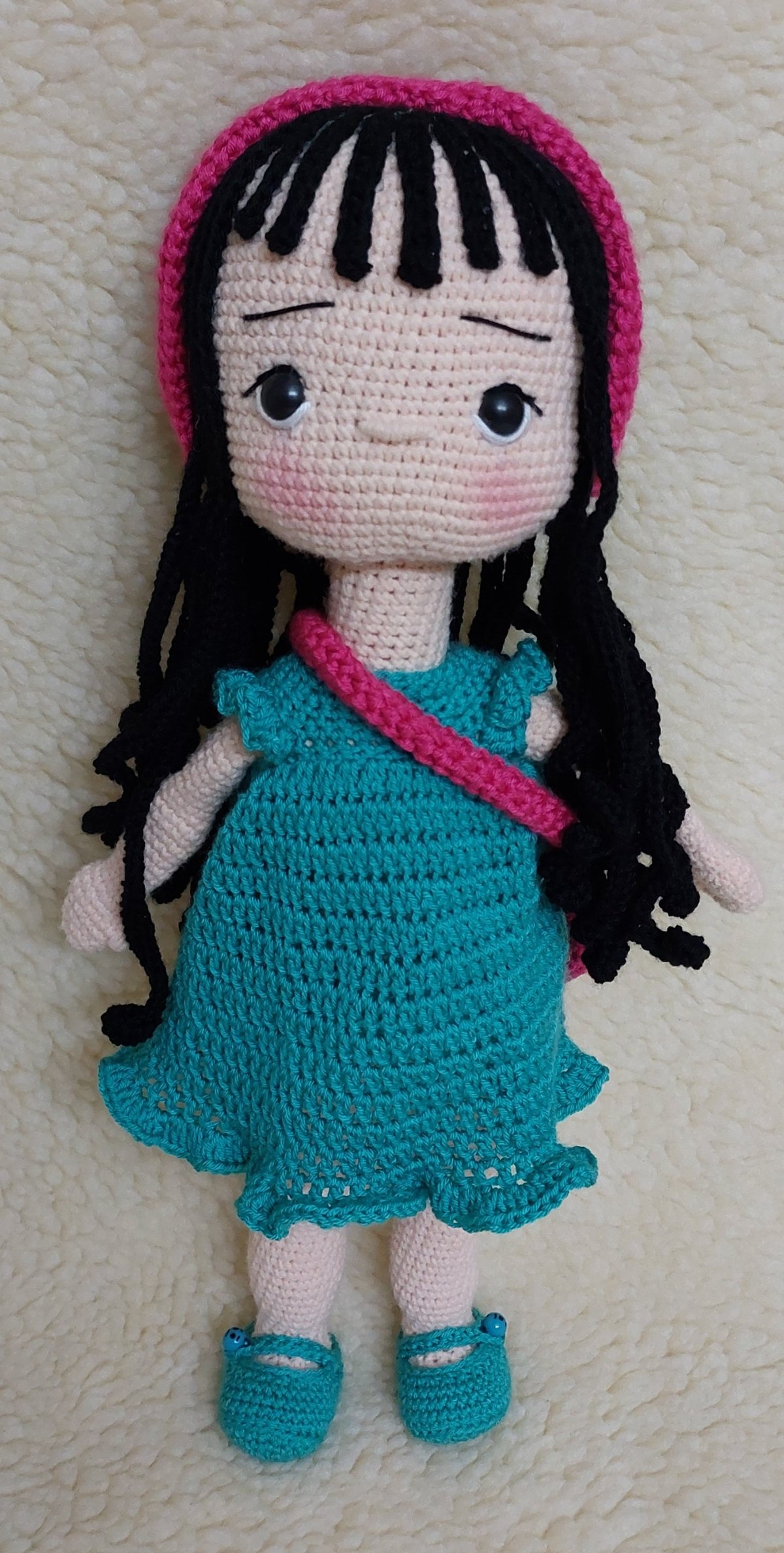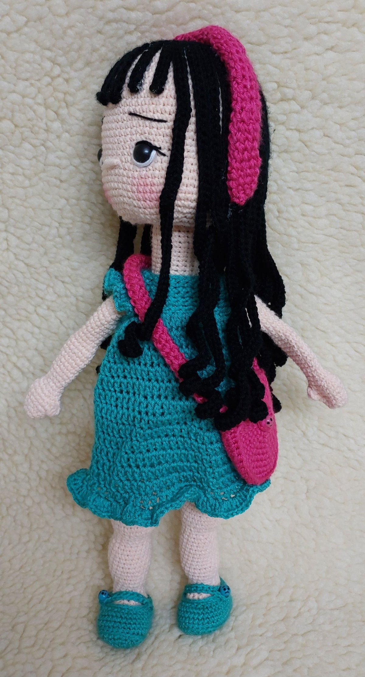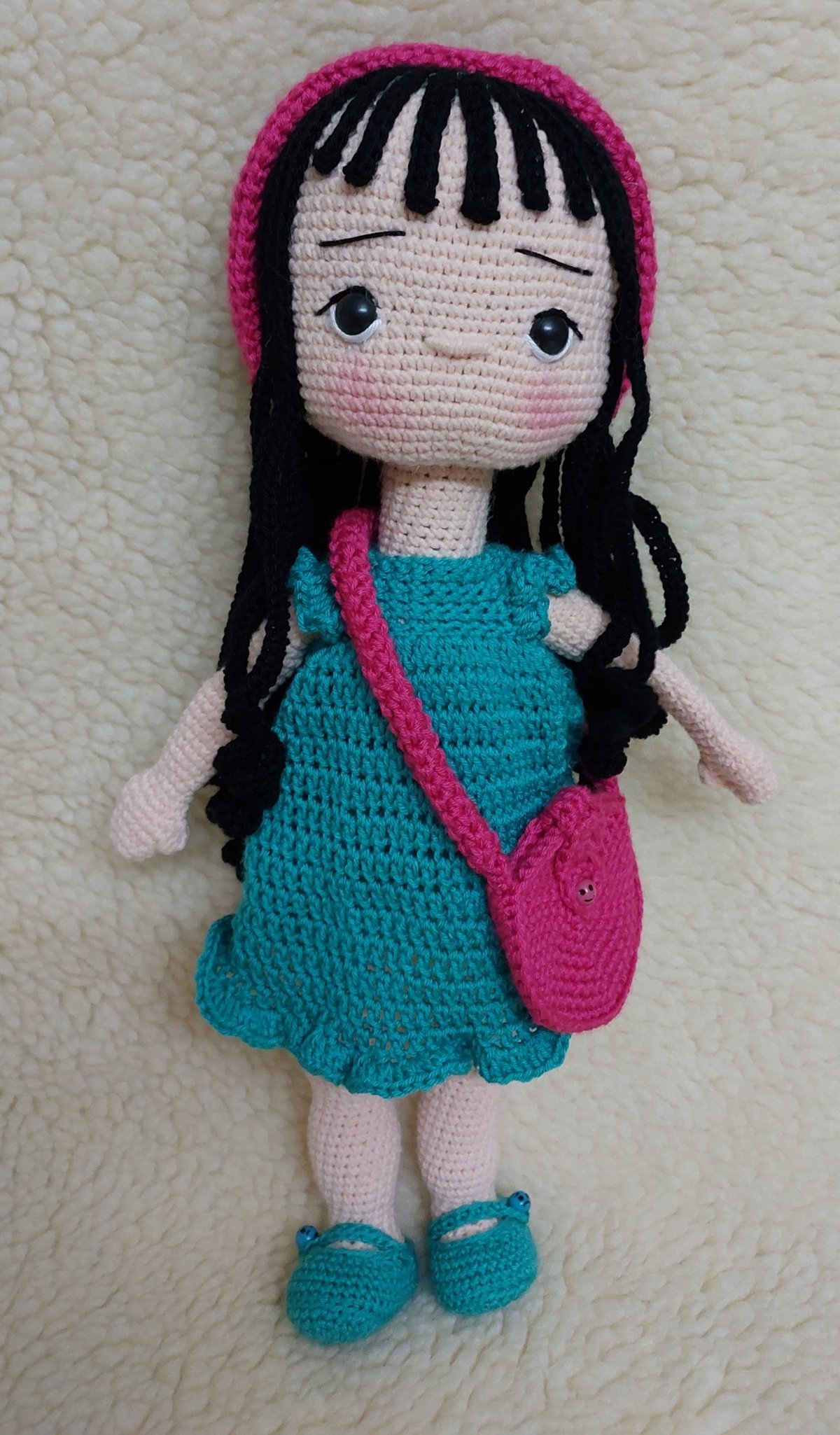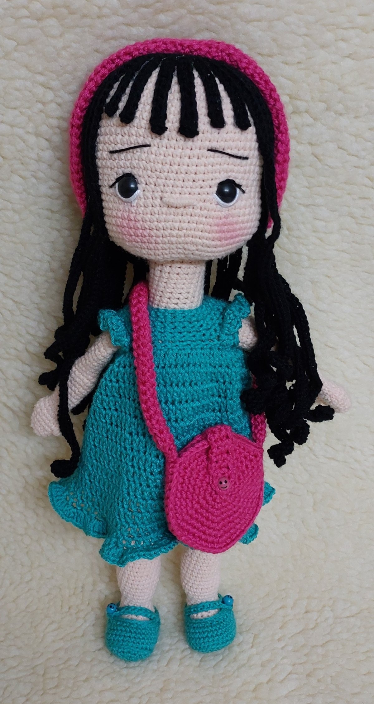 الخيط المستخدم للعروسة خيط تركي ، وفايبر ، وعيون سيفتي ، وفصوص أشكال لاكسسوار الدمية مثل الشوز والشنطة والفستان ، طول العروسة ٤٣ سم ، رقبة العروسة مدعومة بماسورة للتحكم في حركة راس العروسة ، حذاء العروسة سهل الخلع والتركيب