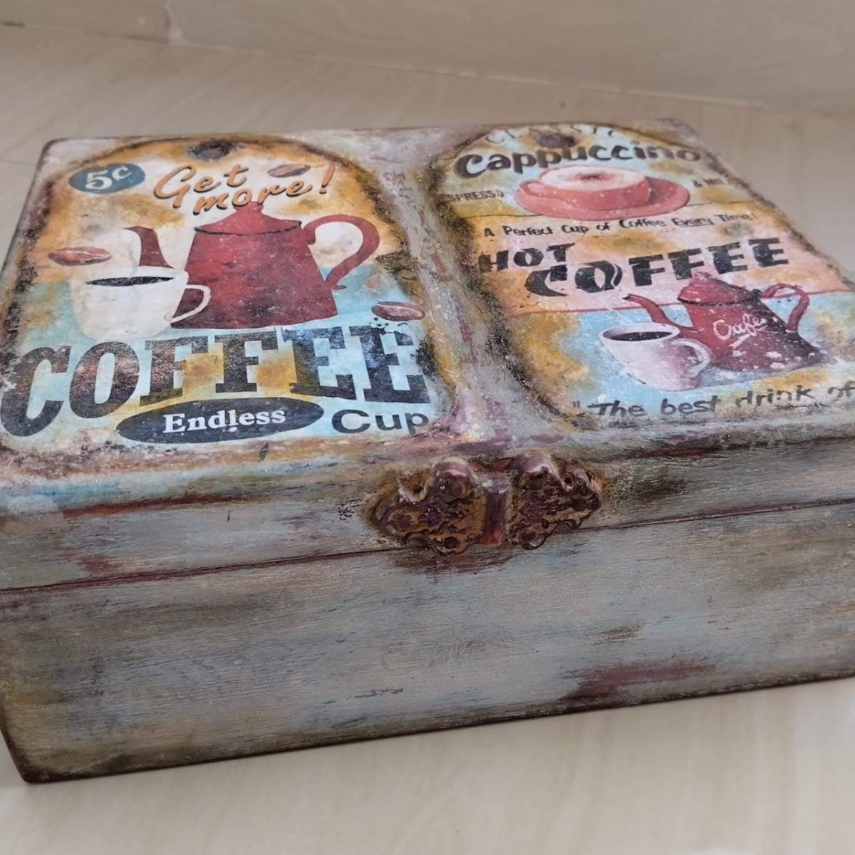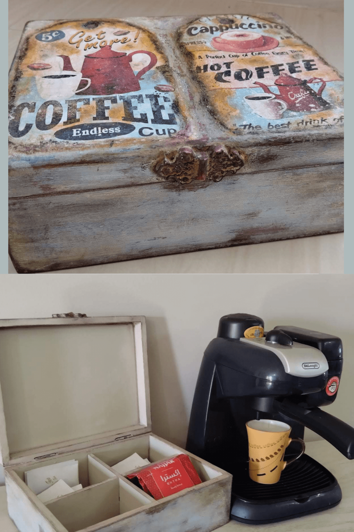 بوكس شاي خشب هاند ميد الميلك بينت دهانات طبيعيه مقاس 20*25.سم